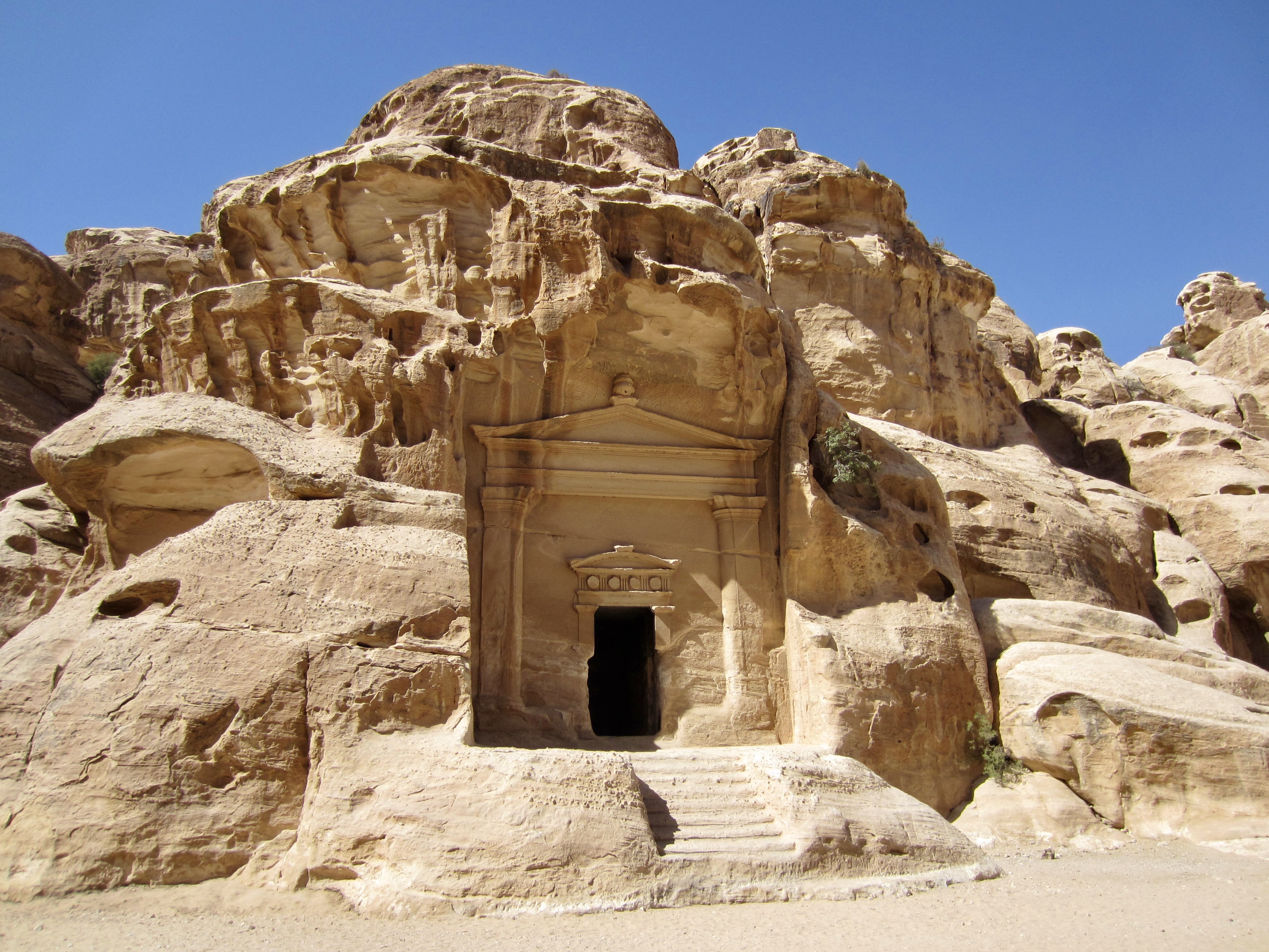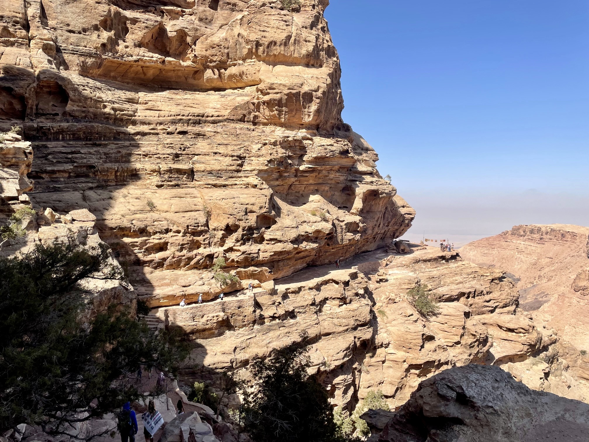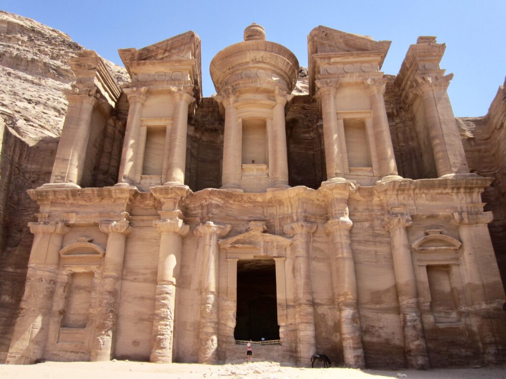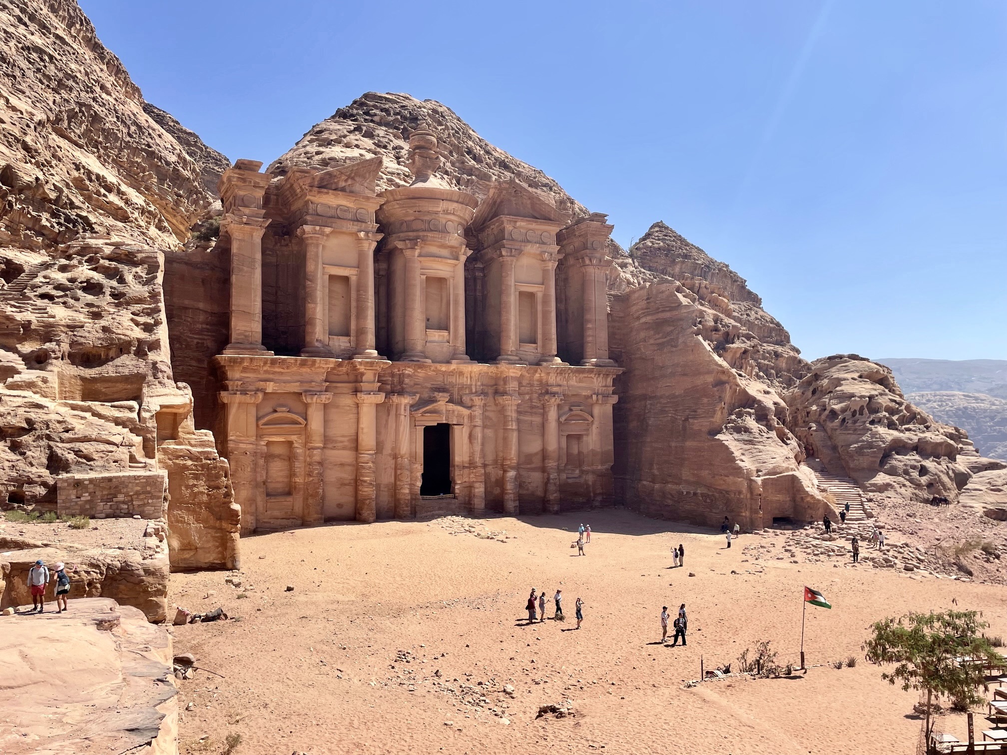 A lengthy stairway brought us up to the first of Petra’s human-made marvels: The Monastery. This outstanding facade, like everything in Petra, was carved and sculpted into the sandstone cliff by the Nabatean peoples approximately 2000 years ago. The size and detail are nothing short of incredible!
