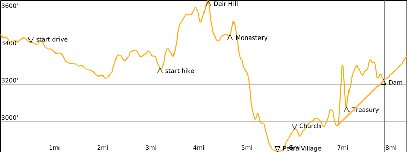 Ending Point: Petra entry gate & visitors center in town of Wadi Musa (Elev. 3350 feet / 1020 meters)
