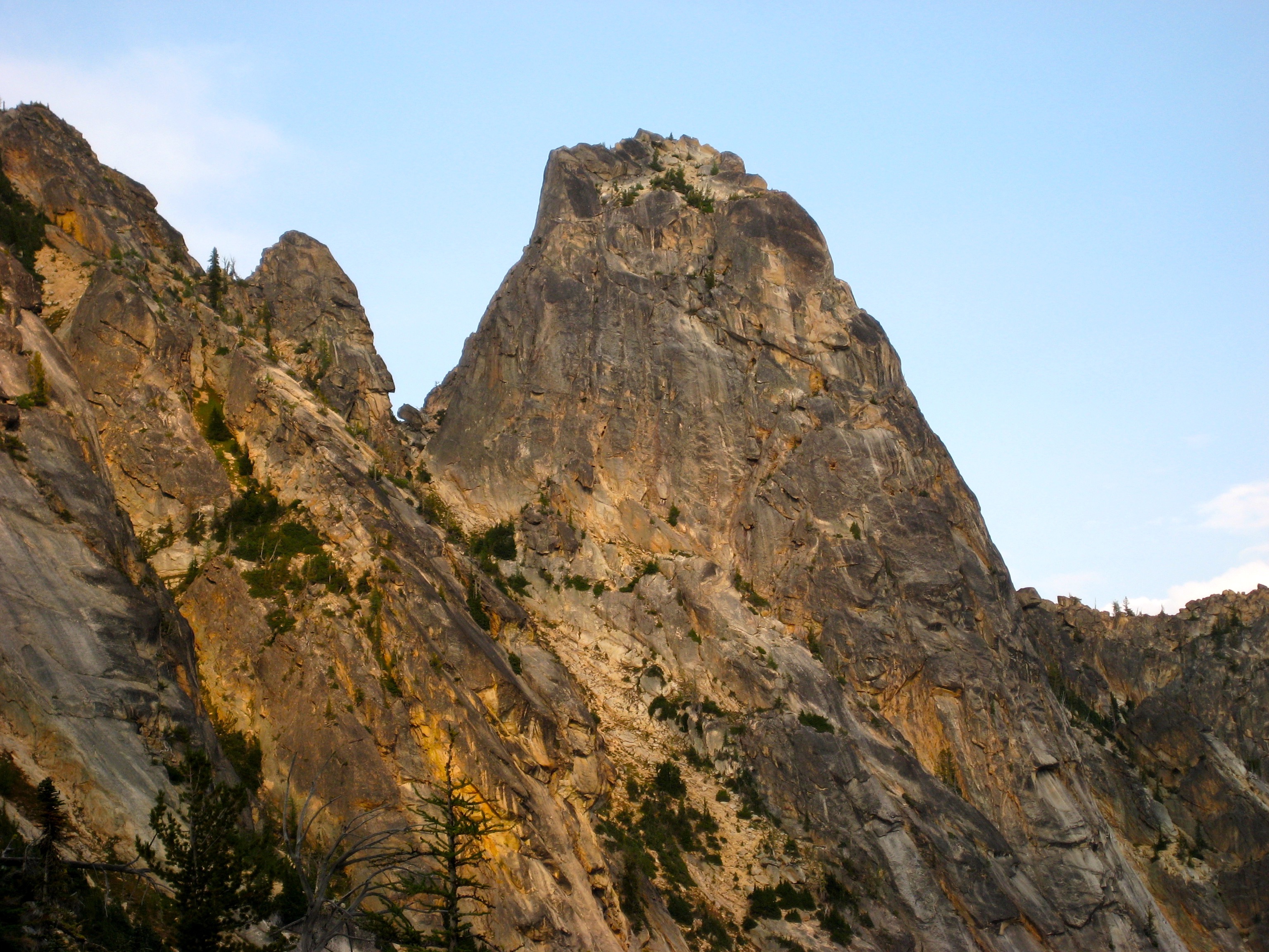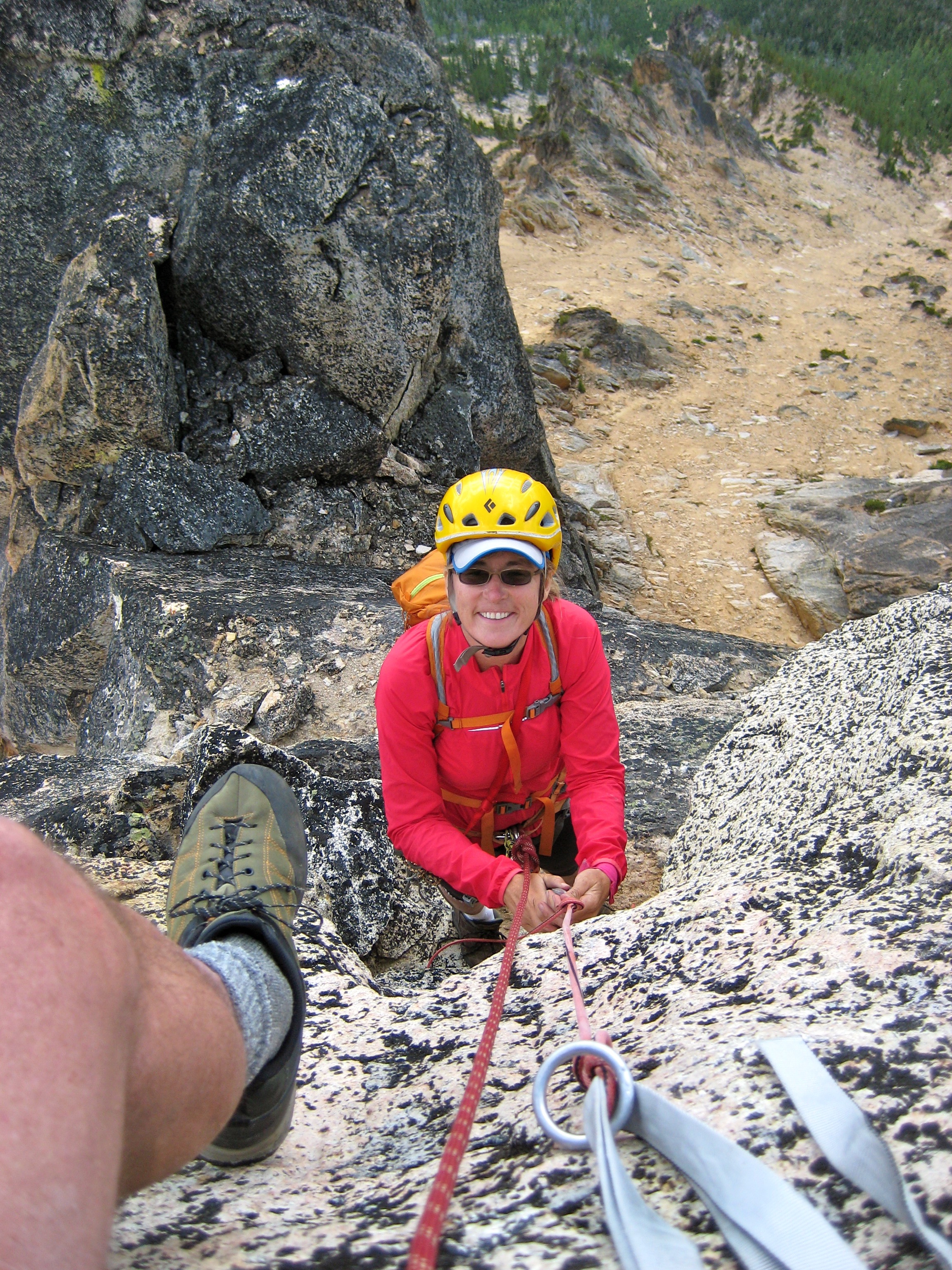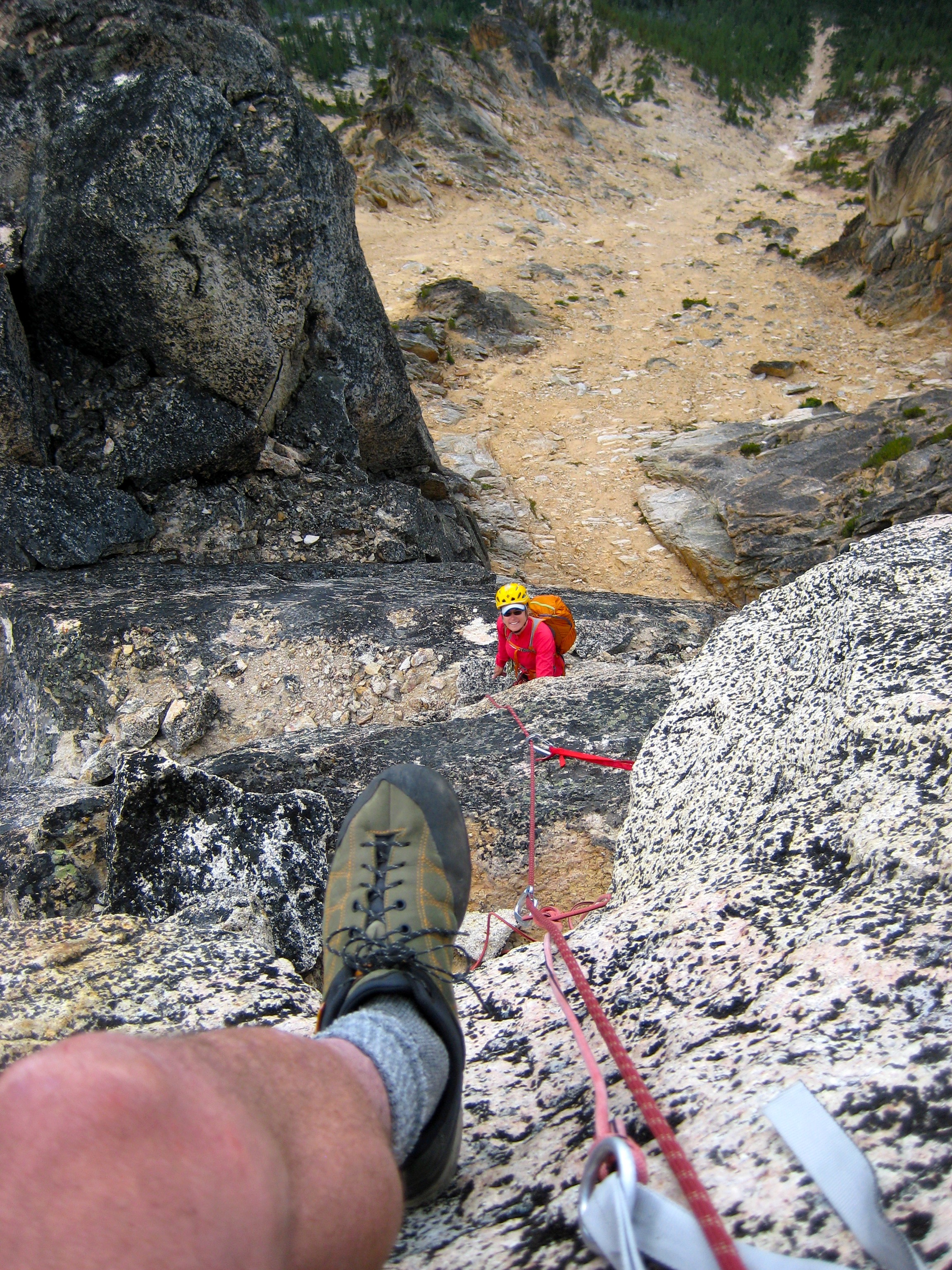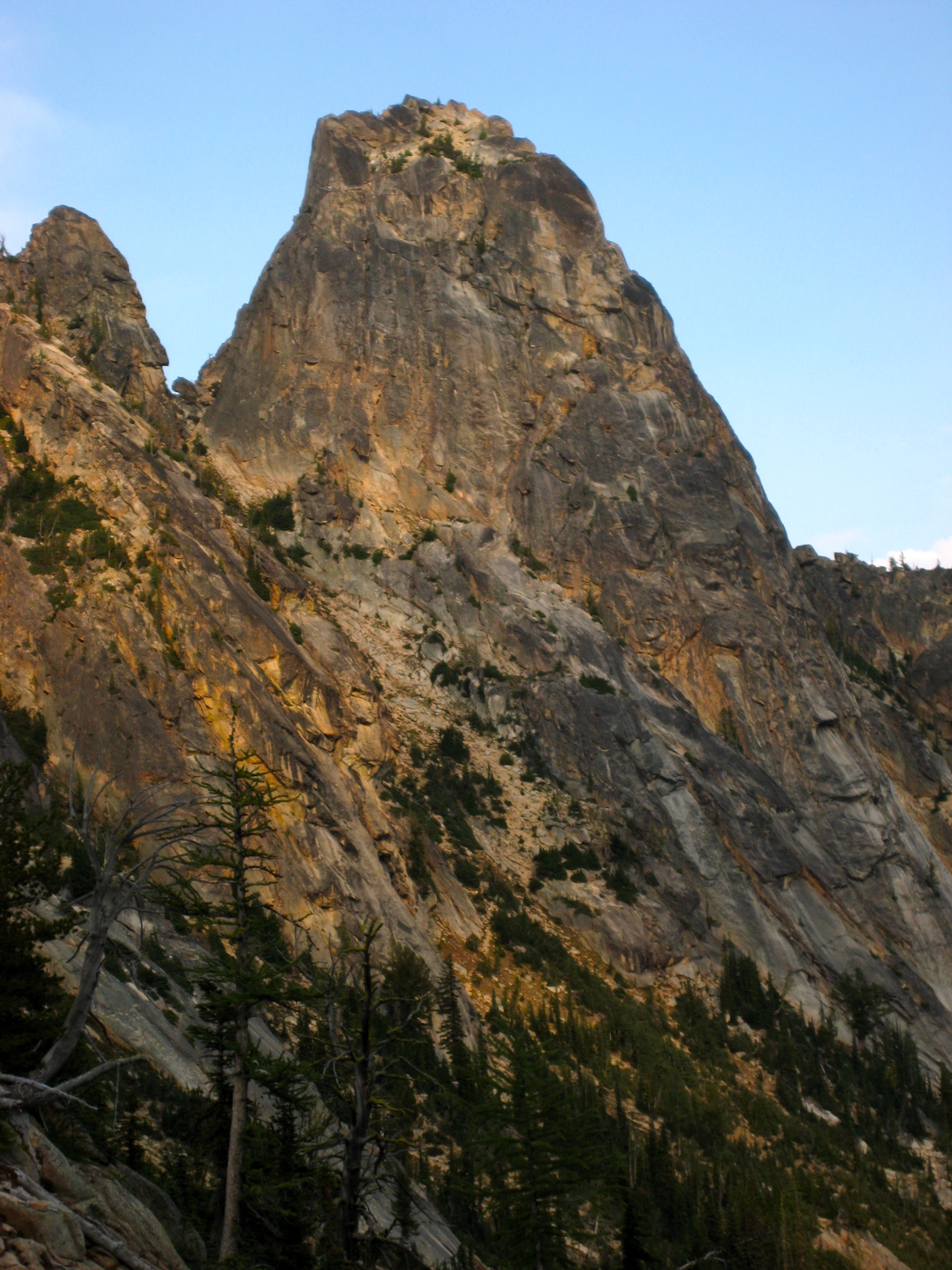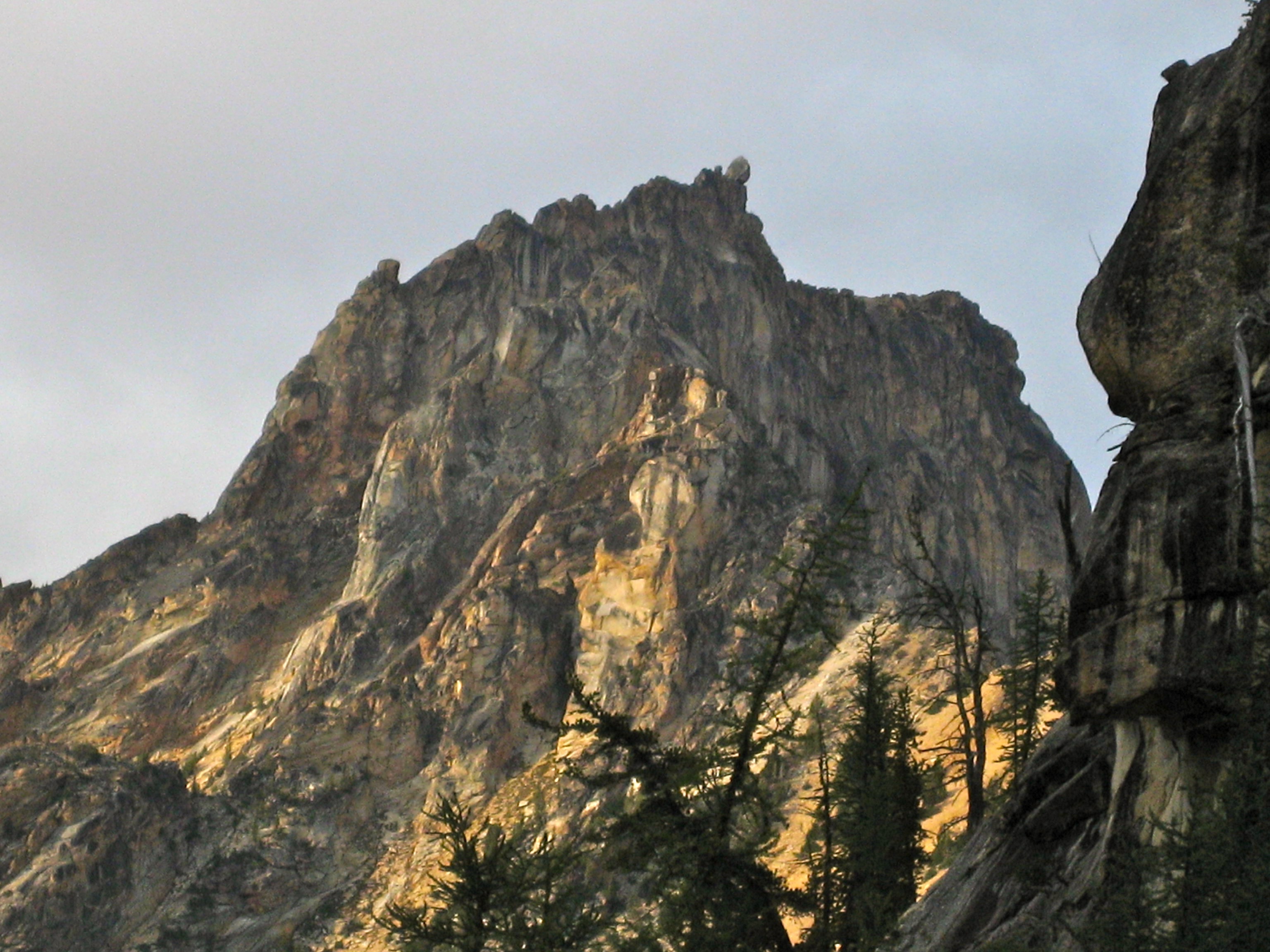Eileen and I spent last weekend poking around Kangaroo Ridge, a well-pinnacled granitic crest between Liberty Bell and Silver Star Mountain. Since this was our first time, we chose the two most popular crags as our climbing goals. They were vastly different in character, but neither was a disappointment.