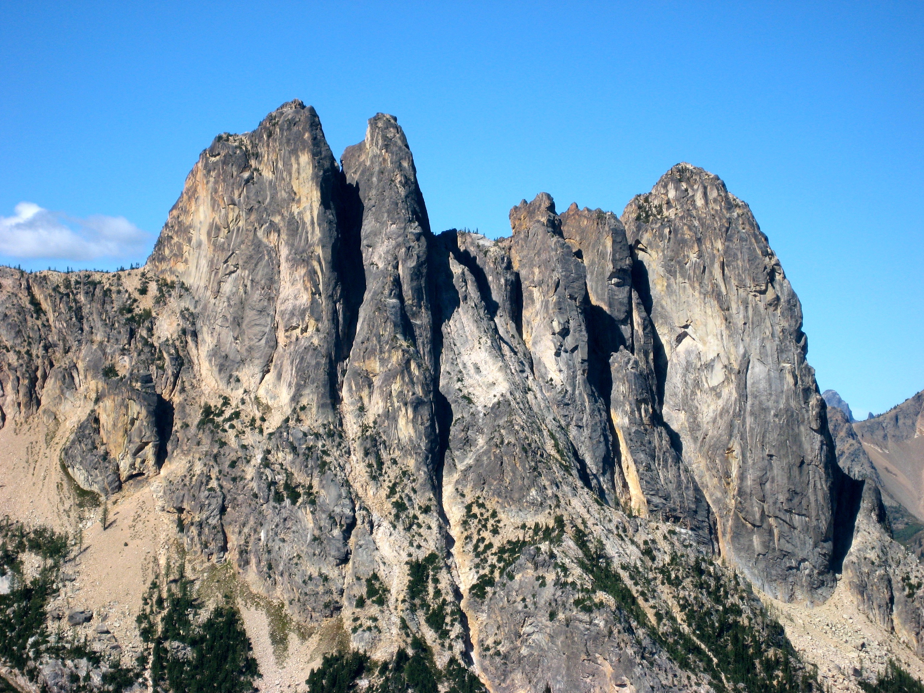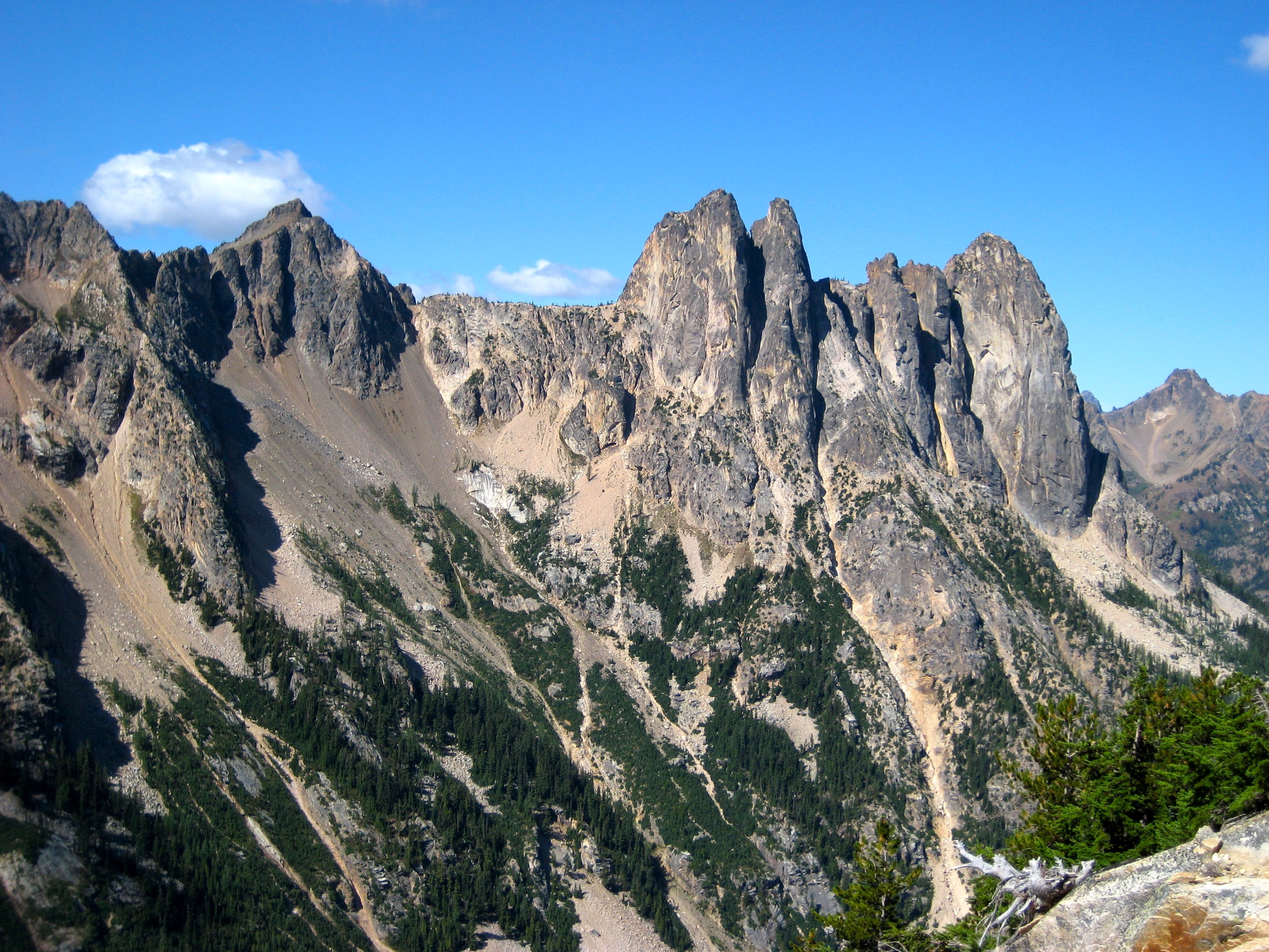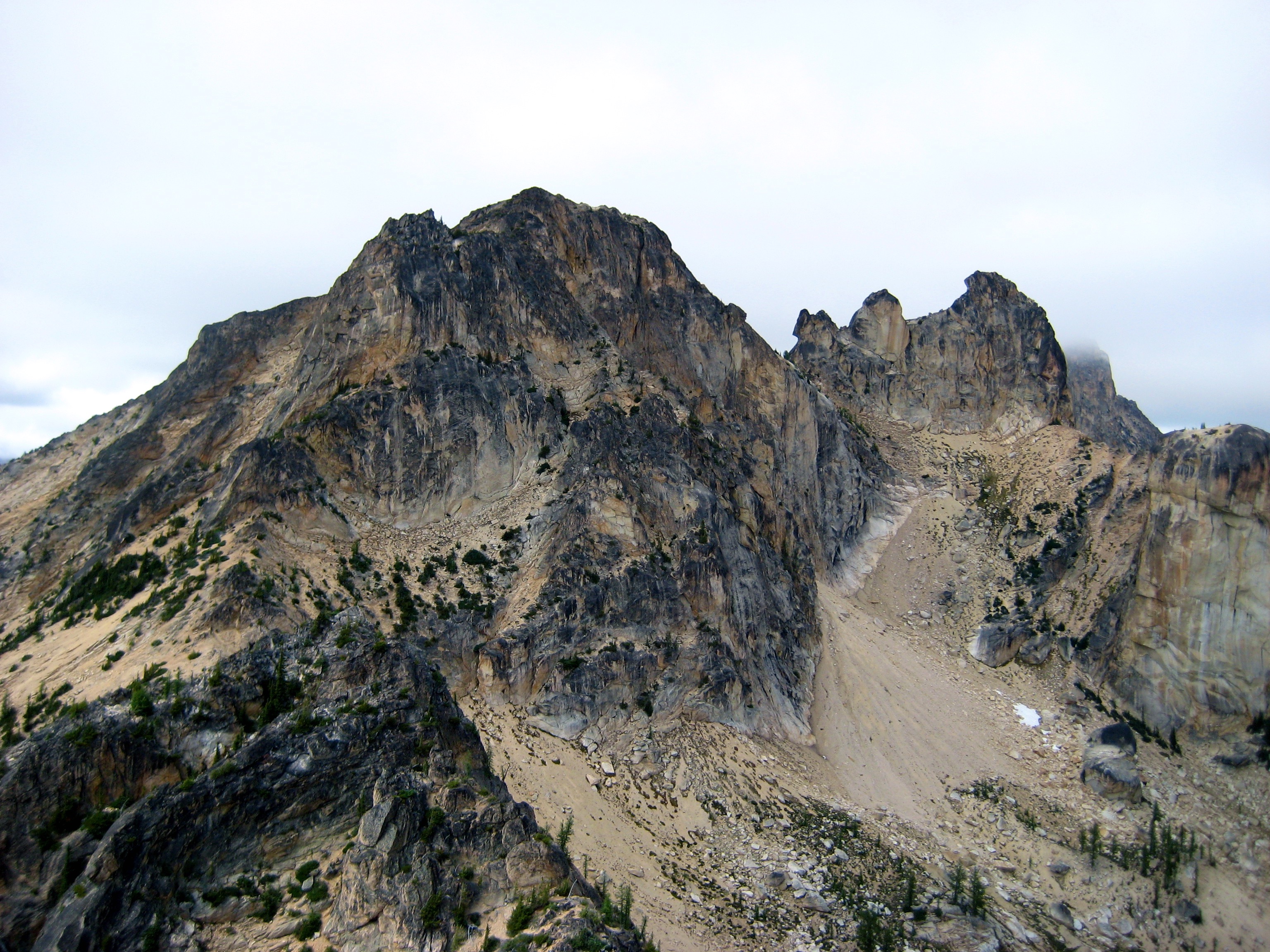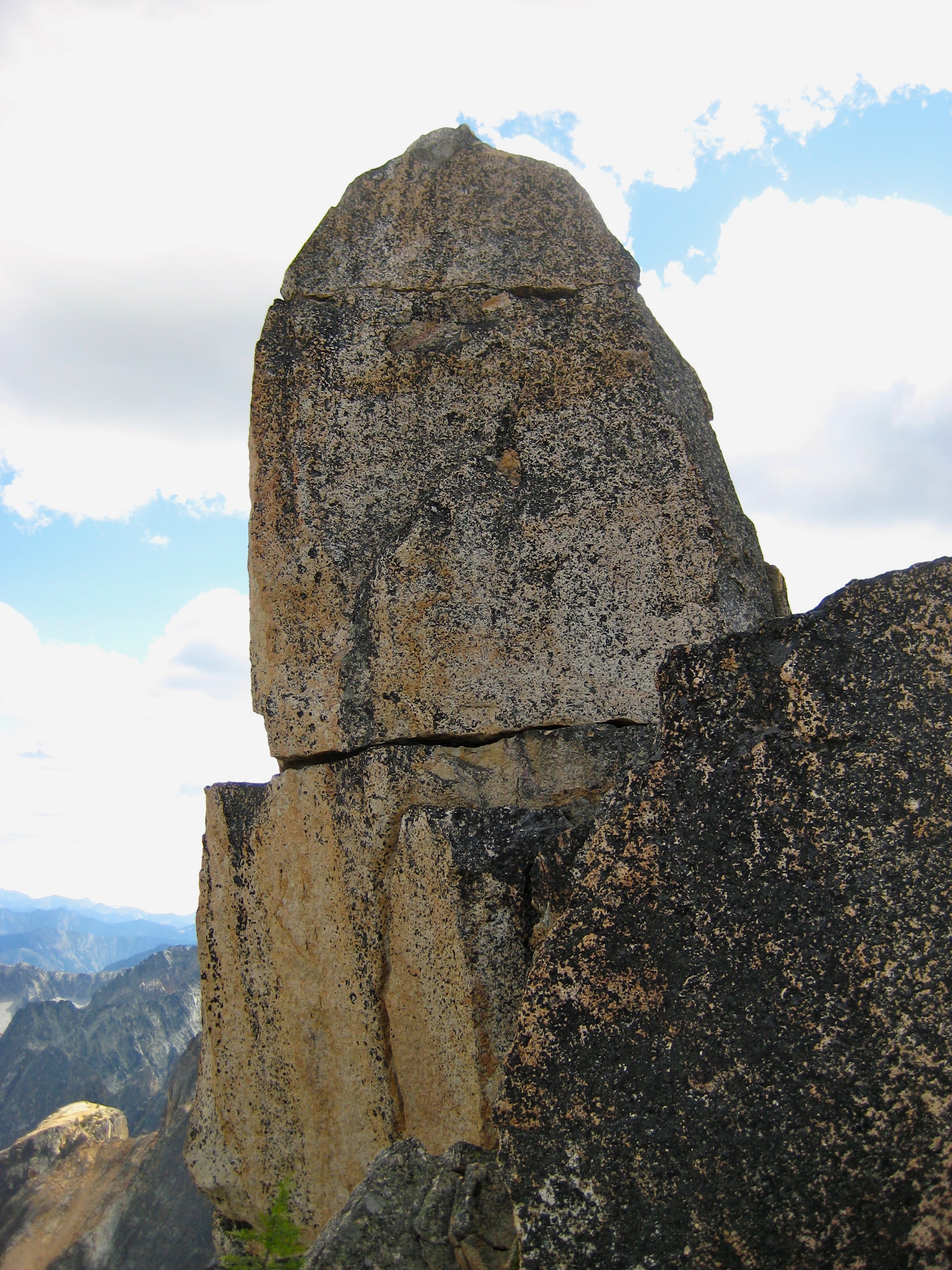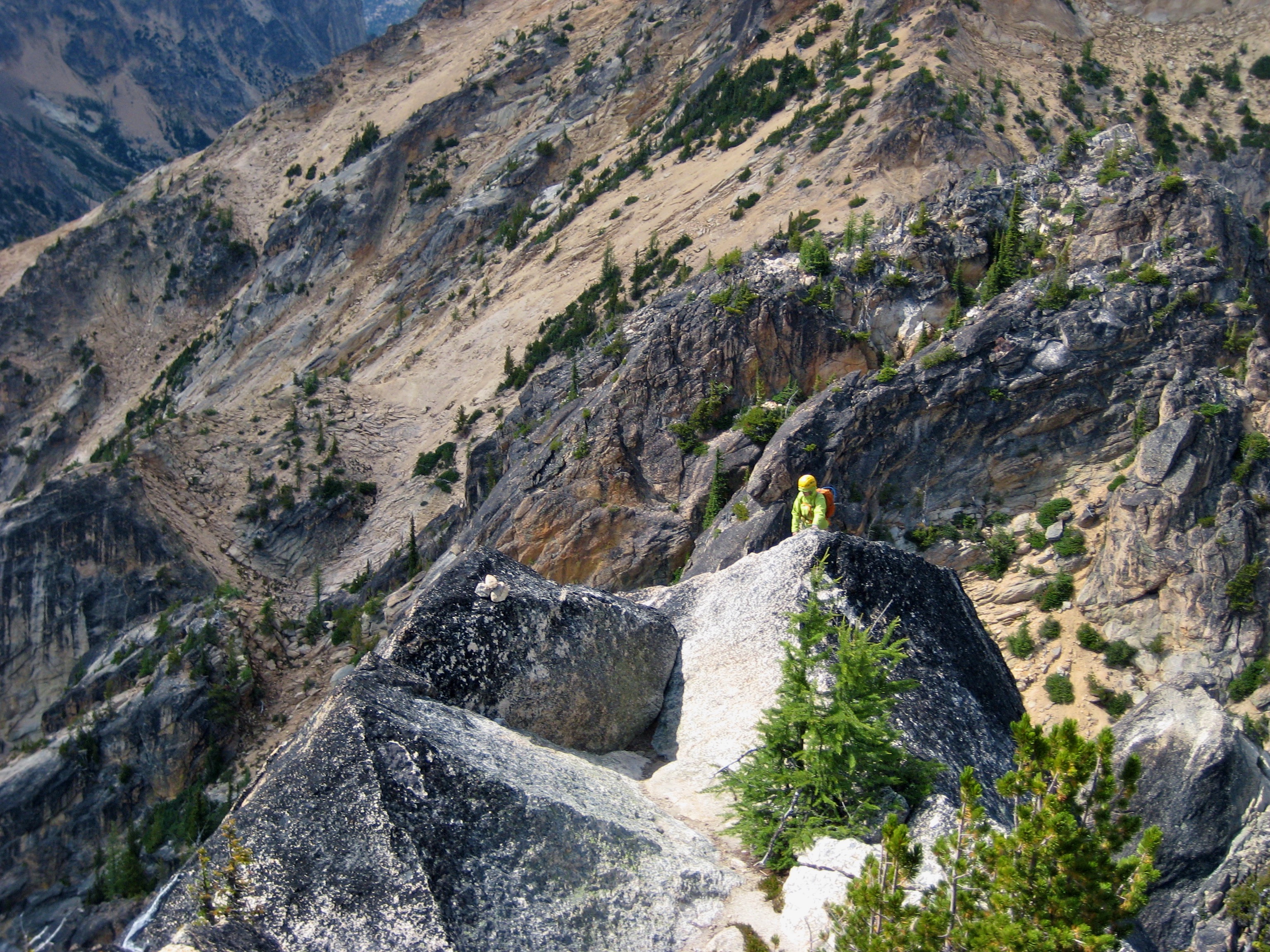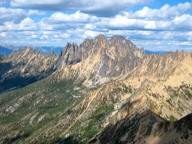 Eileen and I spent last weekend poking around Kangaroo Ridge, a well-pinnacled granitic crest between Liberty Bell and Silver Star Mountain. Since this was our first time, we chose the two most popular crags as our climbing goals. They were vastly different in character, but neither was a disappointment.