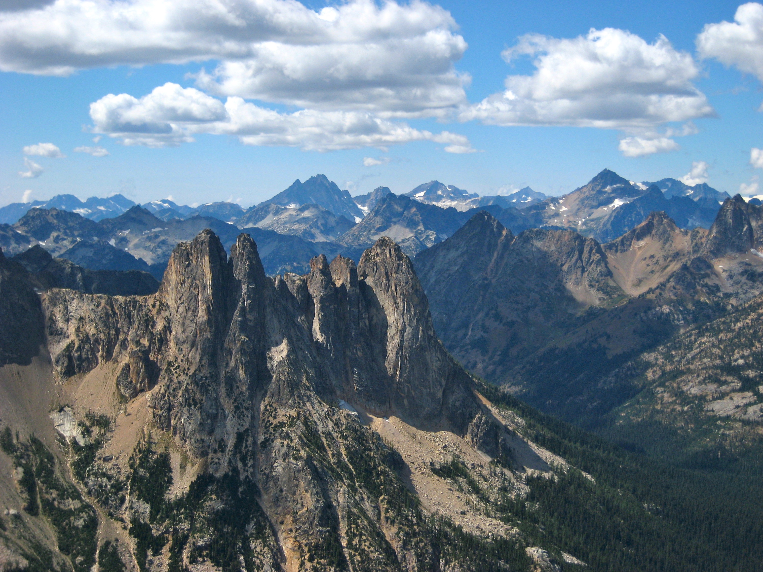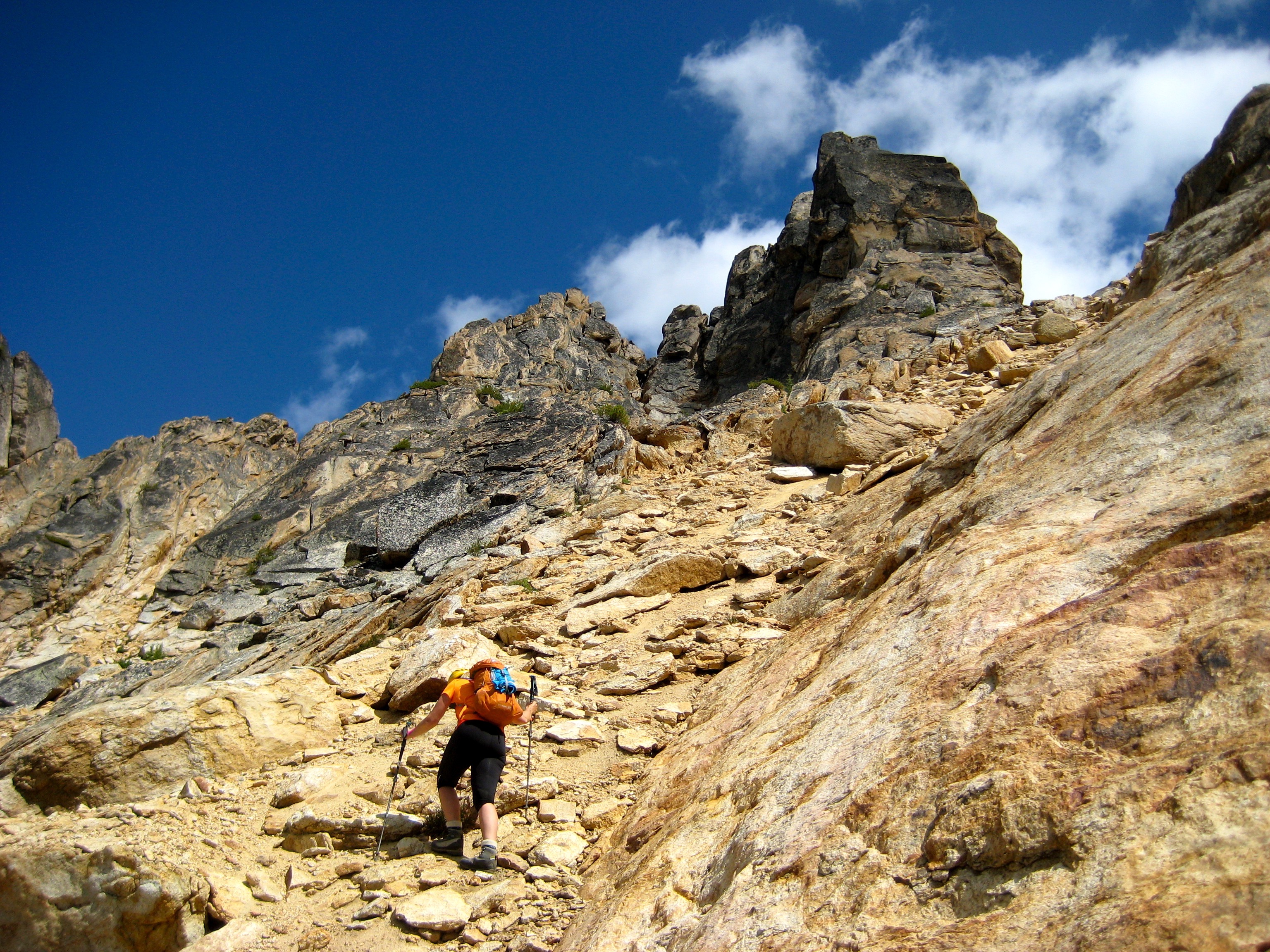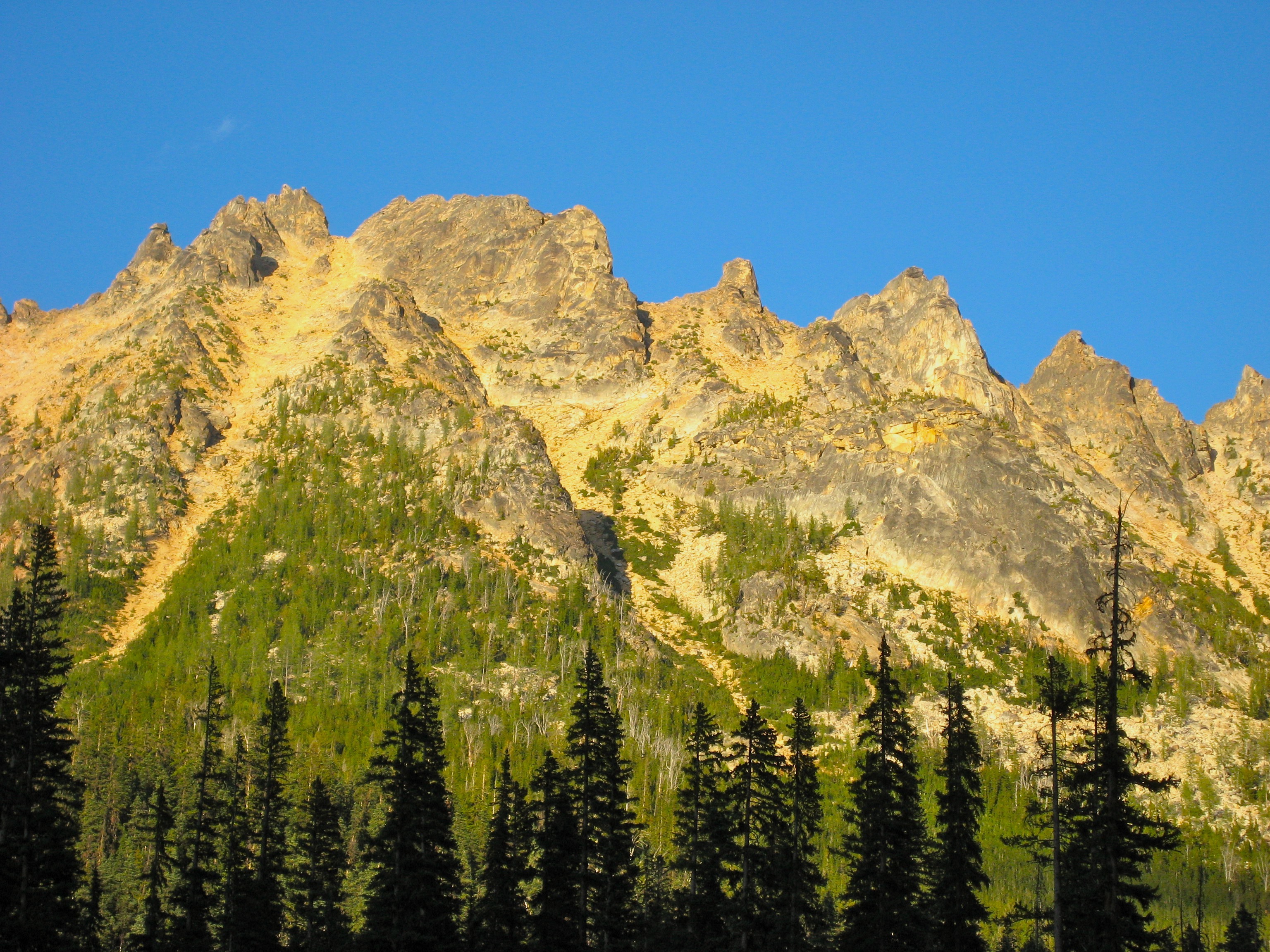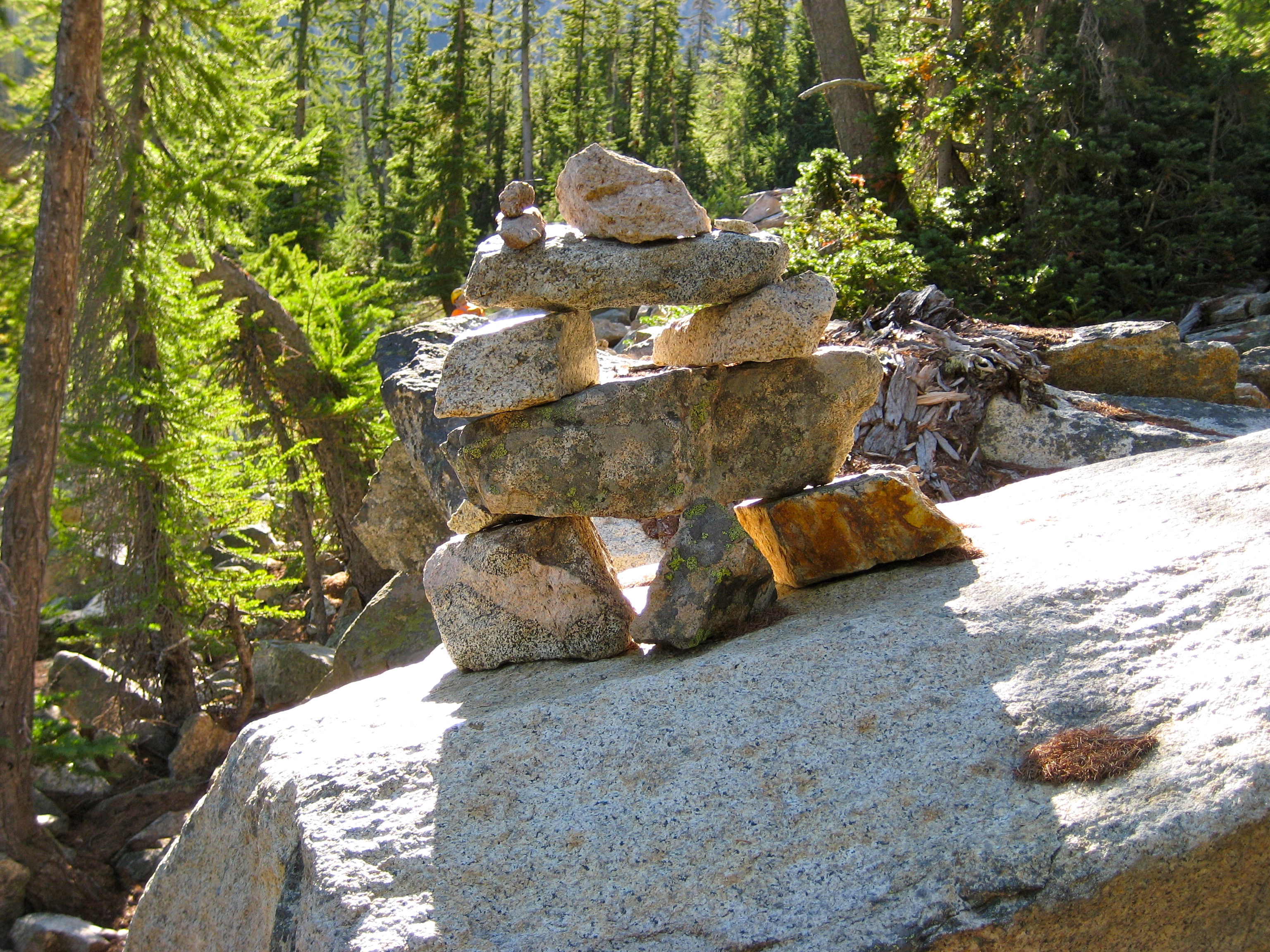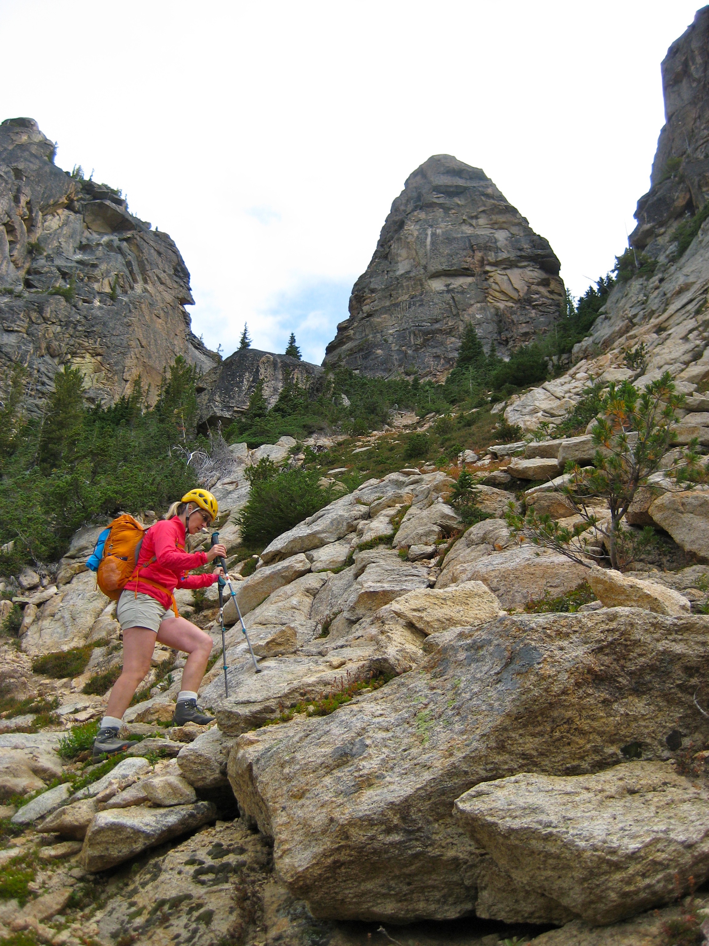 Eileen and I spent last weekend poking around Kangaroo Ridge, a well-pinnacled granitic crest between Liberty Bell and Silver Star Mountain. Since this was our first time, we chose the two most popular crags as our climbing goals. They were vastly different in character, but neither was a disappointment.