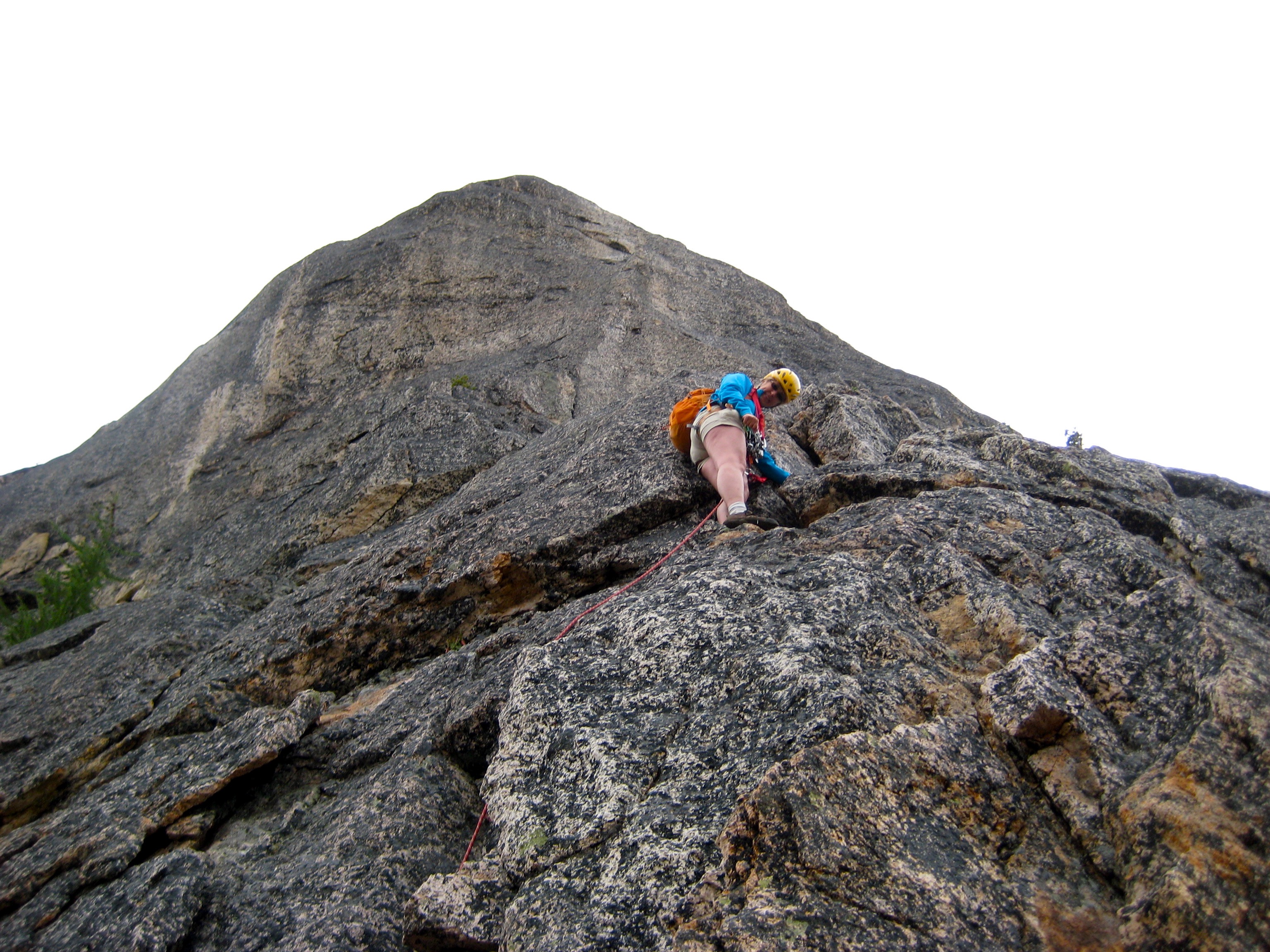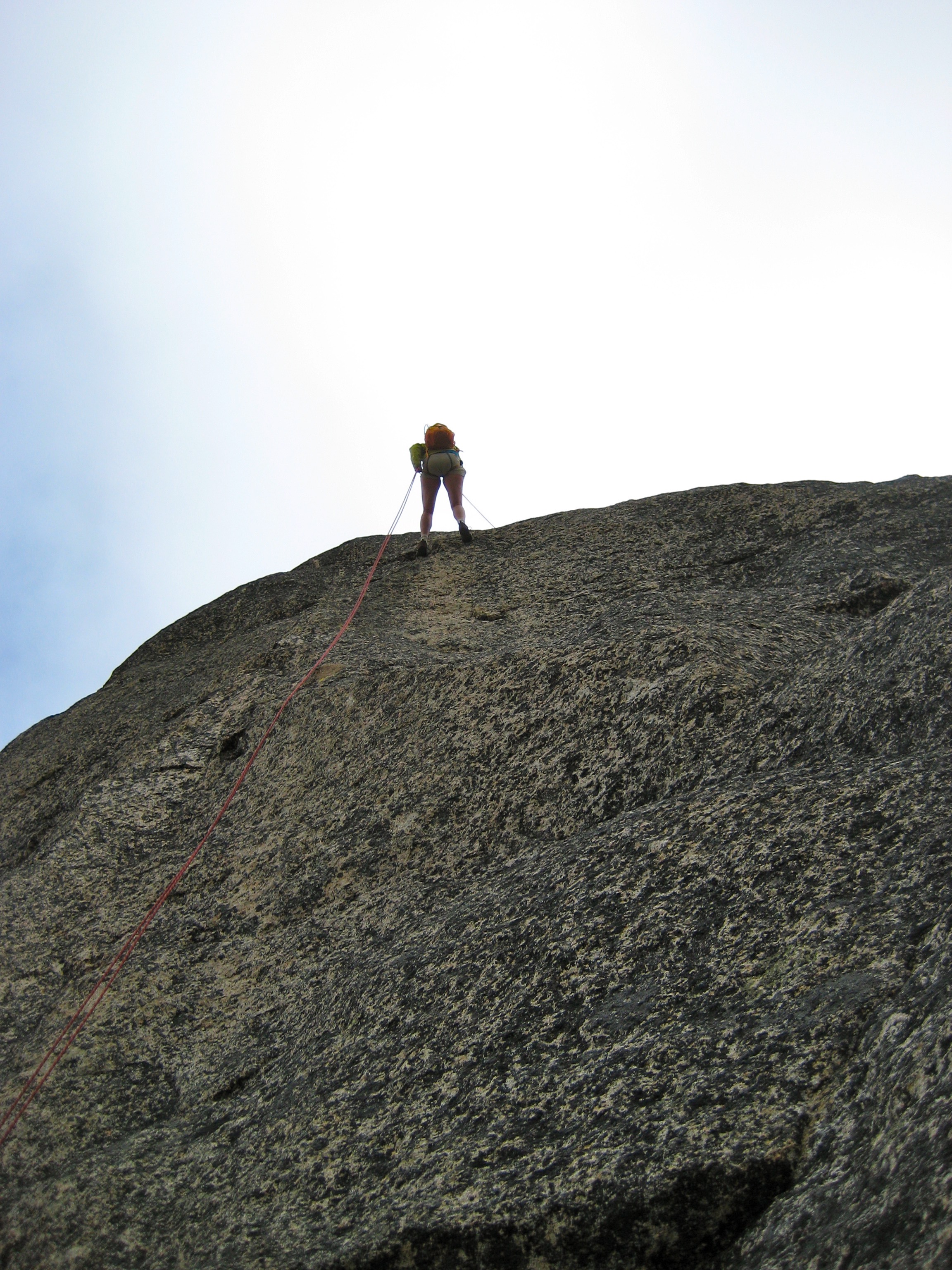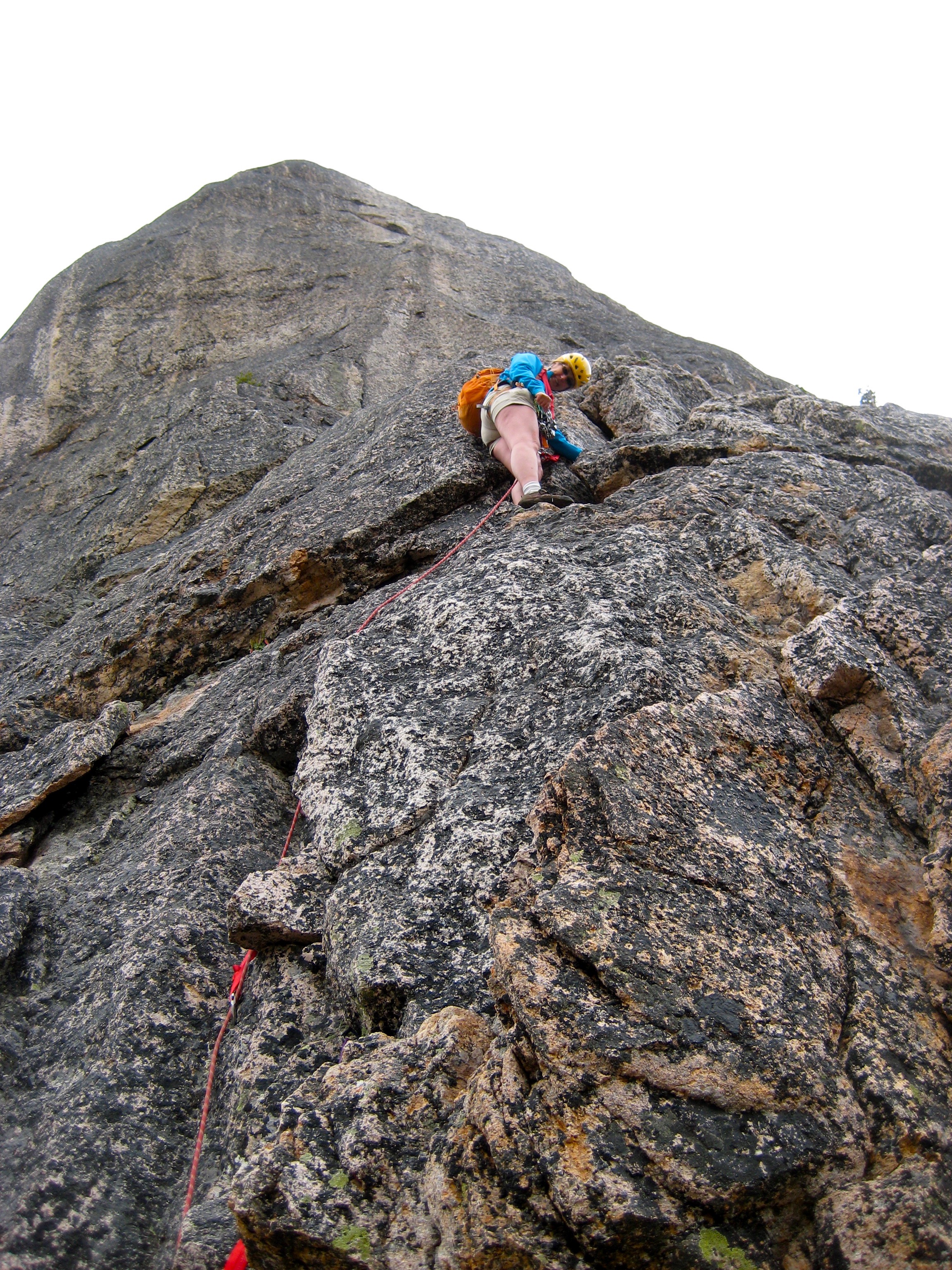 The last pitch is advertised as the crux (Class 5.4), but the left-slanting crack we went up wasn’t even that difficult. I would rate the whole climb as exposed Class 5.2 overall. Did I mention that it is very fun and very solid?