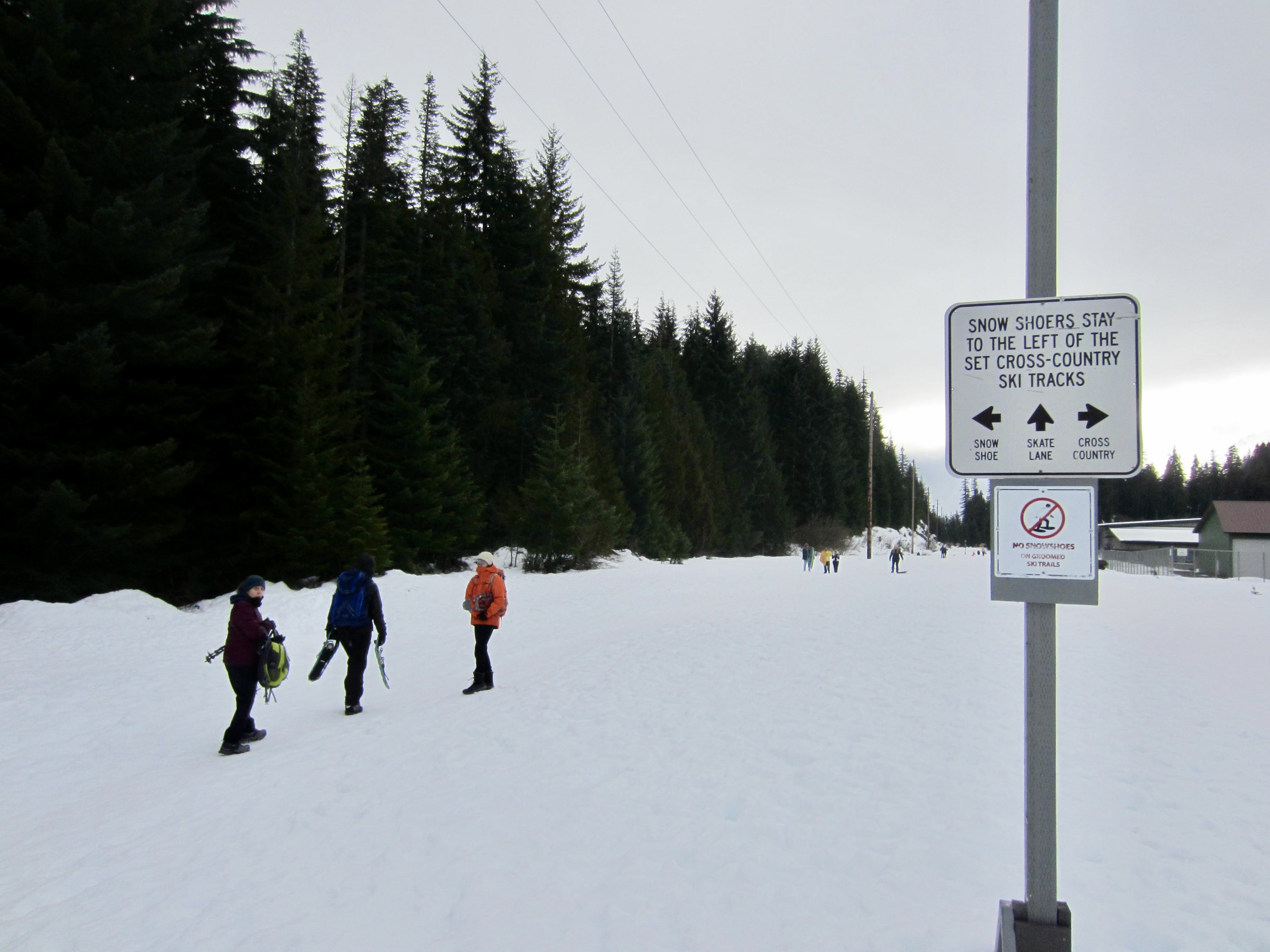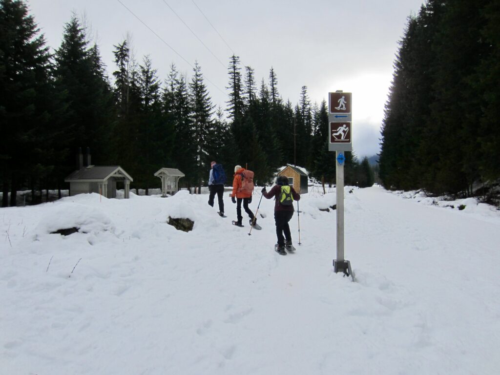 Parking for this snowshoe trek can be found at Hyak Sno-Park, located on the south side of Interstate-90 at Exit 54. A Washington State Sno-Park permit with a “special groomed-area sticker” is required here. This is a large parking lot, but be aware that it fills up quickly on weekends and holidays; it is advisable to arrive early (before 10:00am) or late (after 2:00pm) during high season. Also, be aware that the parking lot is closed and gated at dusk, so plan your trek accordingly.