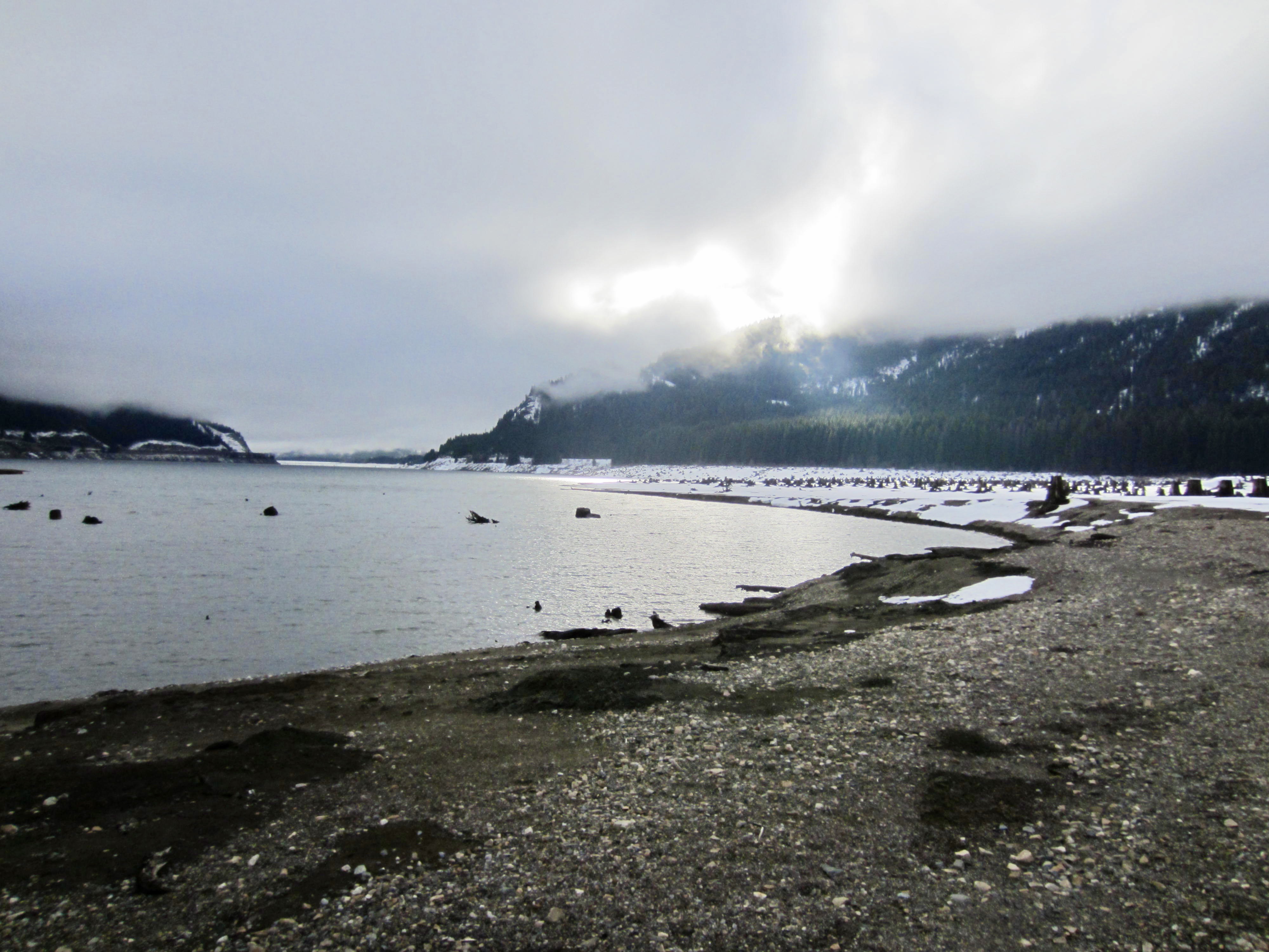 Way Points: Keechelus Boat Launch Road junction & Keechelus Boat Launch Peninsula & Mill Creek crossing & Cold Creek (snowshoe hike via Palouse-to-Cascades Trail—Keechelus Boat Launch Road—Keechelus Lake Flats)