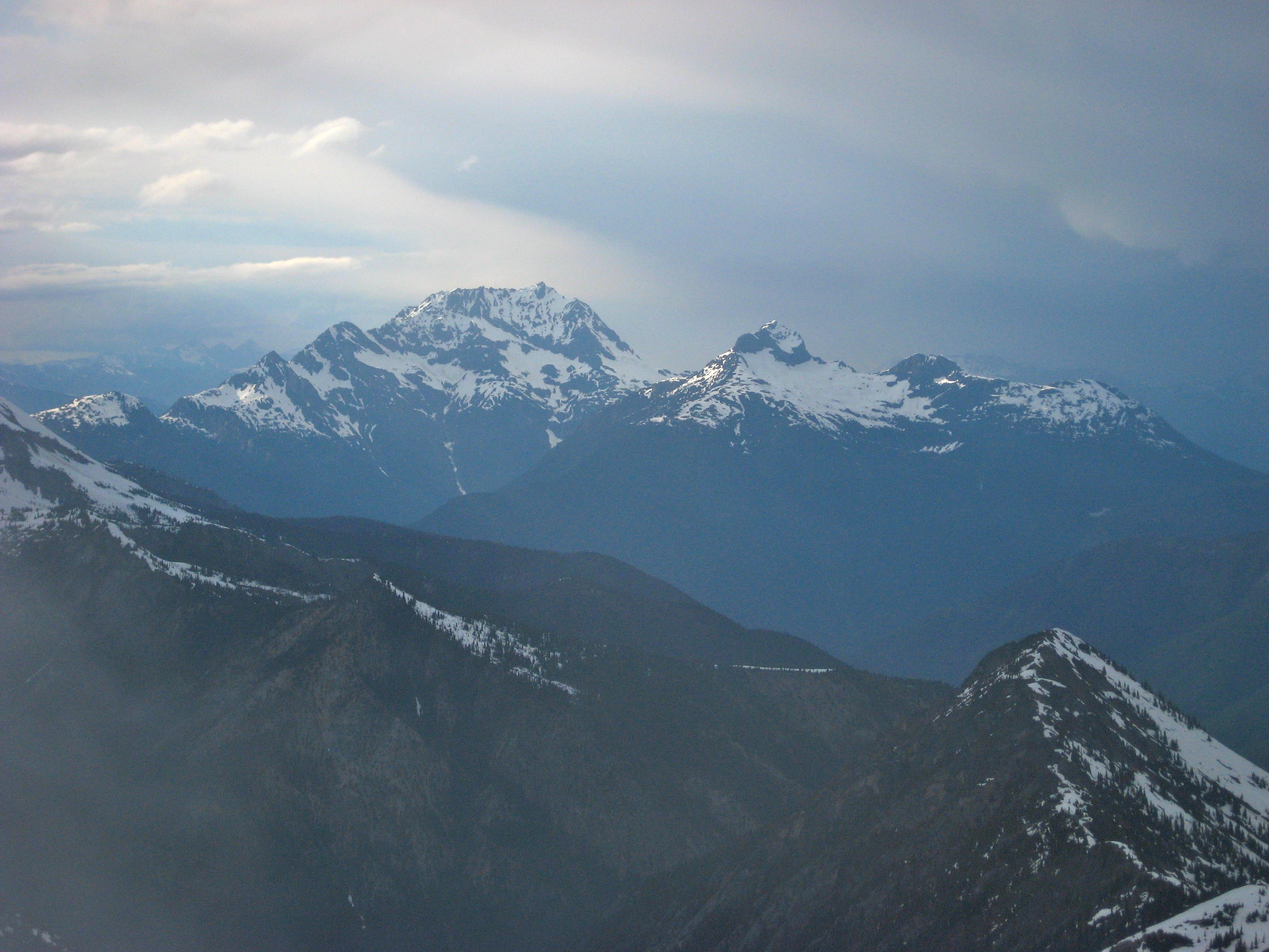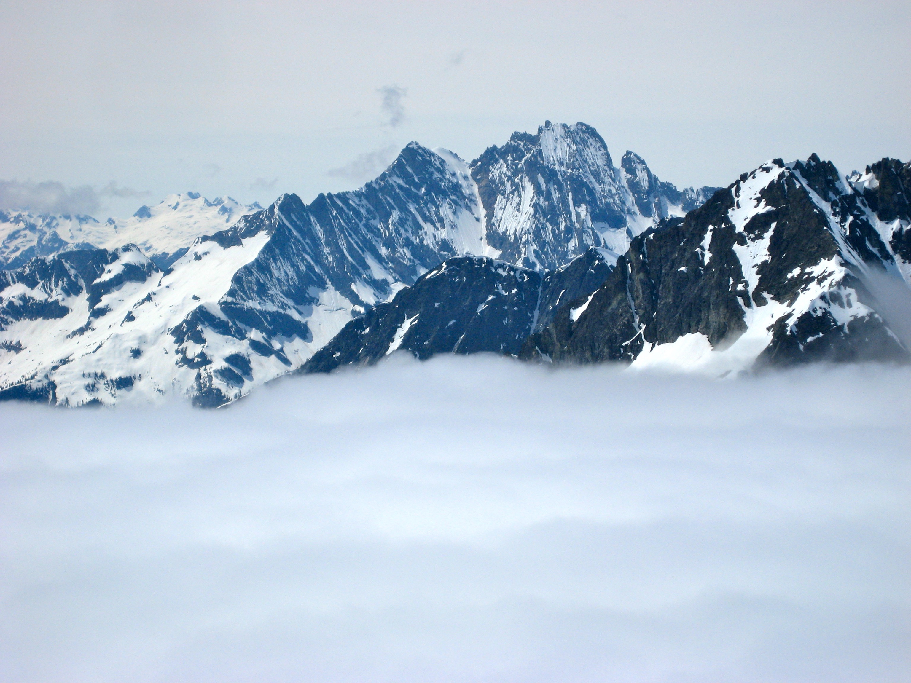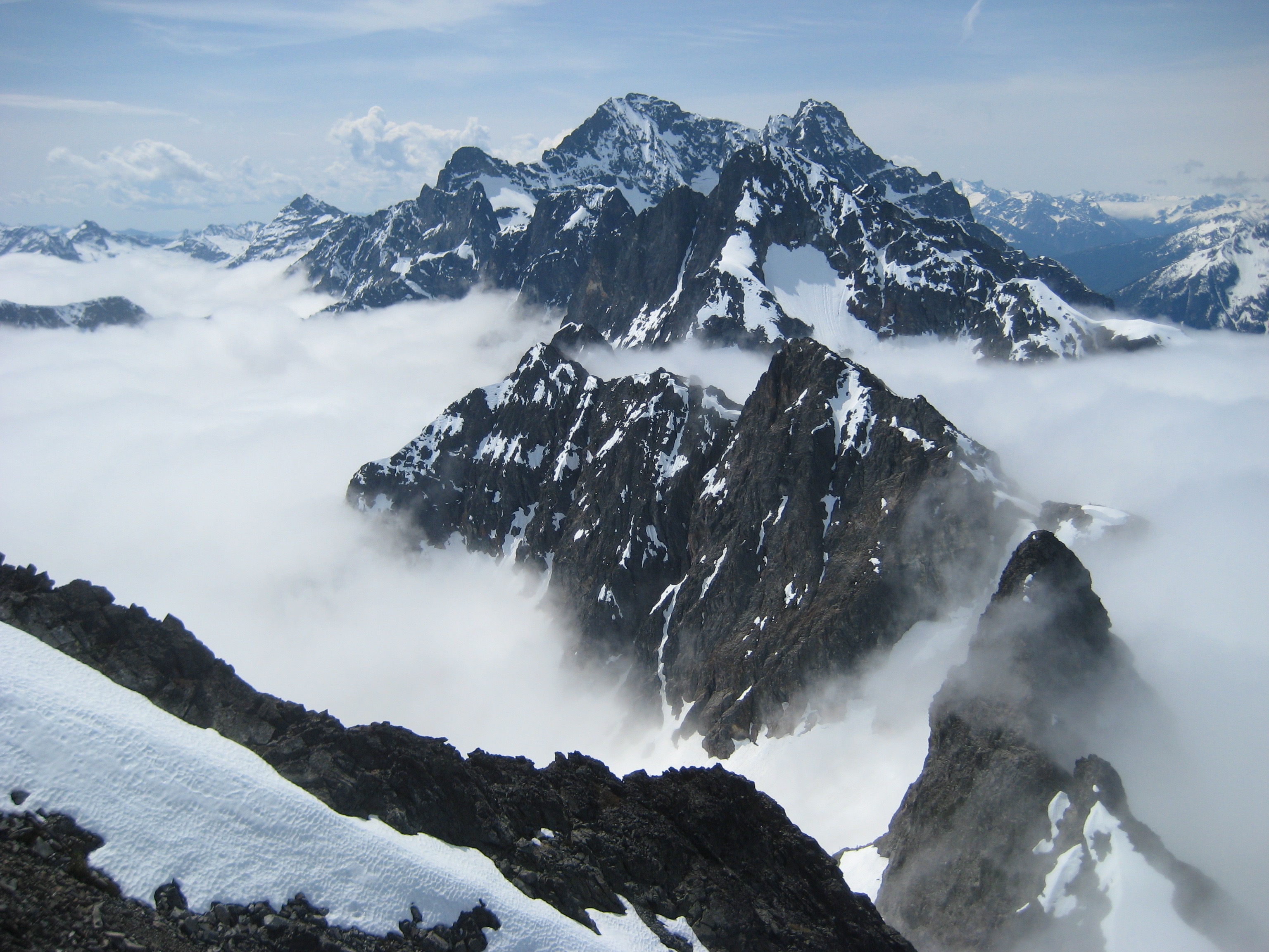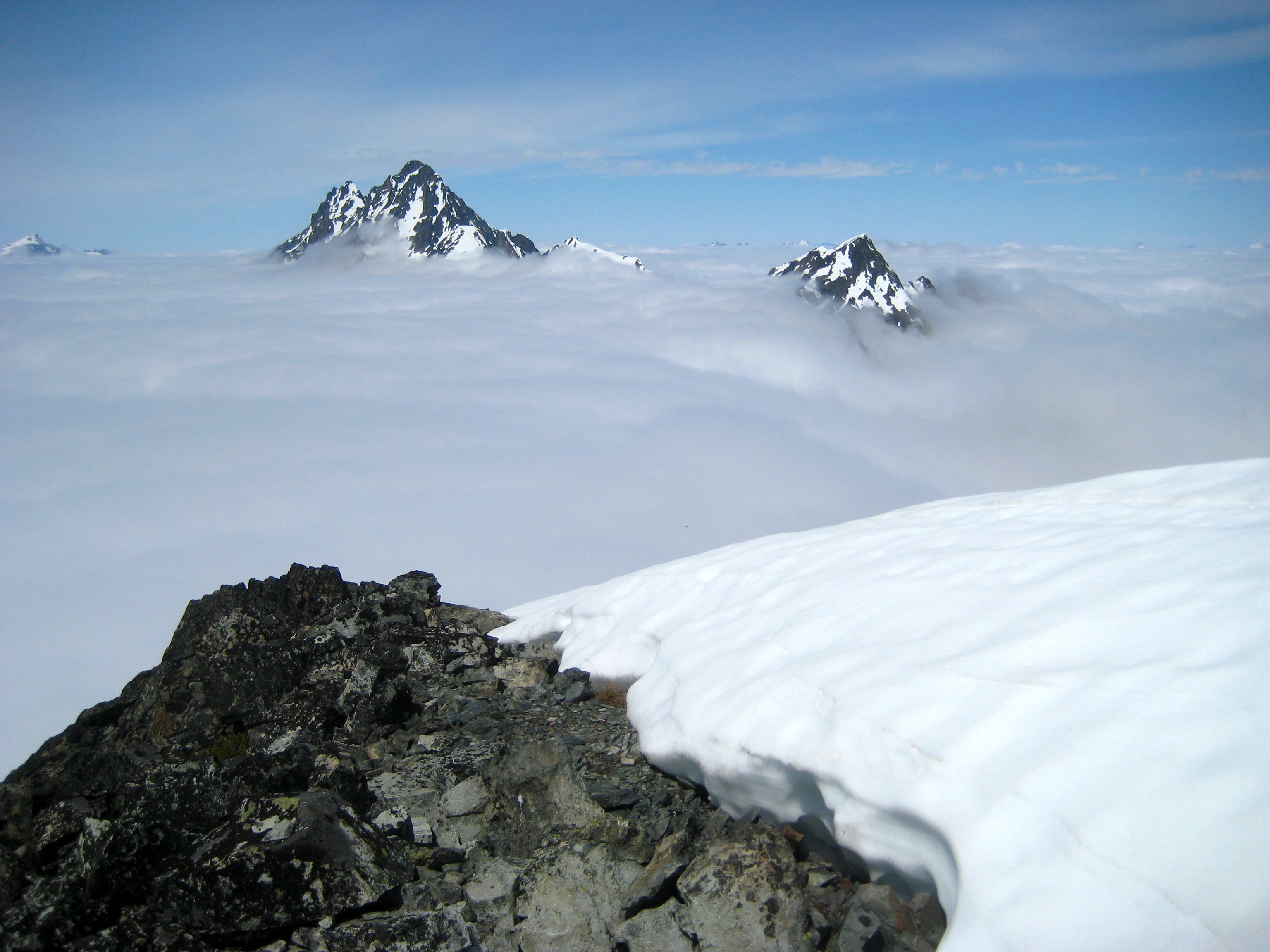 The cloud deck hovered several hundred feet below us, at an elevation of about 7500 feet. All of the big peaks to the west stuck up through the clouds.