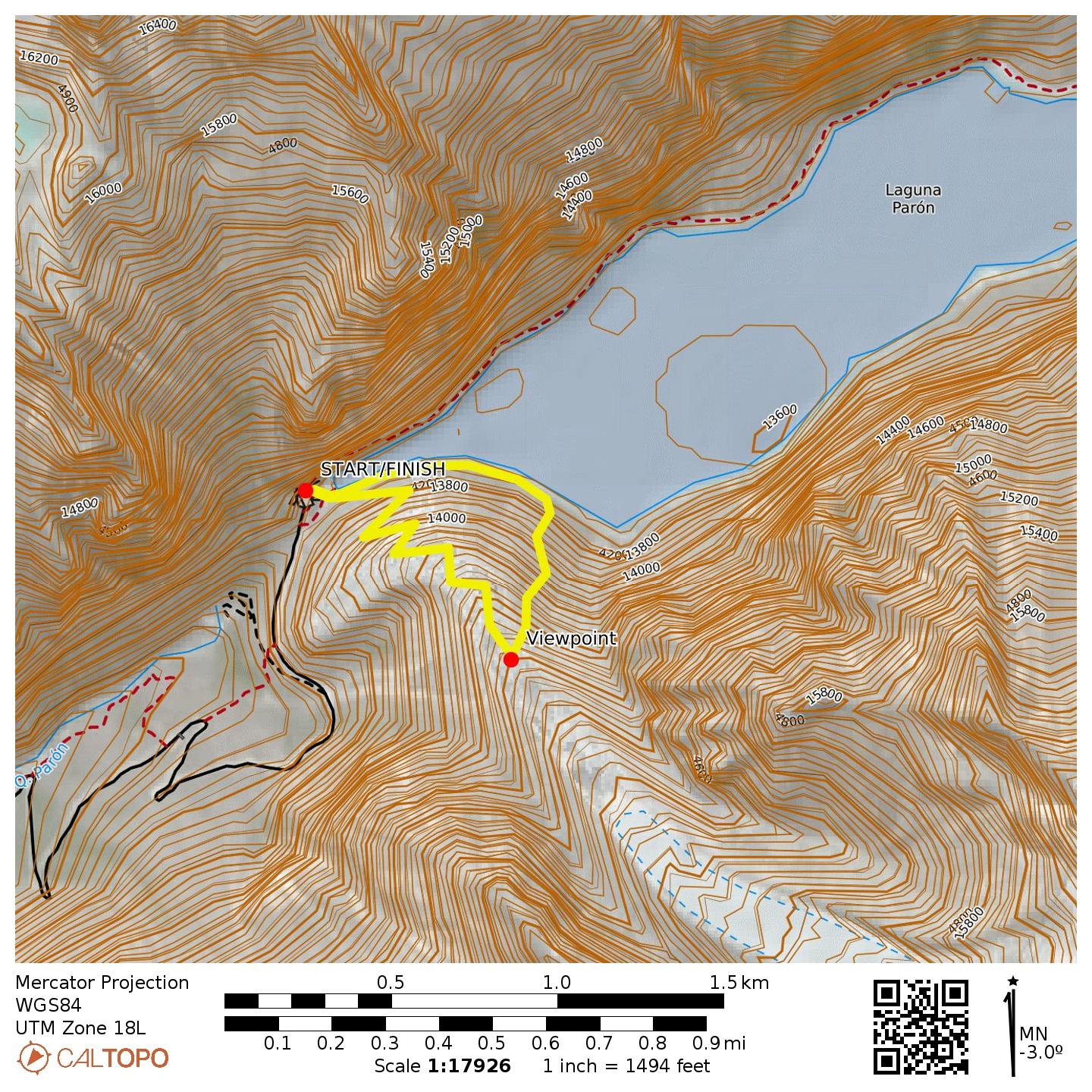 Way Points: Huandoy Glacier Moraine & Lake Paron Viewpoint & Lake Paron shoreline (trail hike & rock scramble)