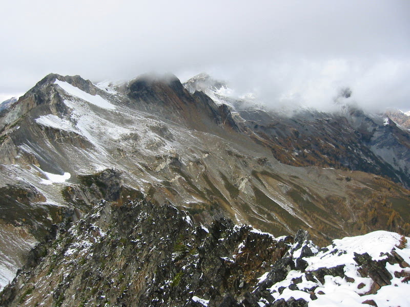 South Spectacle Butte in the Entiat Mountains being engulfed by clouds in the distance as seen from Little Giant Peak in the Chiwawa Mountains