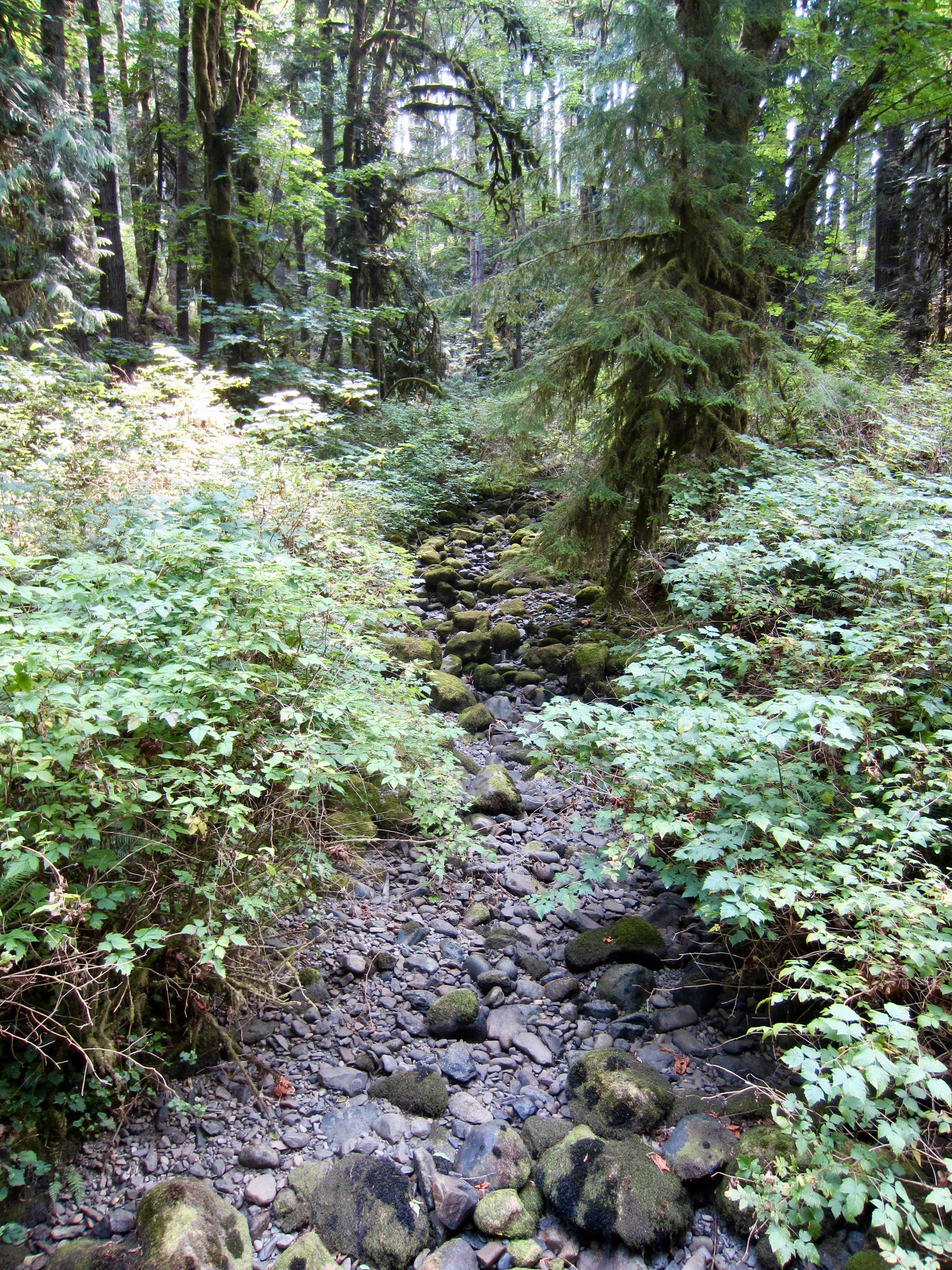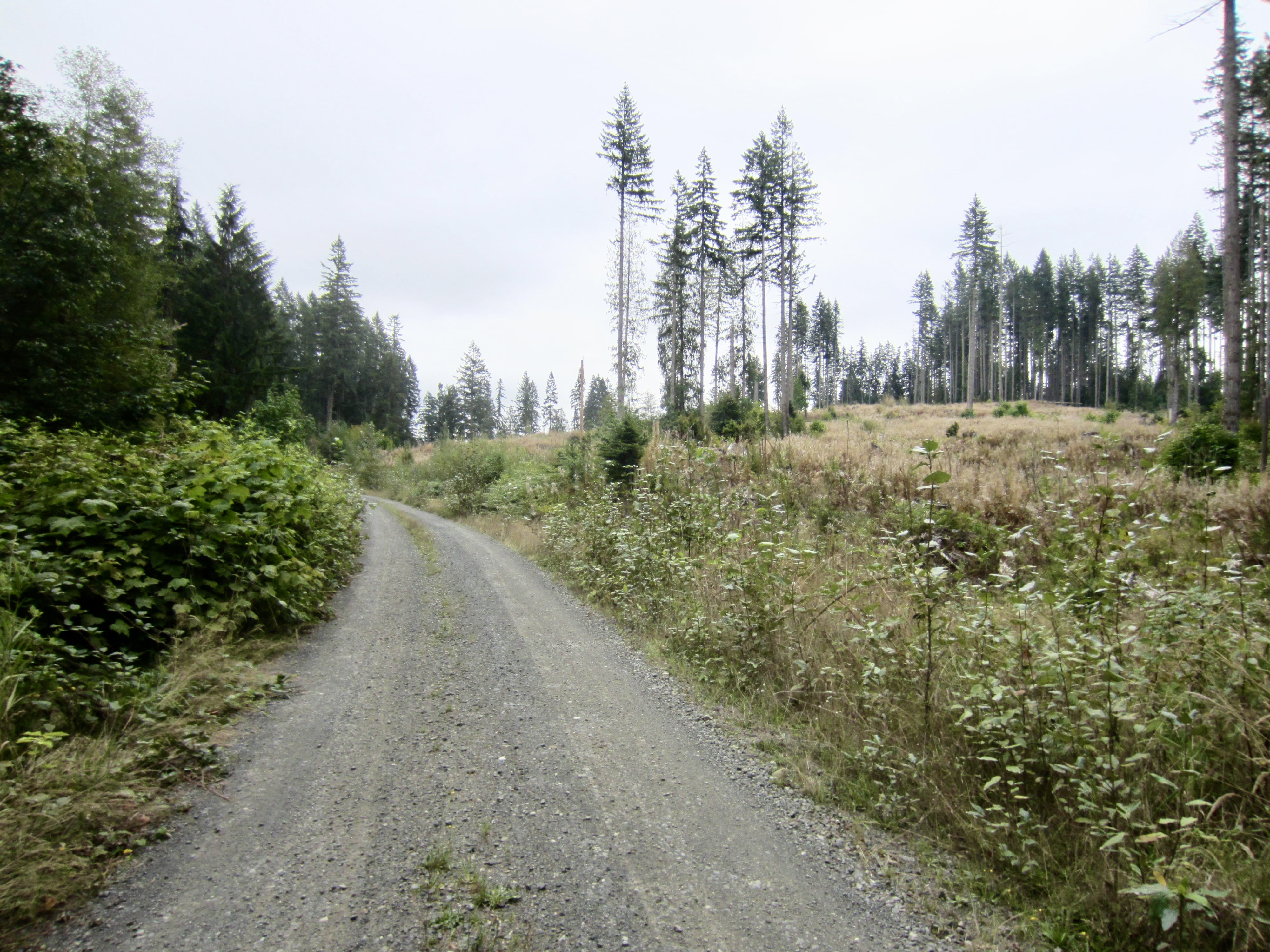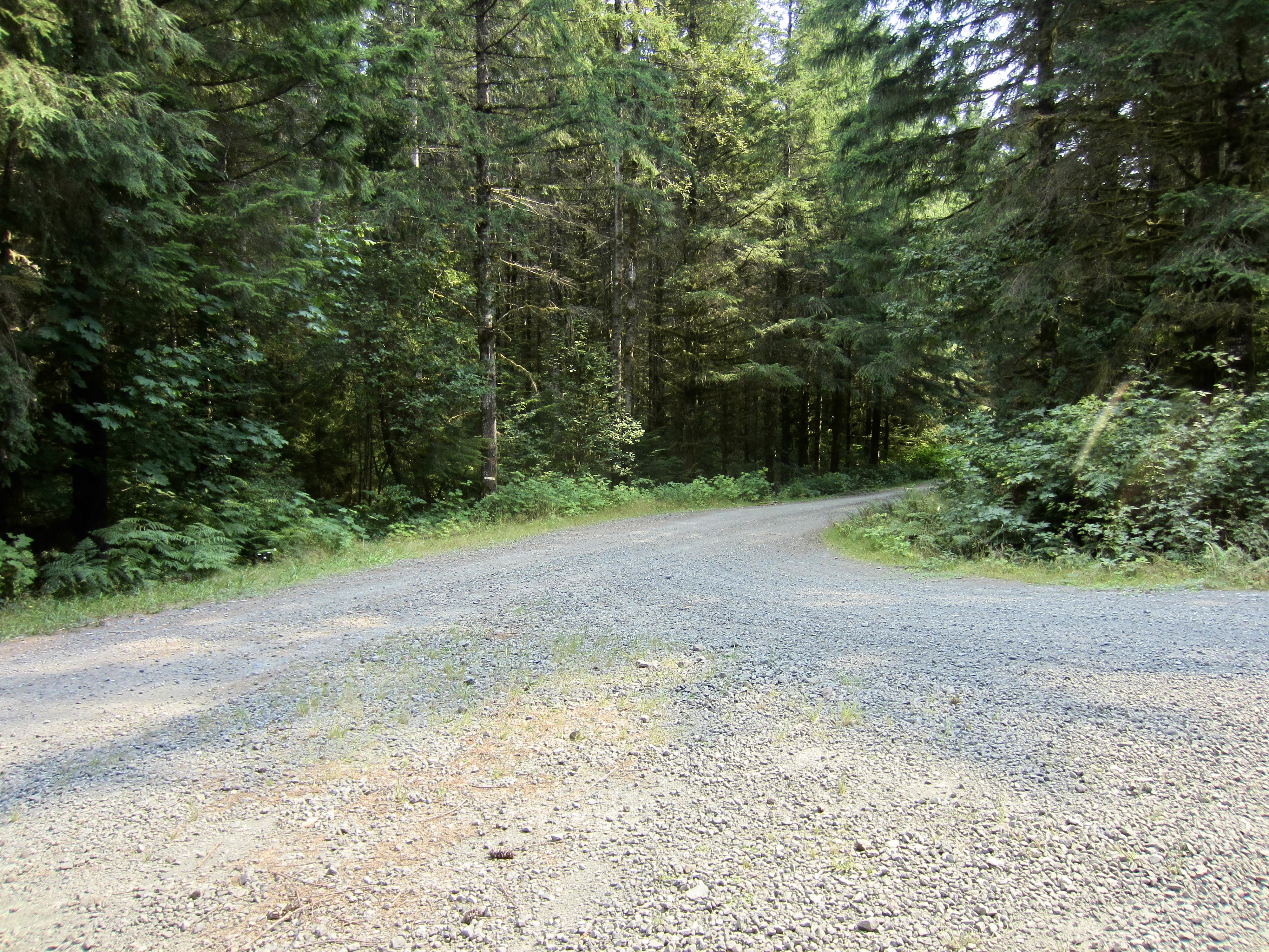 From Youngs River Junction, go straight ahead and climb steeply on a well-traveled truck road to reach Truck Hill Fork at 9.0 miles. The main truck road switches back to the left here. Stay to the right on a little-used road that soon crosses Upper Cherry Creek Bridge, then ascends to Cherry Creek Junction at 10.3 miles. You are now back on the Stickerbush Loop.