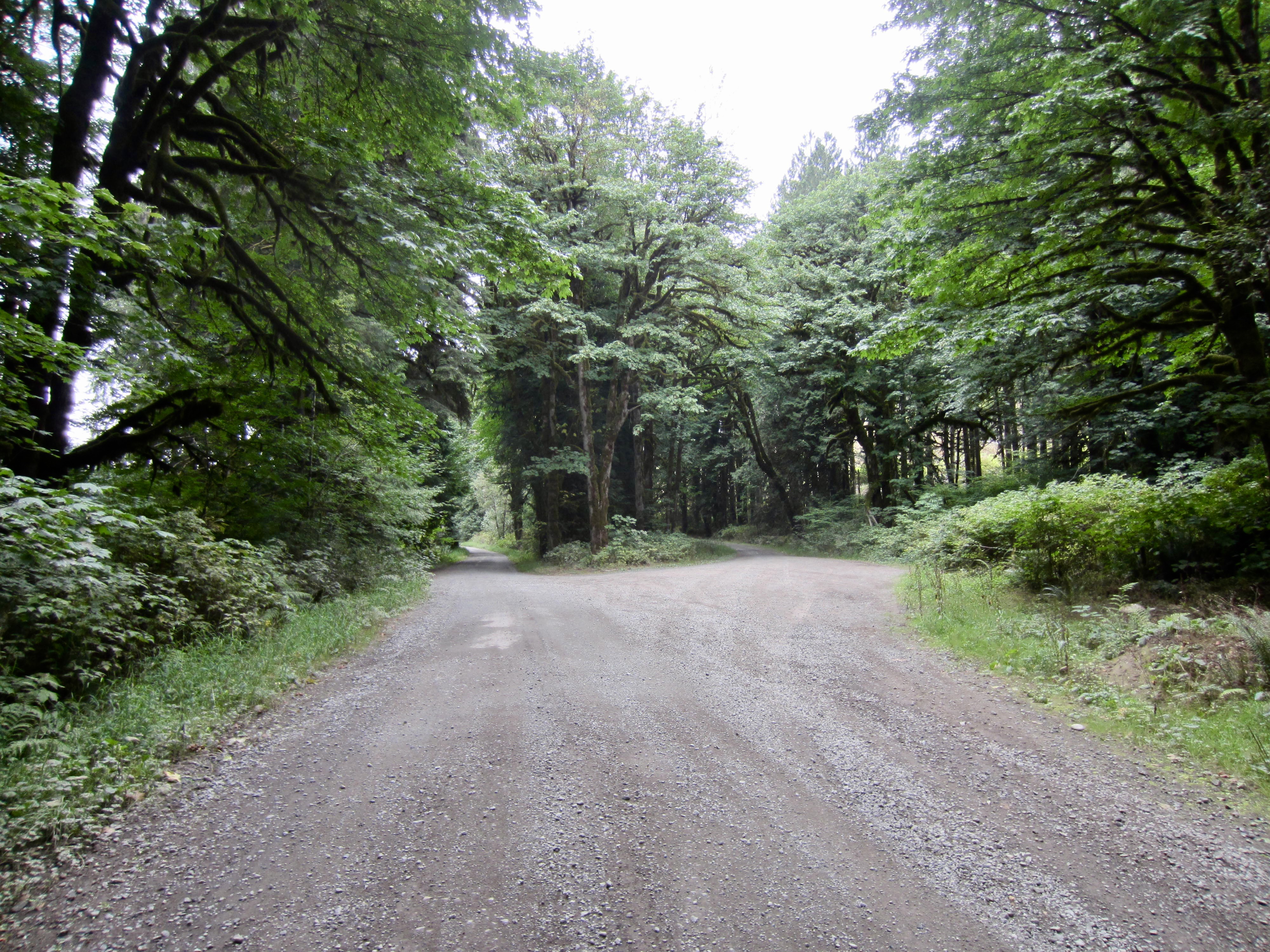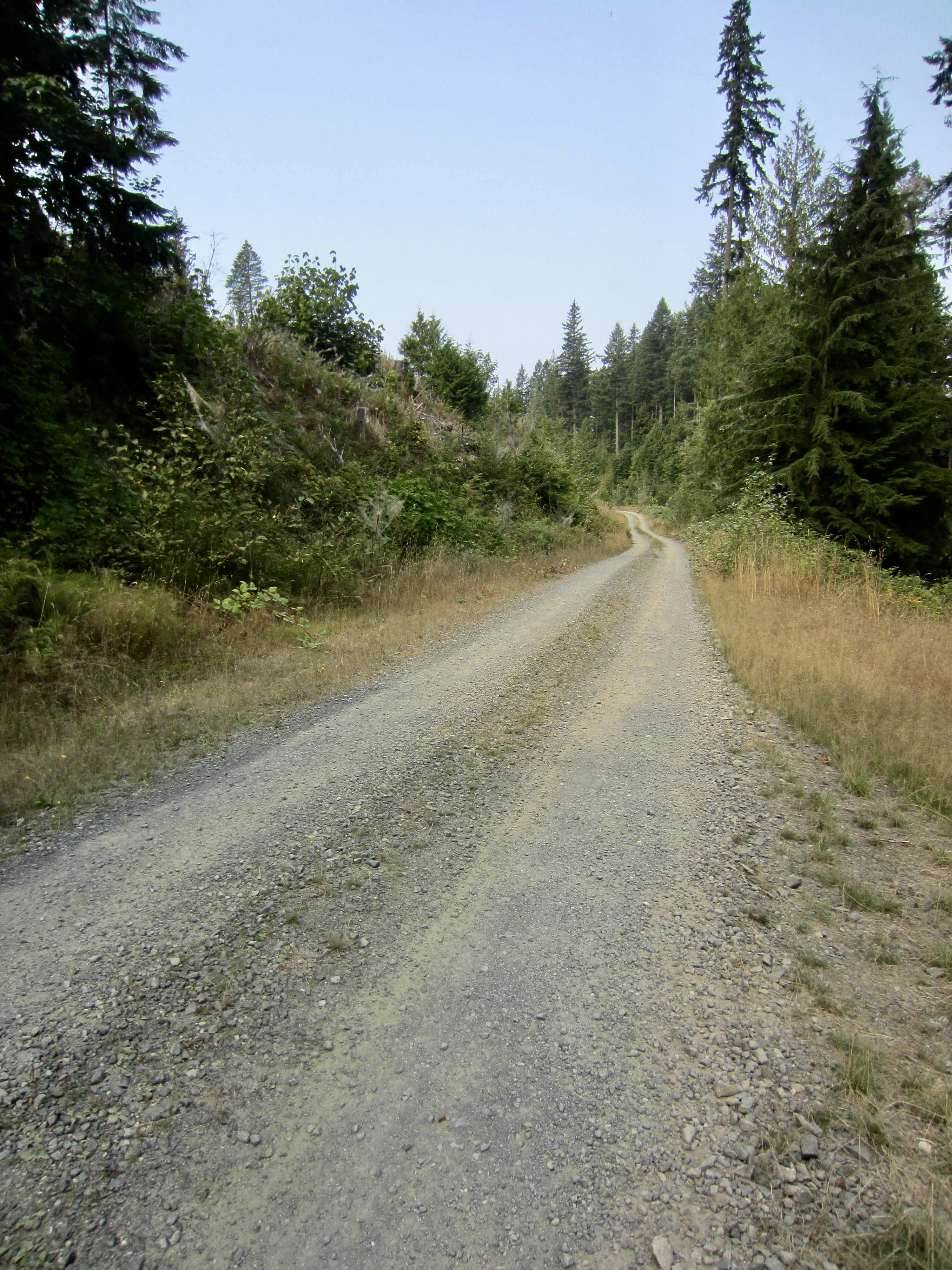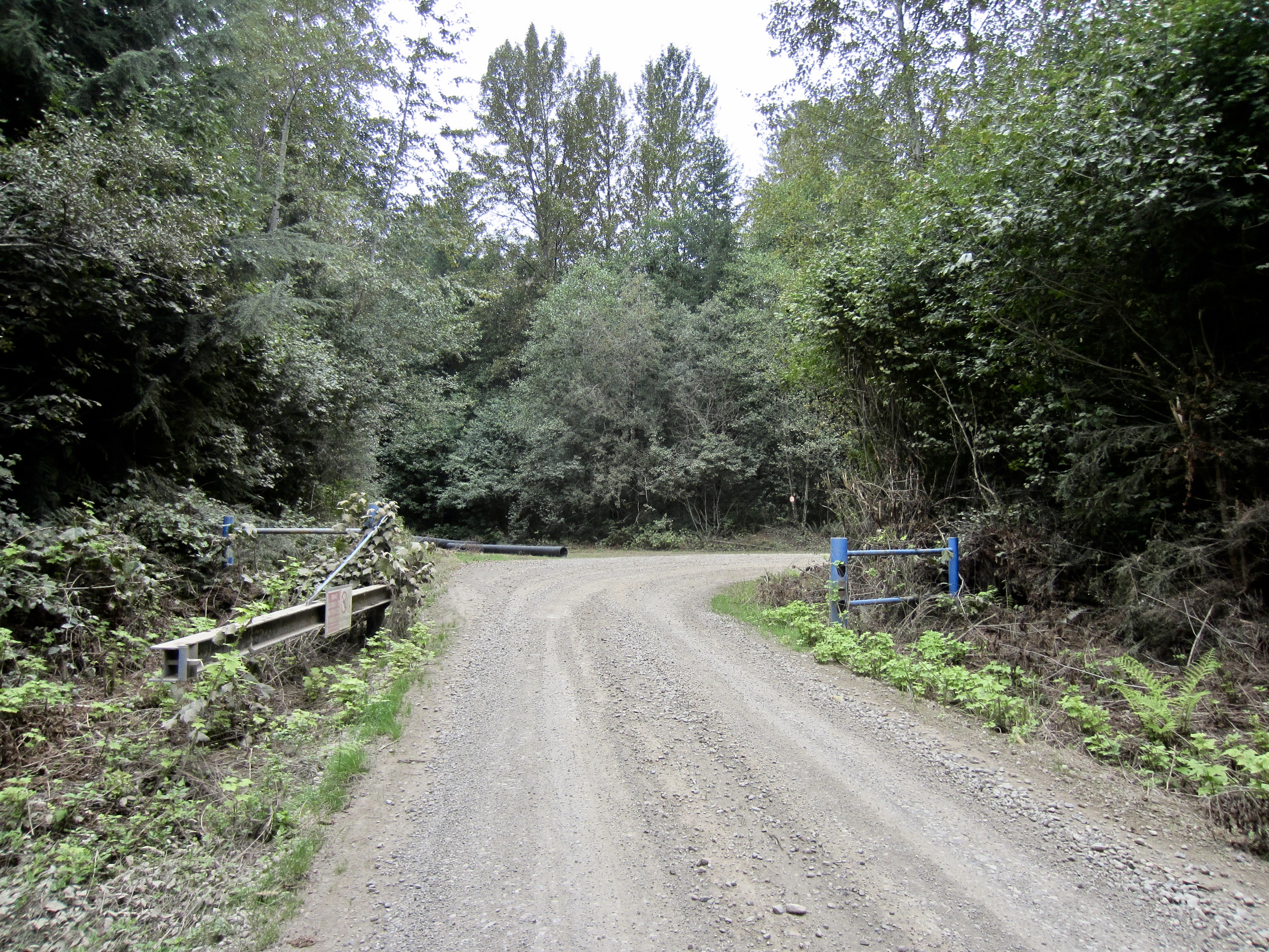 From Stickerbush Arm, make a long and relatively steep descent interrupted by brief uphill segments. Be careful to control your speed on the gravelly portions; serious wipeouts have occurred here! The road flattens out as you cross Stossel Creek at 16.2 miles. A short climb then brings you past a blue gate and back up to the four-way intersection at 16.8 miles, thereby ending your Cedarbush Loop.