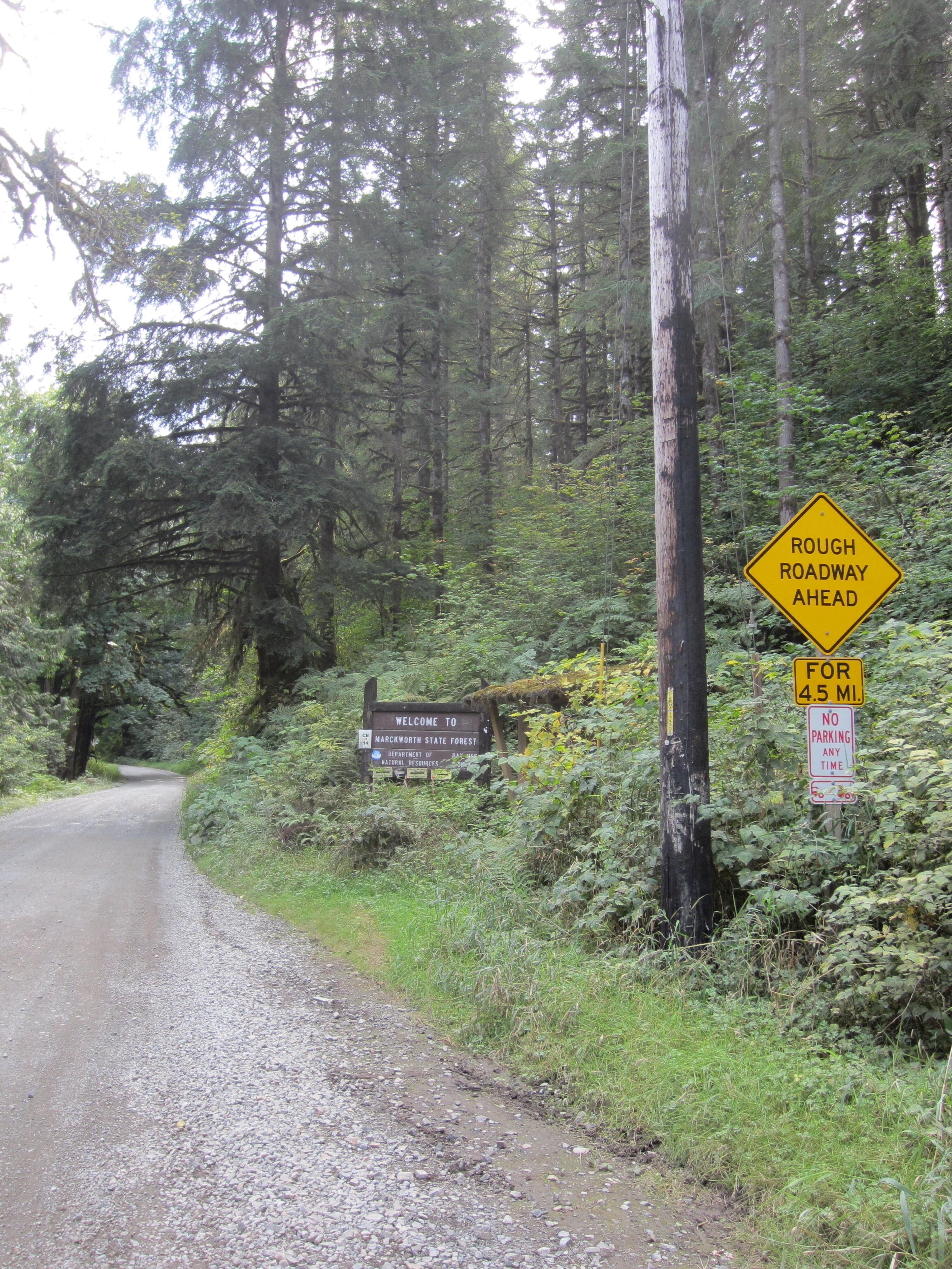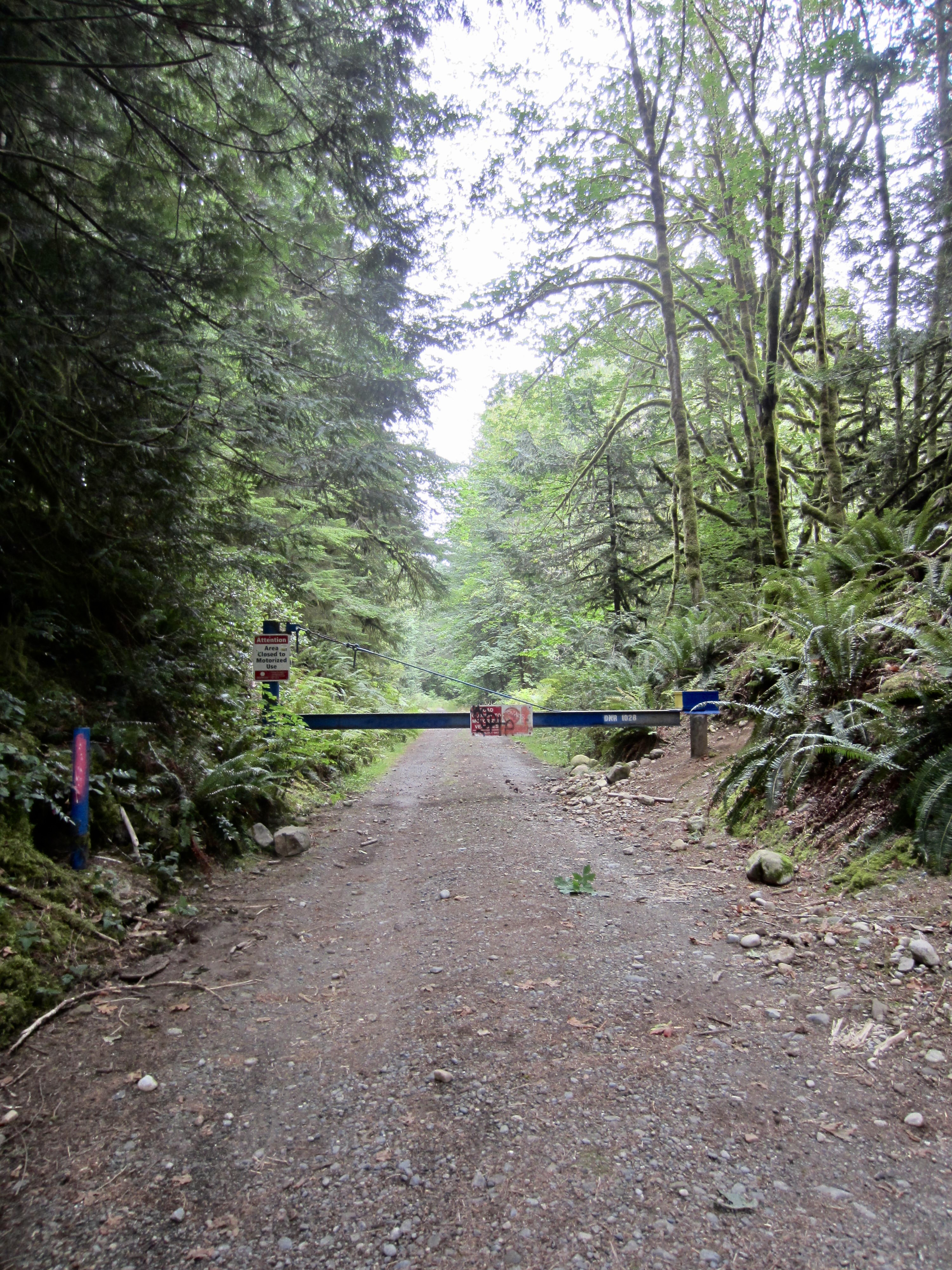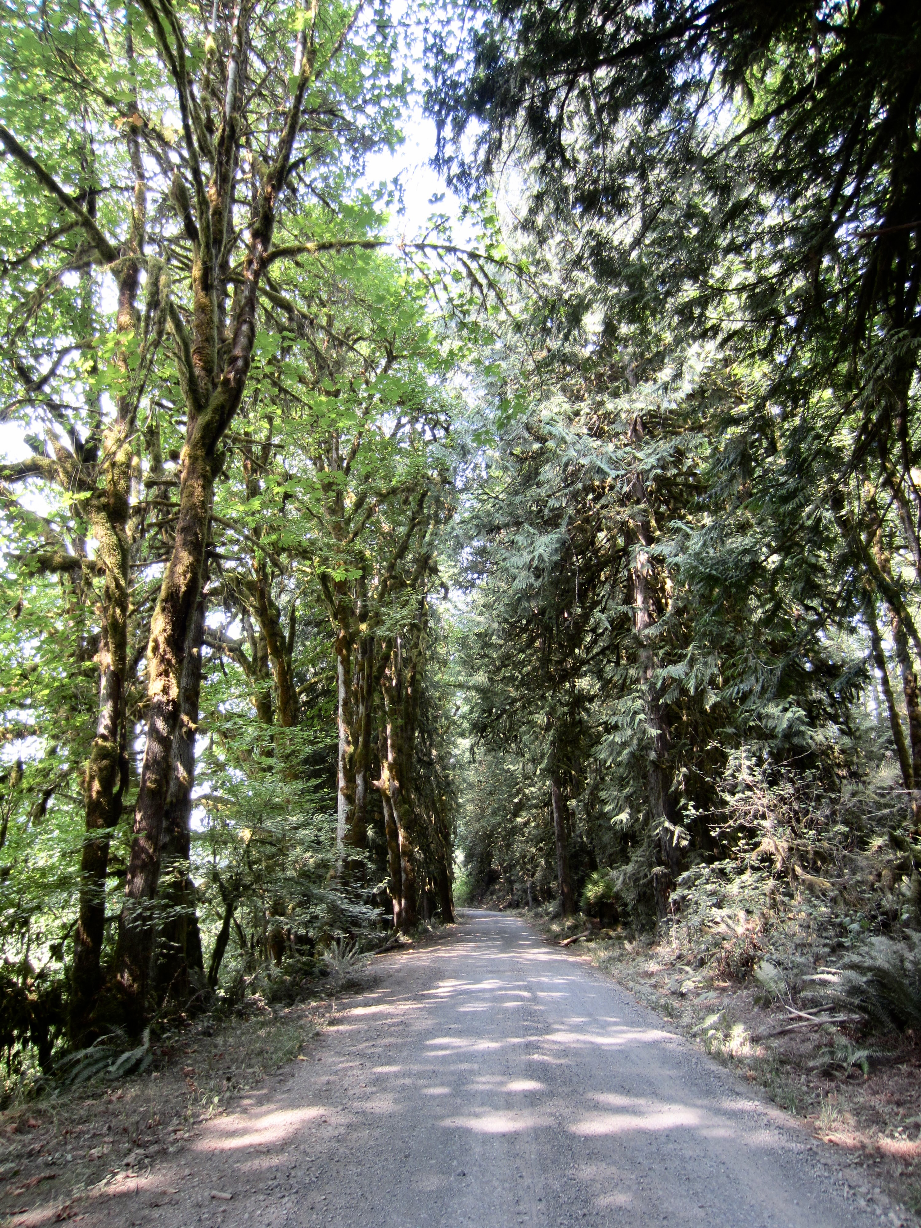 From Stickerbush Arm, make a long and relatively steep descent interrupted by brief uphill segments. Be careful to control your speed on the gravelly portions; serious wipeouts have occurred here! The road flattens out as you cross Stossel Creek at 16.2 miles. A short climb then brings you past a blue gate and back up to the four-way intersection at 16.8 miles, thereby ending your Cedarbush Loop.