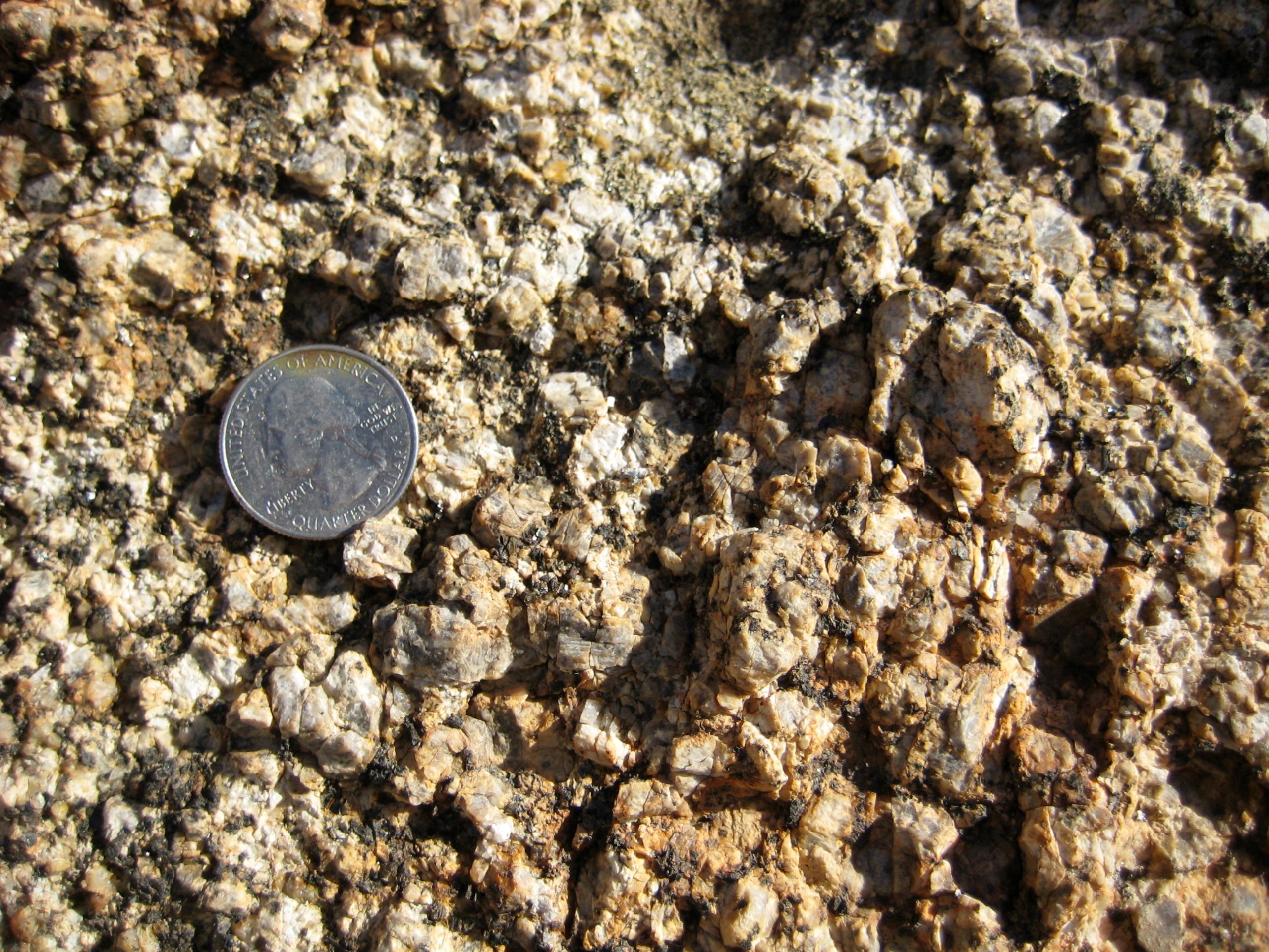 Along the way, we couldn’t help but marvel at the monzonite (a close relative of granite) that dominates the entire park. On a small scale, the crystals within the monzonite rock are extremely coarse—far bigger than any granite crystals I’ve ever seen. On a large scale, the once-solid rock has fractured and weathered into comically enormous boulders.