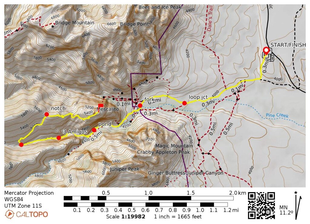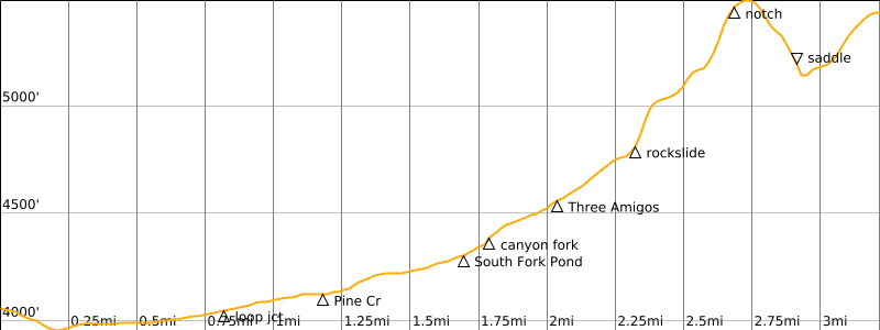 Starting & Ending Point: Pine Creek Canyon Trailhead on Scenic Drive (Elev. 4050 feet)