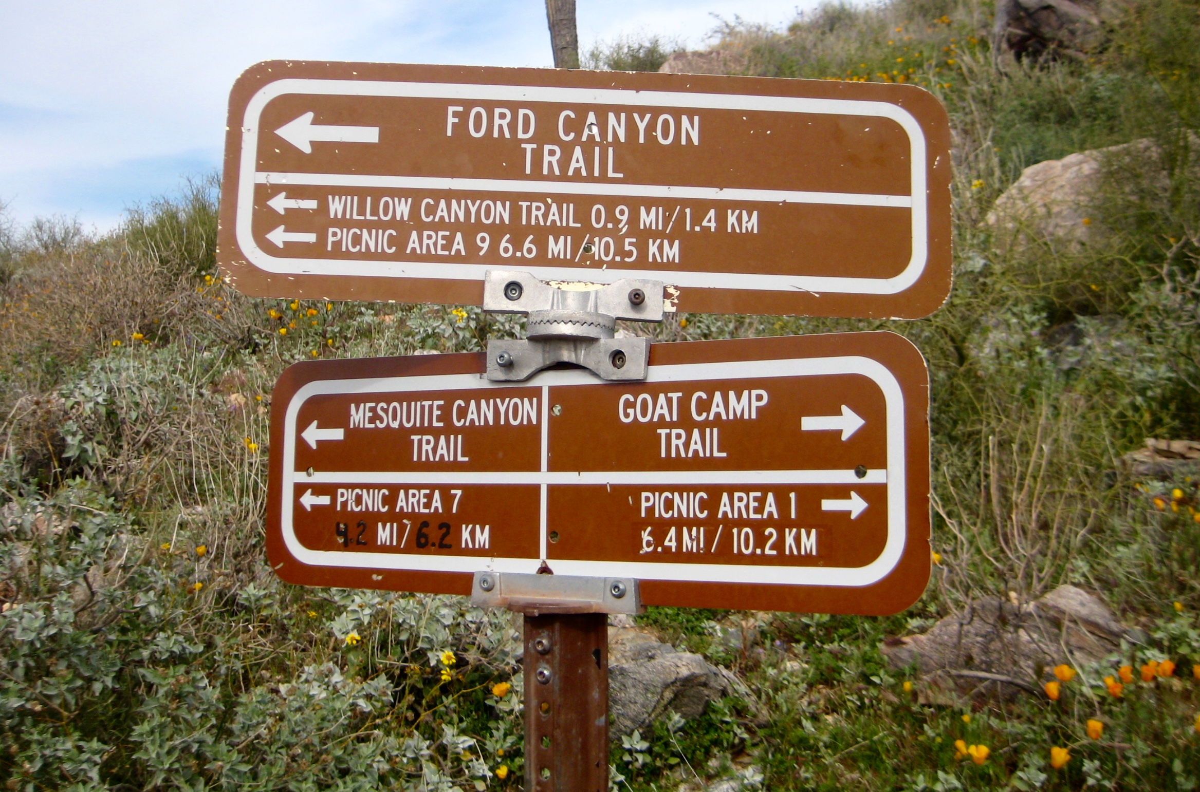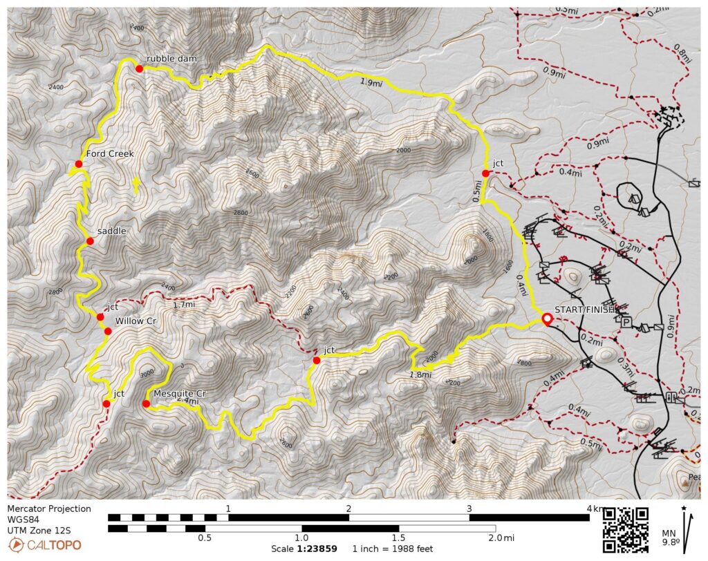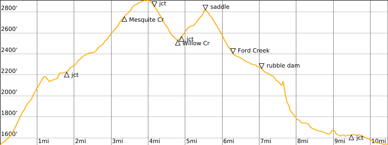 High Point: Mesquite Canyon Trail / Ford Canyon Trail junction vicinity (Elev. 2900 feet)