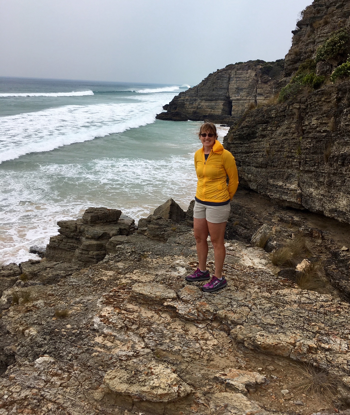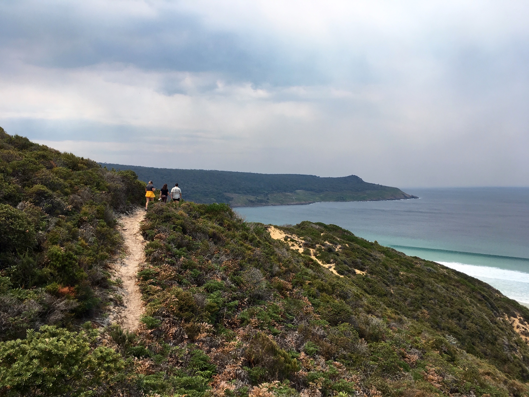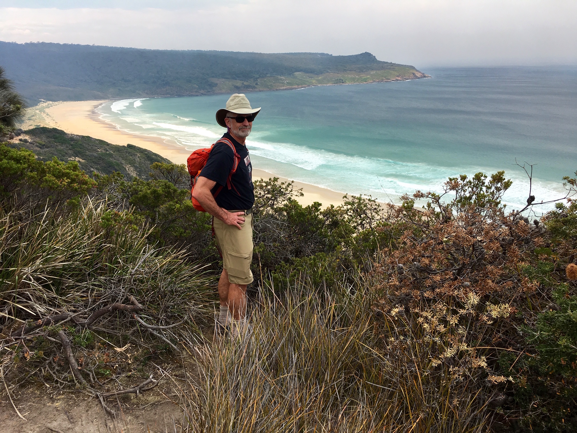 Since the tide was in, we had to take the high trail over Mars Bluff.  This gave us a good view of the Bruny coastline before we descended to the beach.