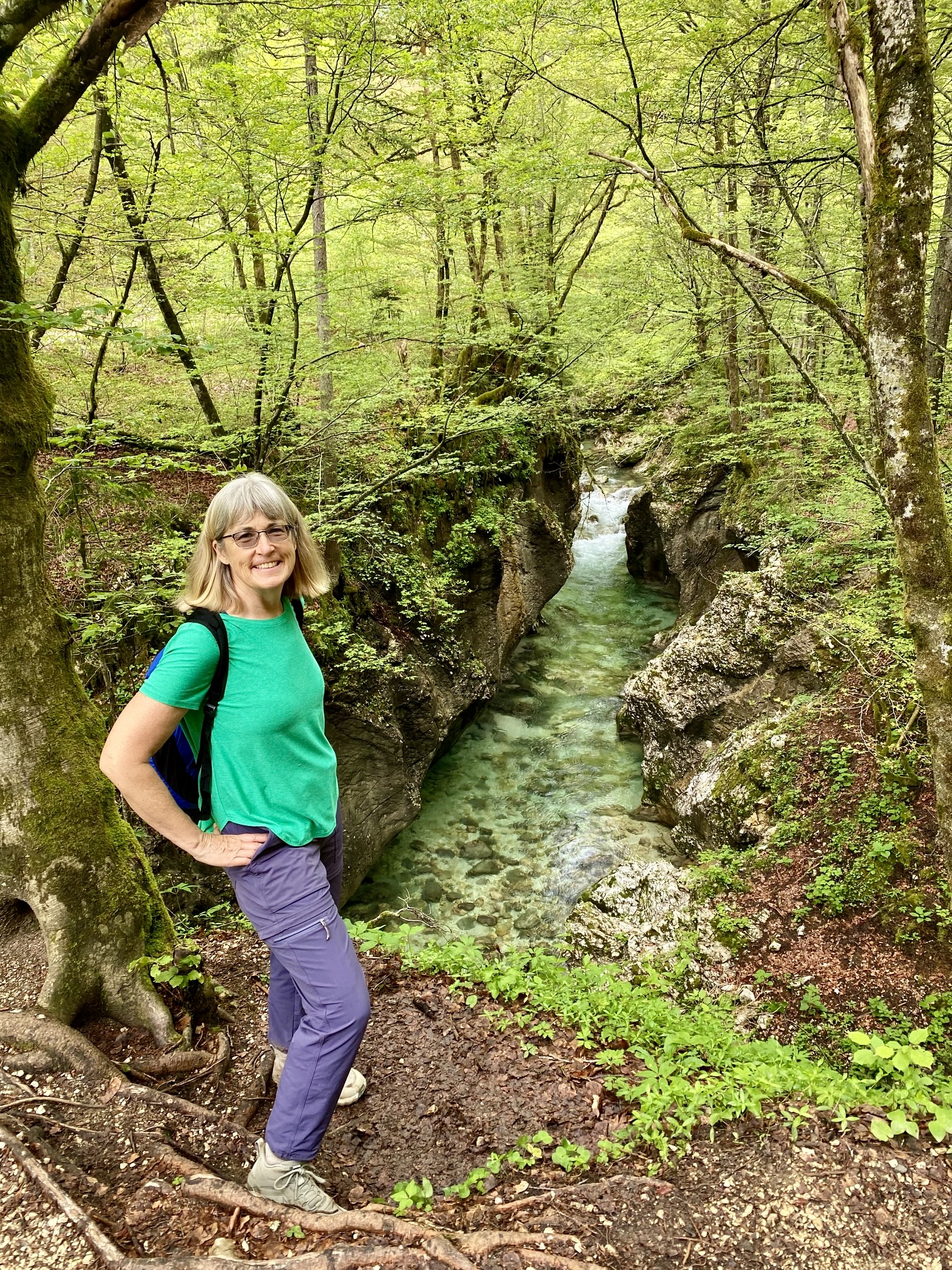 During our short visit to Slovenia’s ultra-popular tourist town of Bled, Eileen and I drove out to Lake Bohinj in Triglav National Park. This is the largest lake in the park and the largest natural lake in Slovenia. It also serves as a good starting point for exploring Mostnica Gorge, one of the country’s many fabulous limestone canyons.