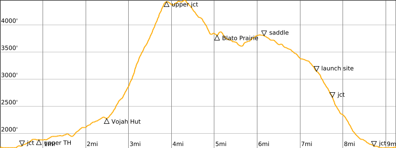 Approximate Stats: 9.2 miles / 14.9 kilometers traveled; 3300 feet / 1000 meters gained & lost; 6.8 hours elapsed.