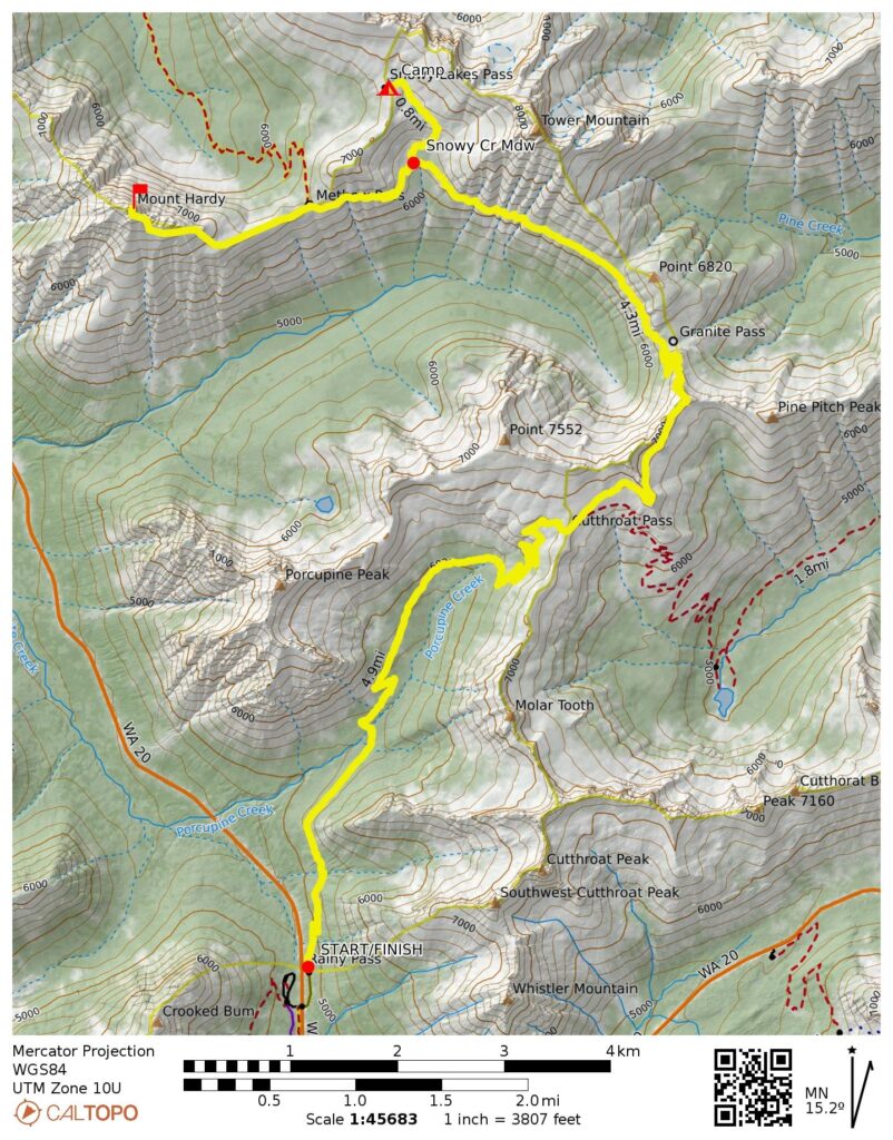 Starting & Ending Point: PCT-Northbound Trailhead at Rainy Pass on Highway 20 (Elev. 4900 feet)