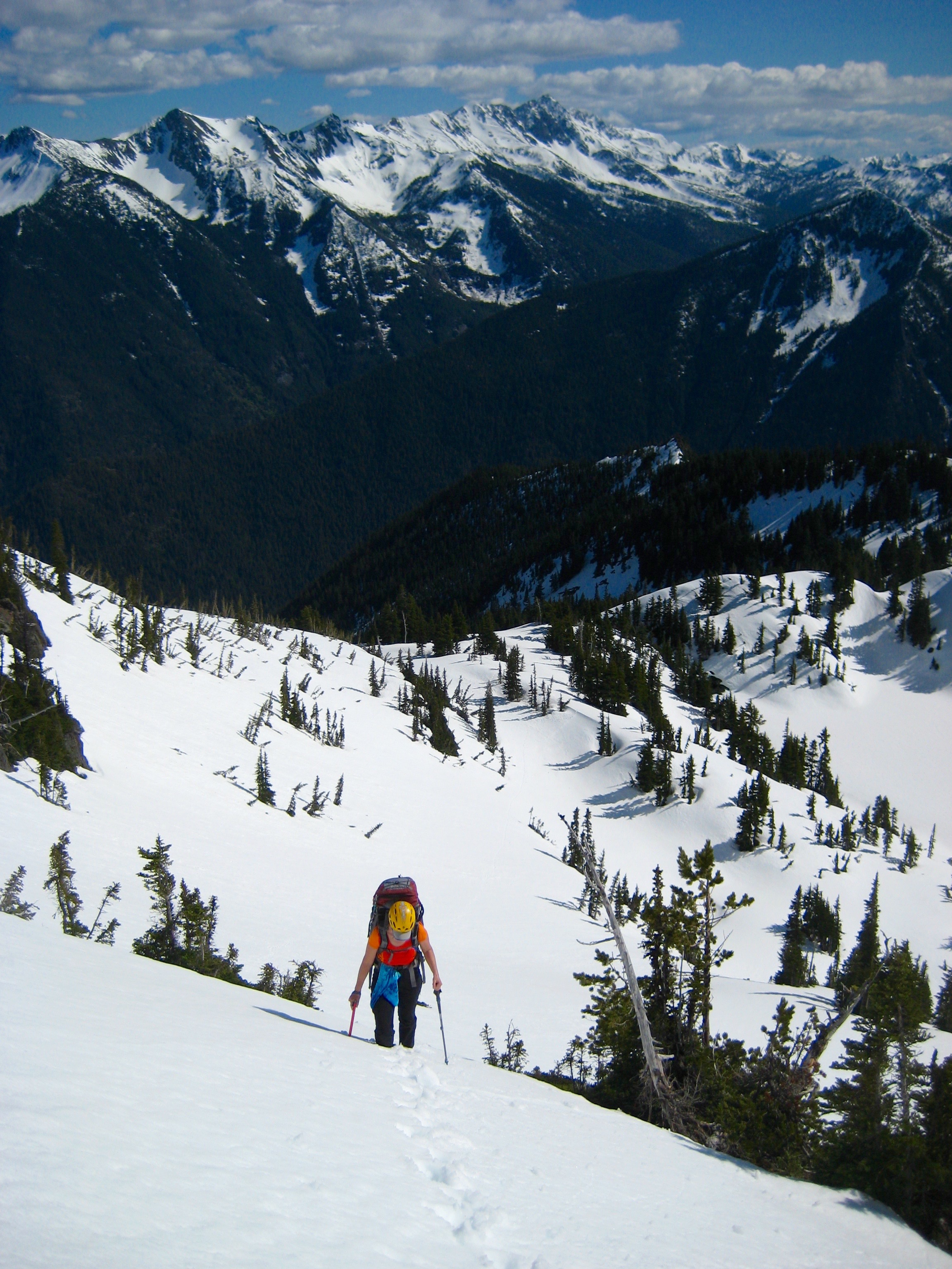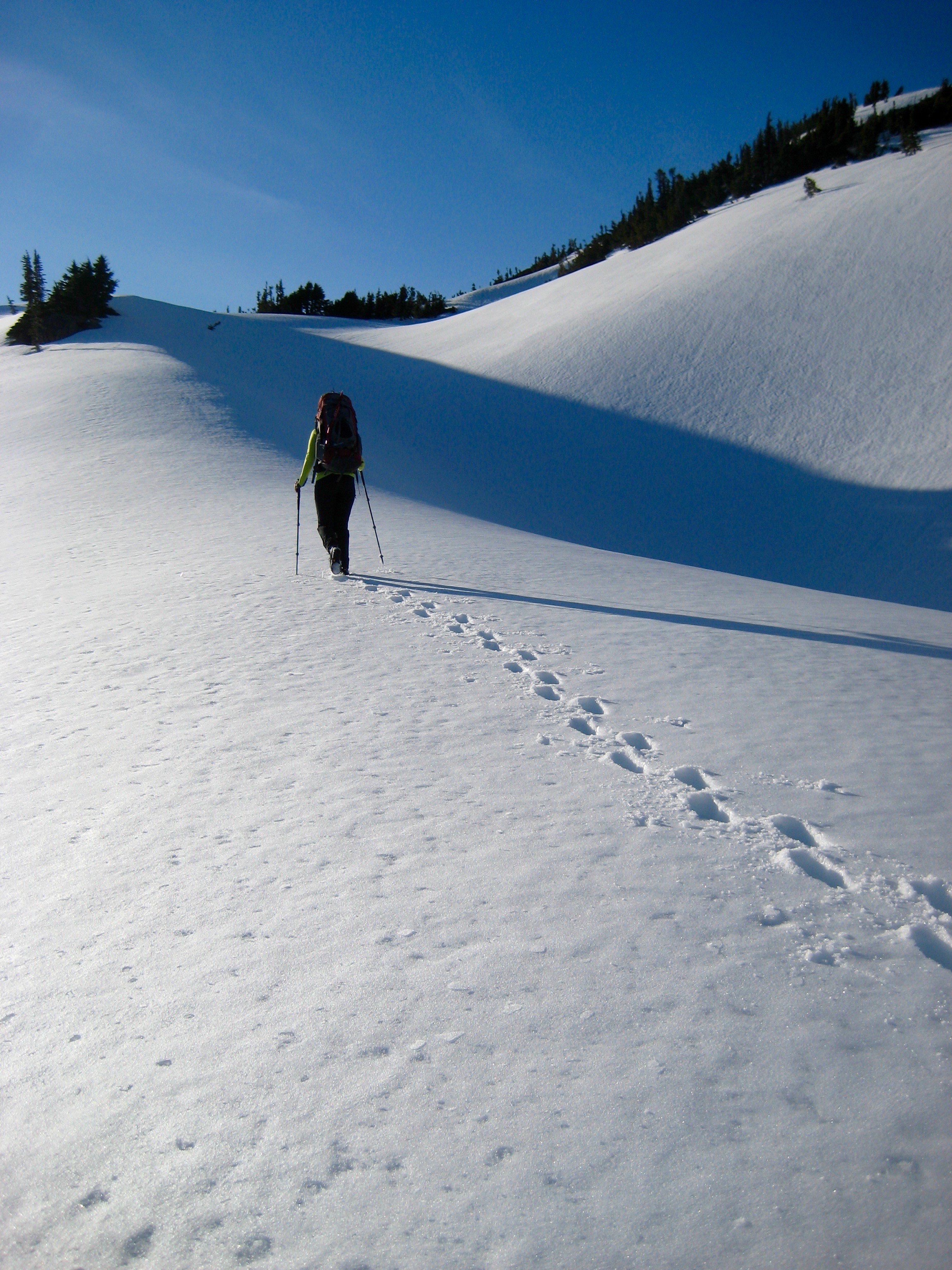 The afternoon snow had formed 12 to 18 inches of mush over a firm base, but we never really felt a need for snowshoes.