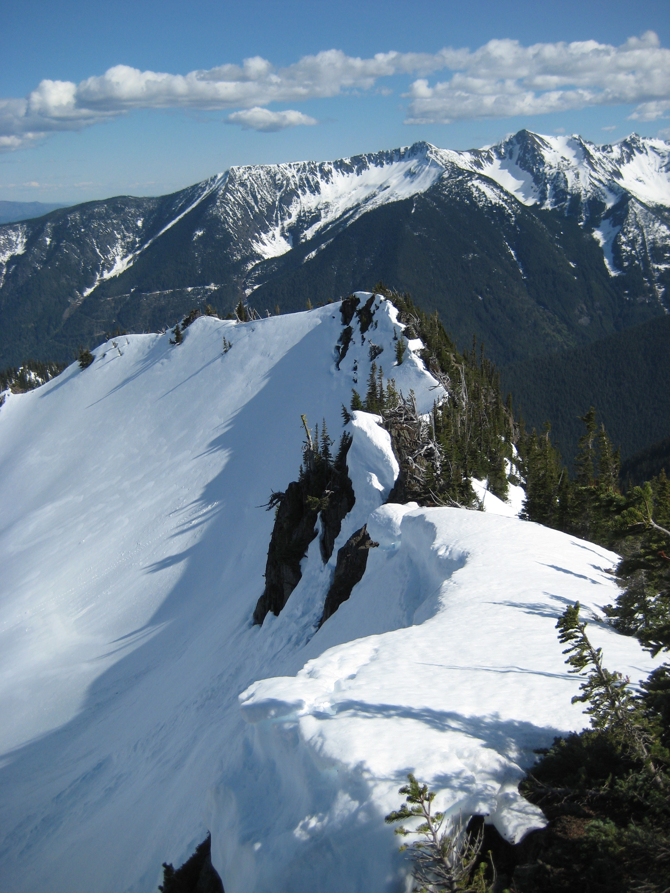 We hiked up the Rock Mtn. Trail, encountering snow at 5000 feet, then continued up to Rock Lake. The Rock Lake / Crescent Lake divide was clearly visible above the lake, and we were able to scope out a good ascent route.