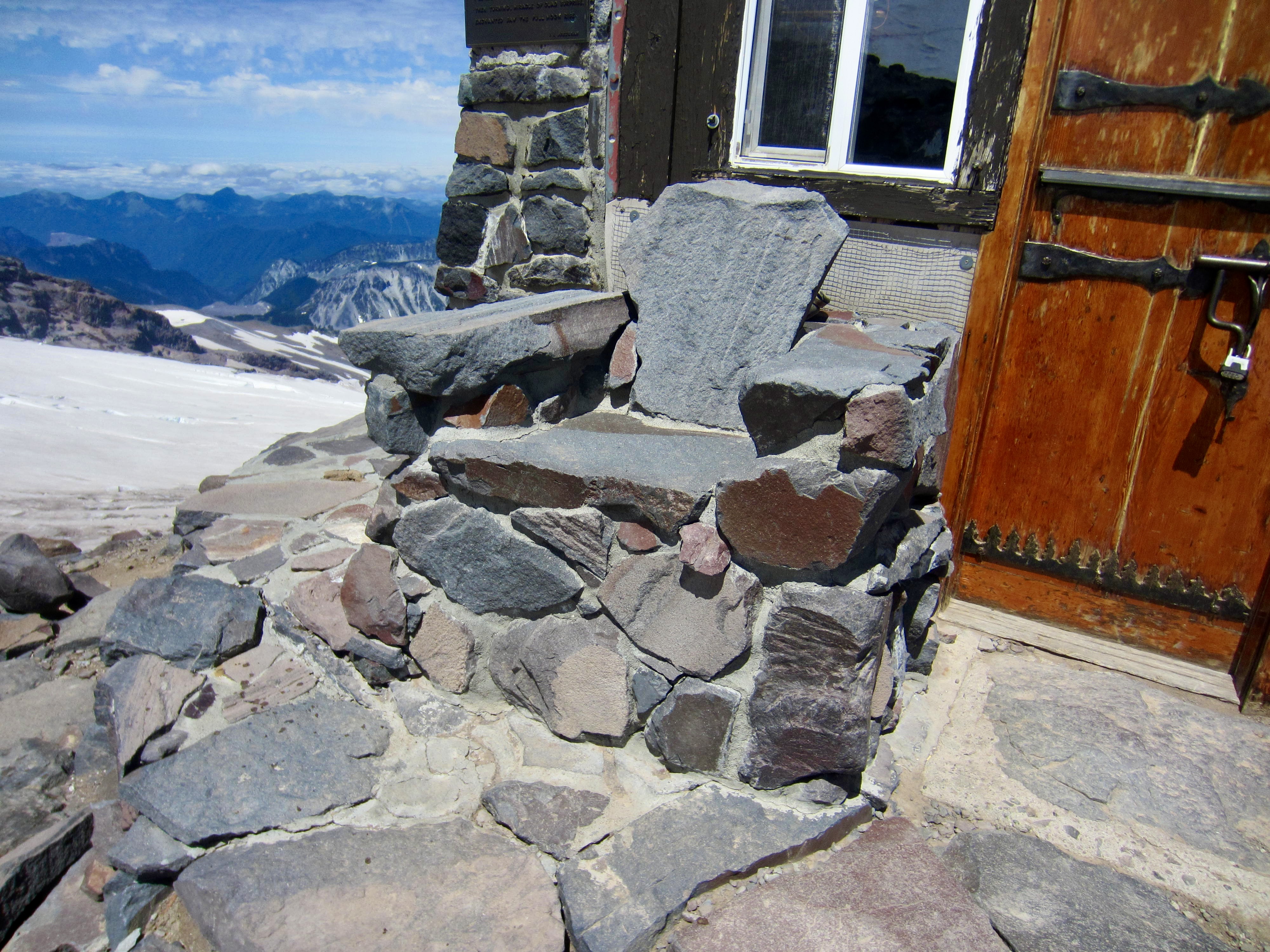 I was especially intrigued by the historic stone shelter (now a ranger station), which had been systematically constructed by volunteers over a period of several years during the 1950s. Because this shelter was the vision of Clark Schurman—a Rainier park ranger, mountain guide, and Boy Scout leader—it was named in his honor. I last saw the building in 1976 and could tell that it has changed a lot since then.