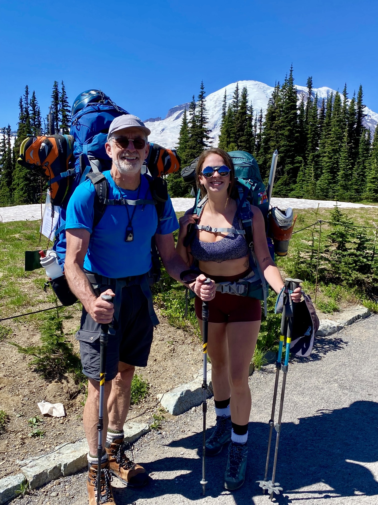 When my daughter Brooke and her boyfriend Dan announced that climbing Mt. Rainier was a bucket-list item for them, Eileen and I couldn’t deny them an opportunity. We selected the Emmons Glacier route, which neither of us had done before and is reportedly pretty straightforward. I was particularly interested in this route because it had thwarted me during my first-ever Rainier attempt in 1976. Eileen, feeling satisfied by her previous ascent of the Ingraham Glacier route, was less interested in the Emmons Glacier. Instead, she handled our trip logistics, navigated through the onerous permitting process, and acted as our high-camp manager.