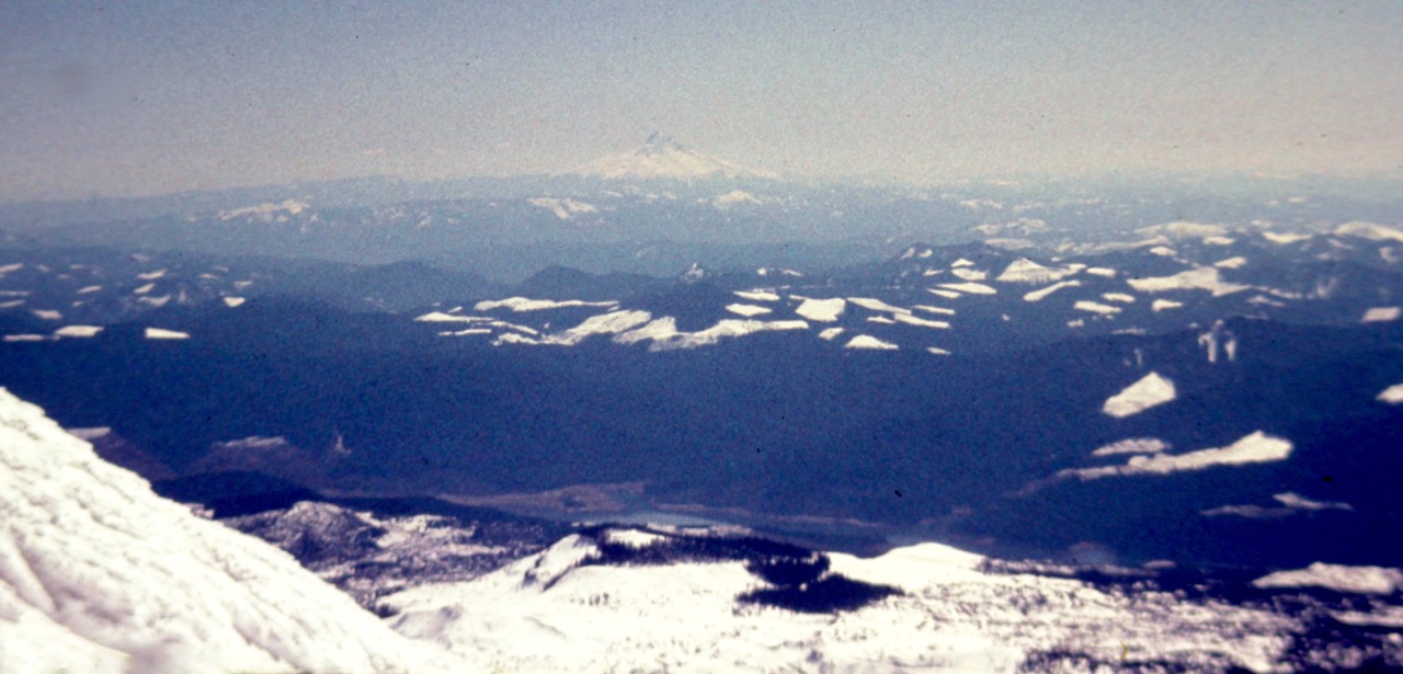 It was a gorgeous day to stand on a high summit. Views extended to Mt. Rainier, Mt. Adams, Mt. Hood, and beyond. Snow-covered Spirit Lake was visible far below.