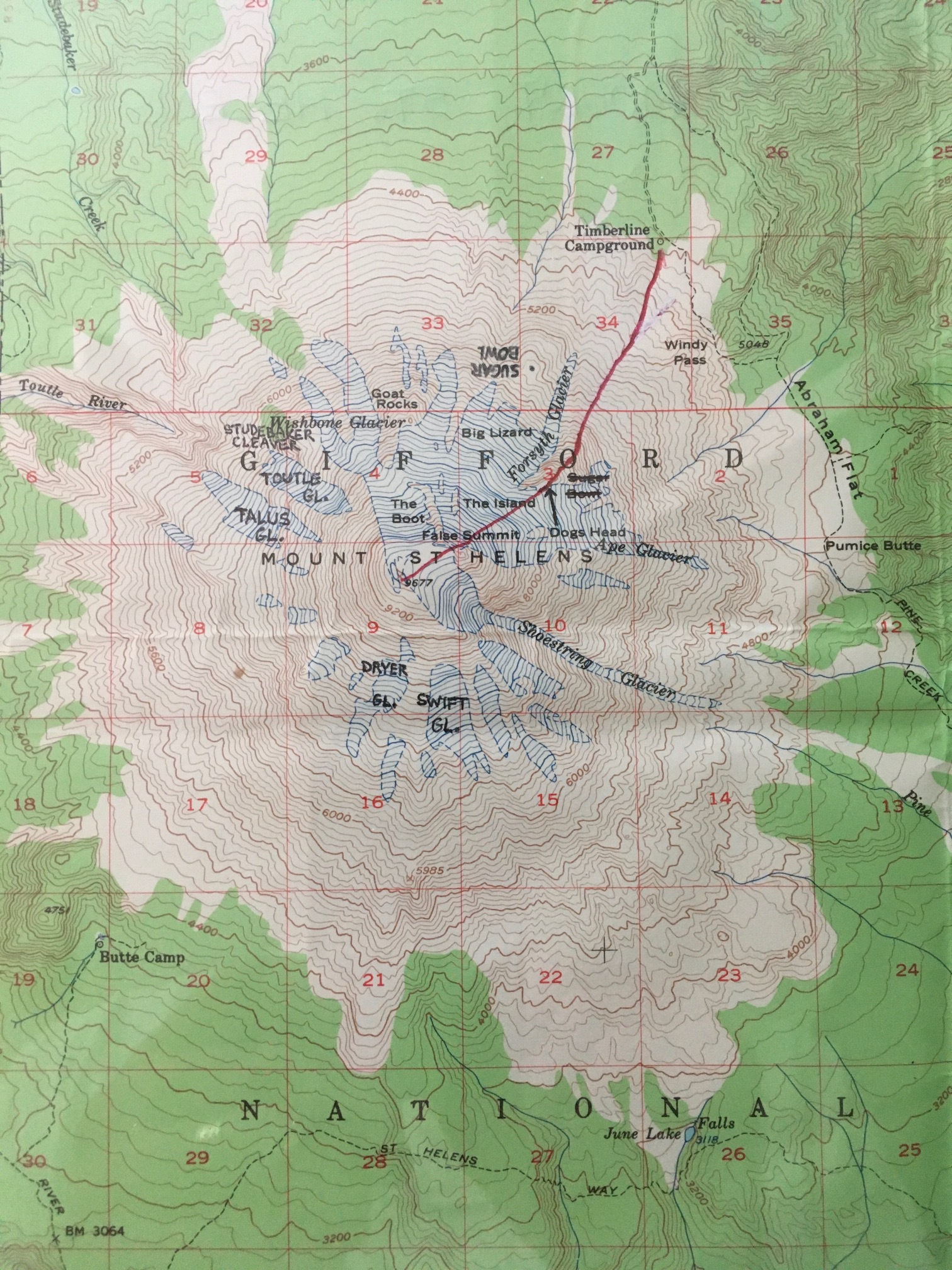Starting & Ending Point: Timberline Campground at end of Spirit Lake Road (Elev. 4400 feet)
