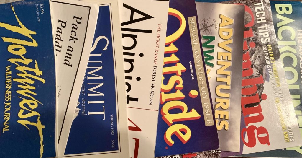 The following Mountain Goodies pages represent a smorgasbord of mountain-related articles, equipment catalog excerpts, photos, and artwork that I have collected over many decades of traveling around the mountains.  These pages are gathered into six collections that can be found via the links shown below.