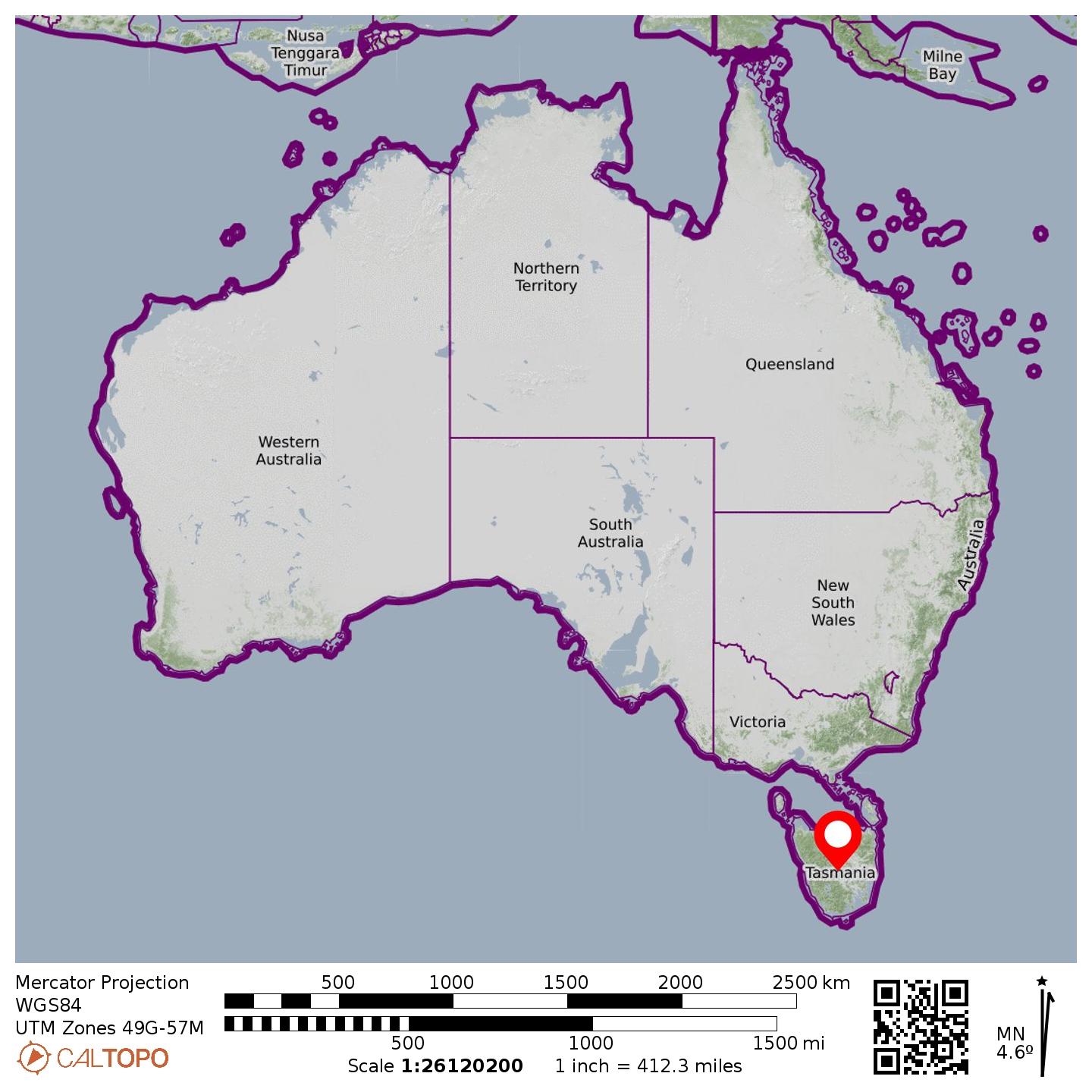 At the beginning of our visit to the Freycinet Peninsula on the eastern coast of Tasmania, Eileen, Brooke, Callum, and I climbed Mt. Amos. This small but popular peak is one of five peaks that comprise the Hazard Range located within Freycinet National Park. Despite its modest elevation (1490 feet / 454 meters), Mt. Amos has two special attributes. First, the ascent is an absolutely delightful Class 2-3 scramble up mega-crystalline pink granite. Second, the summit provides an excellent view down into world-famous Wineglass Bay.
