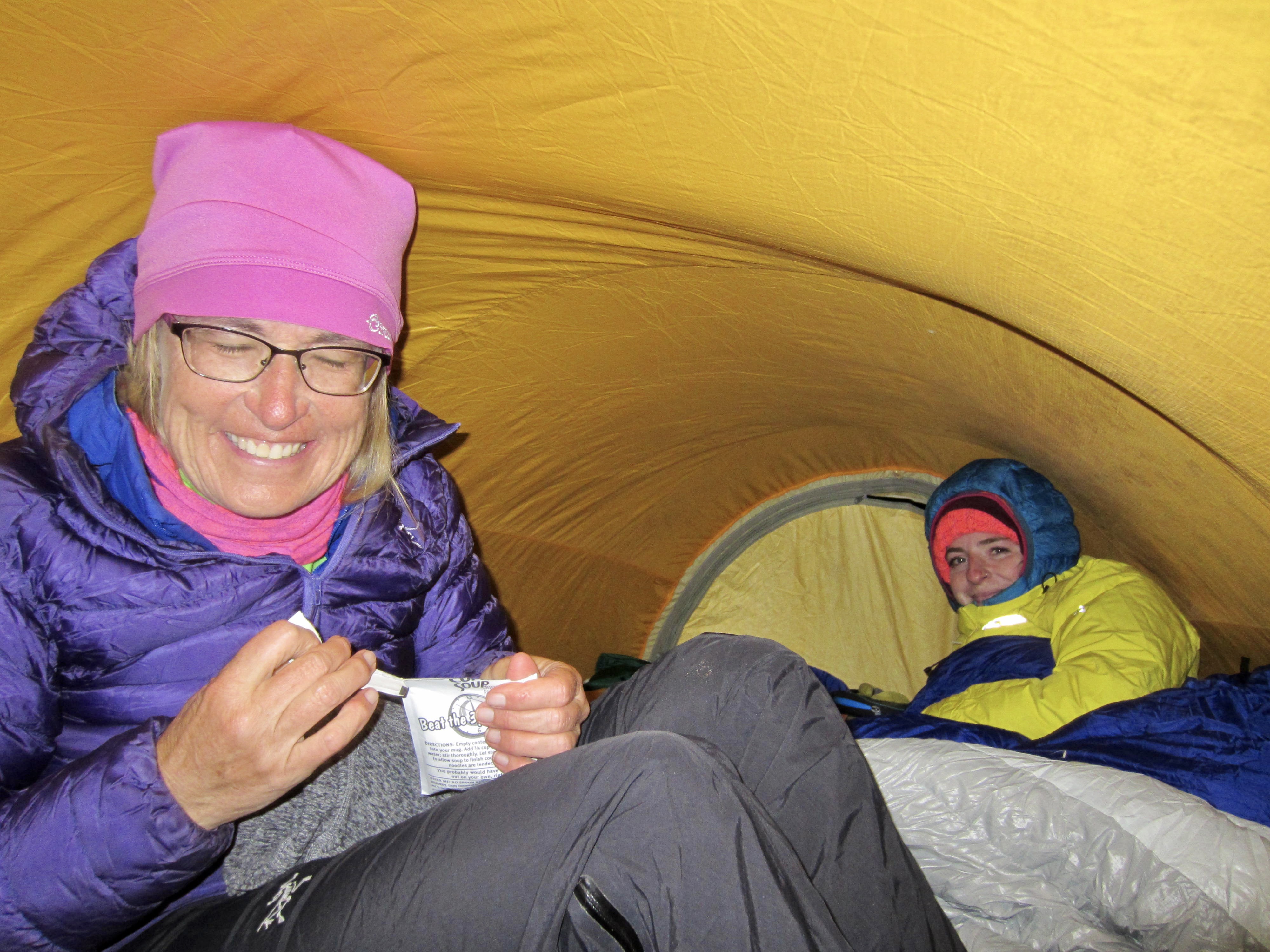 Eileen & Brooke Crammed Into Omnipotent On Summit Plateau
