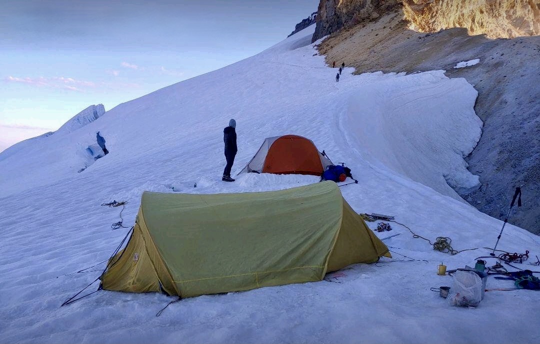 Omnipotent 1147 pitched on the summit plateau of Mt. Baker