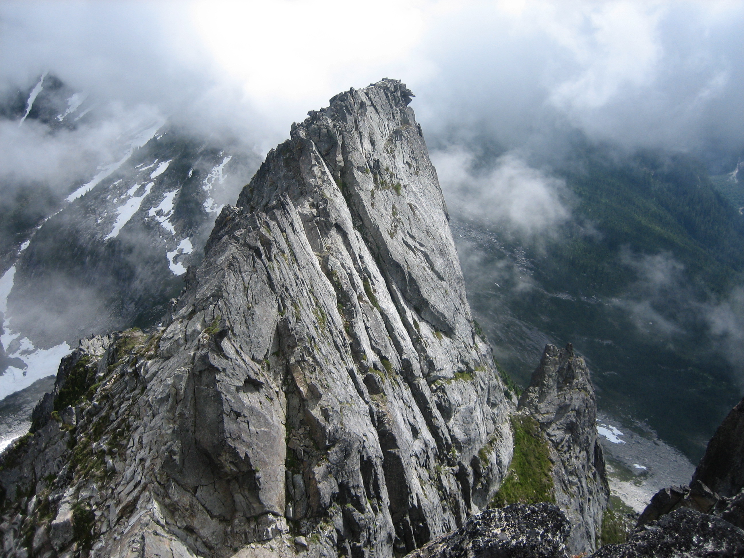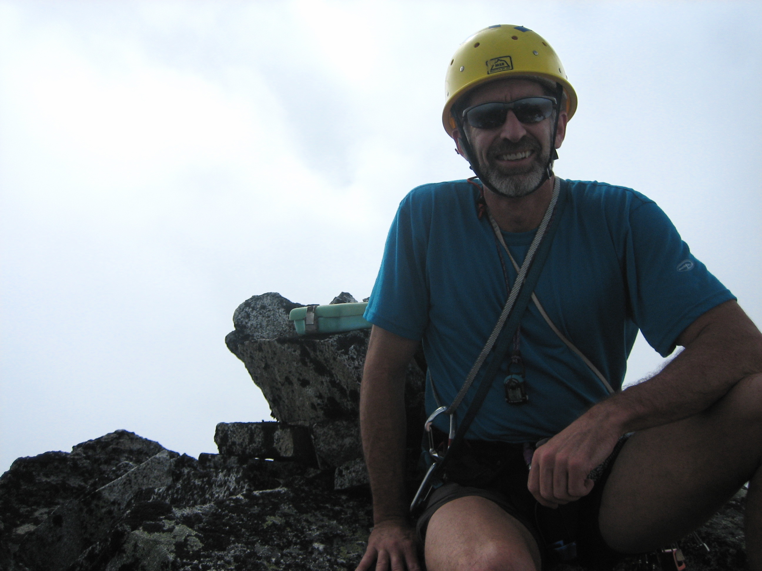 I quickly roped up and led the enjoyable Class 5.0 dihedral to the sharp crest. From there, we easily scrambled to the summit, arriving at 3:40pm (9.3 hours from camp).