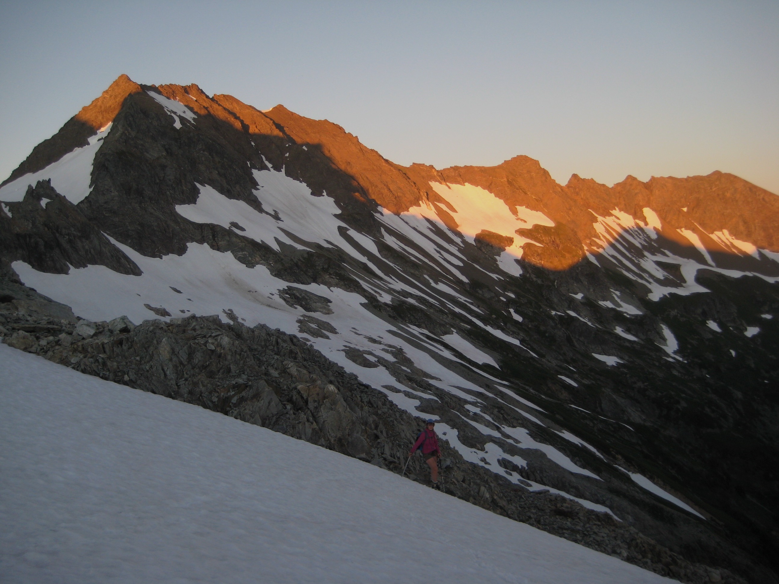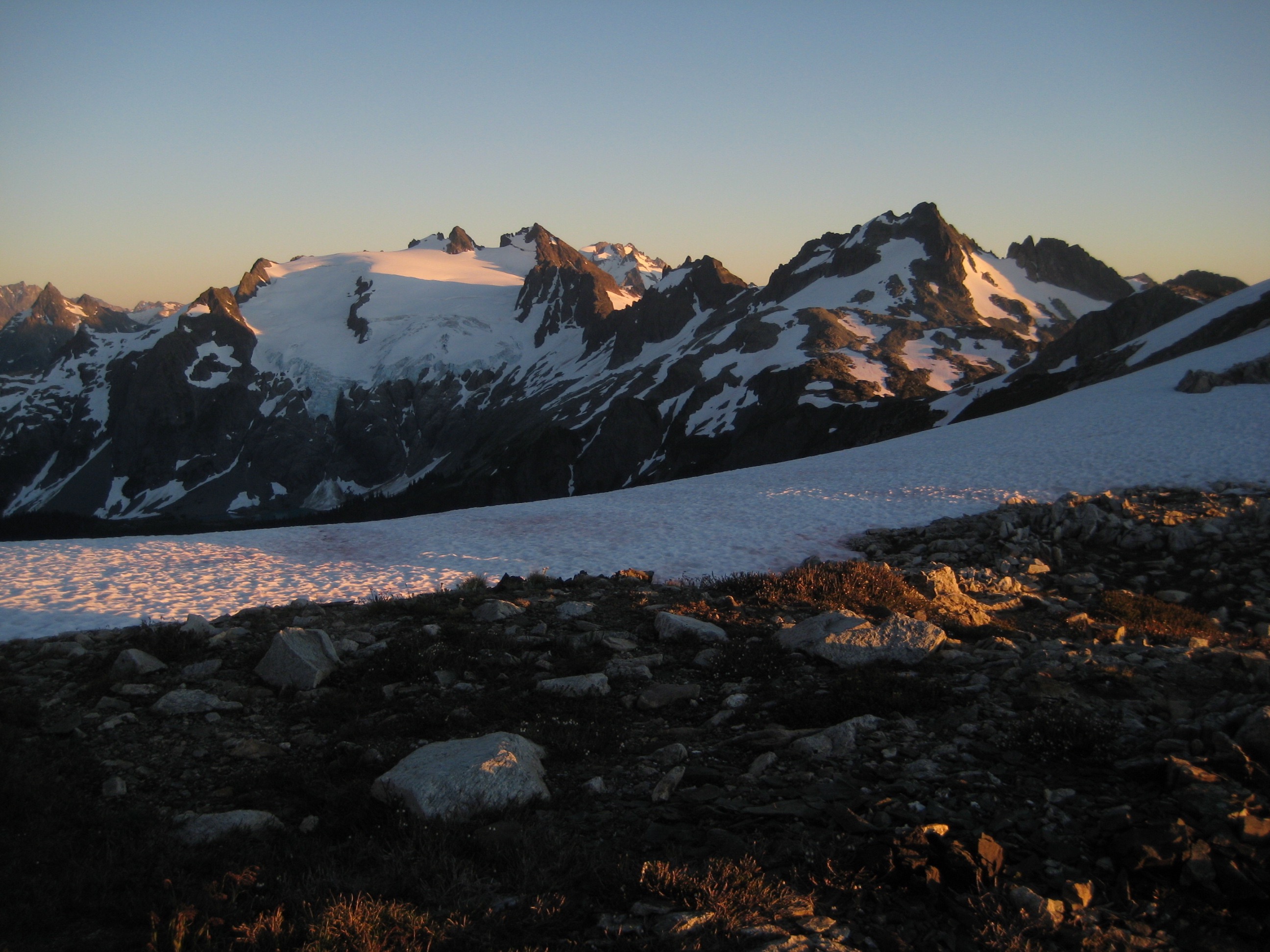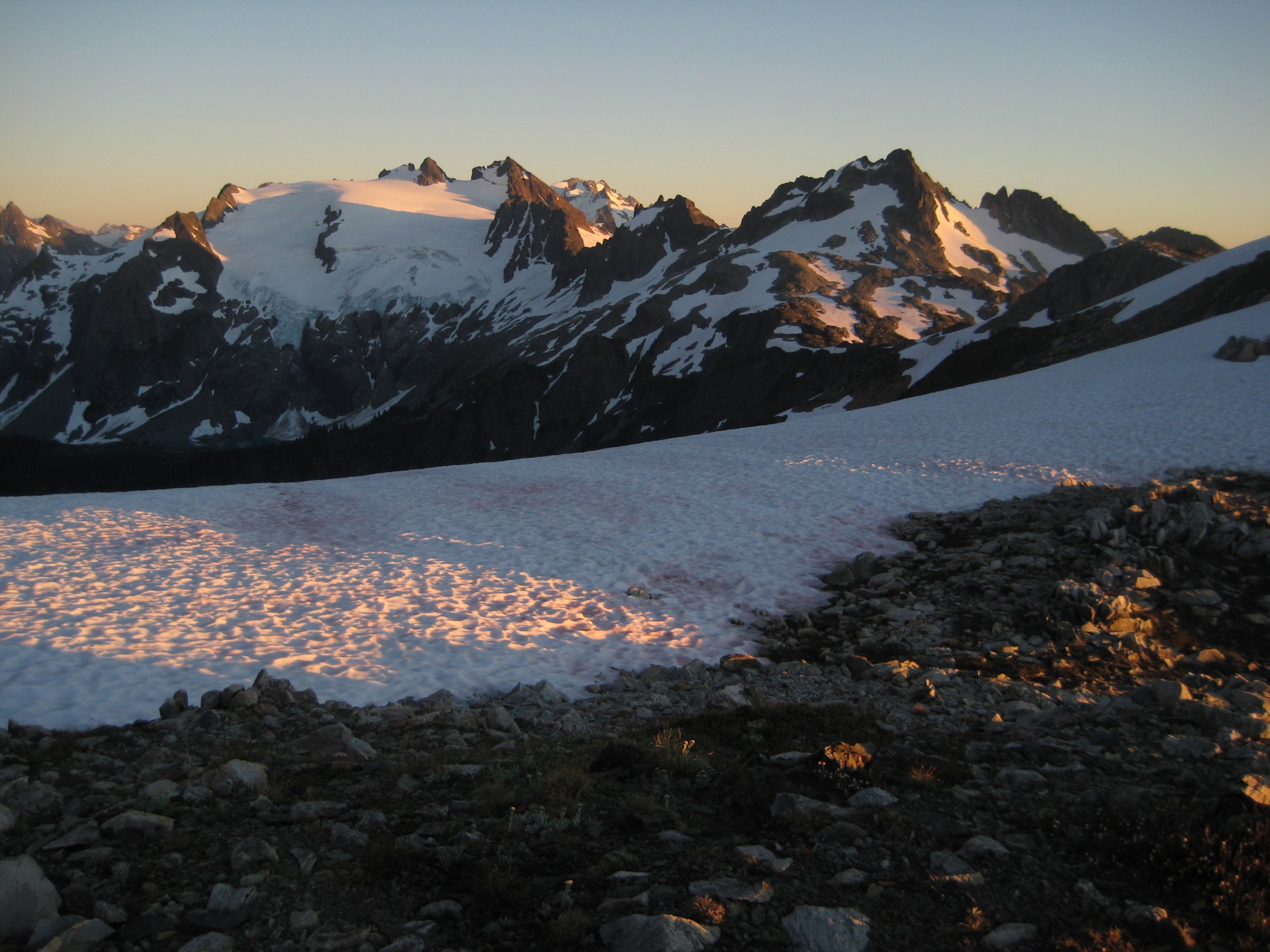 To the northeast, Spider Mtn glowed with red-orange alpenglow.