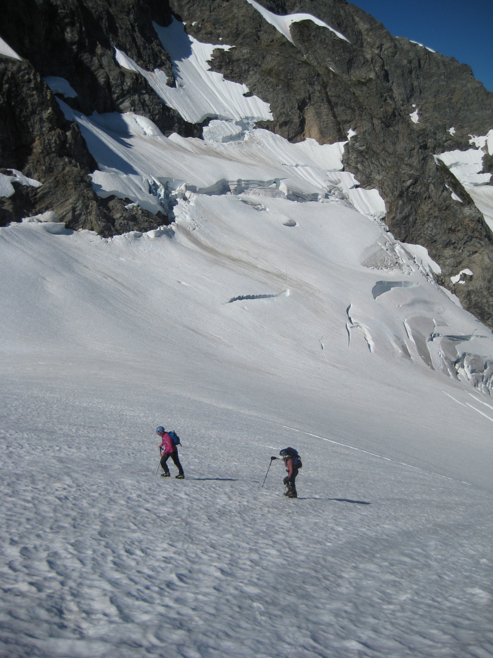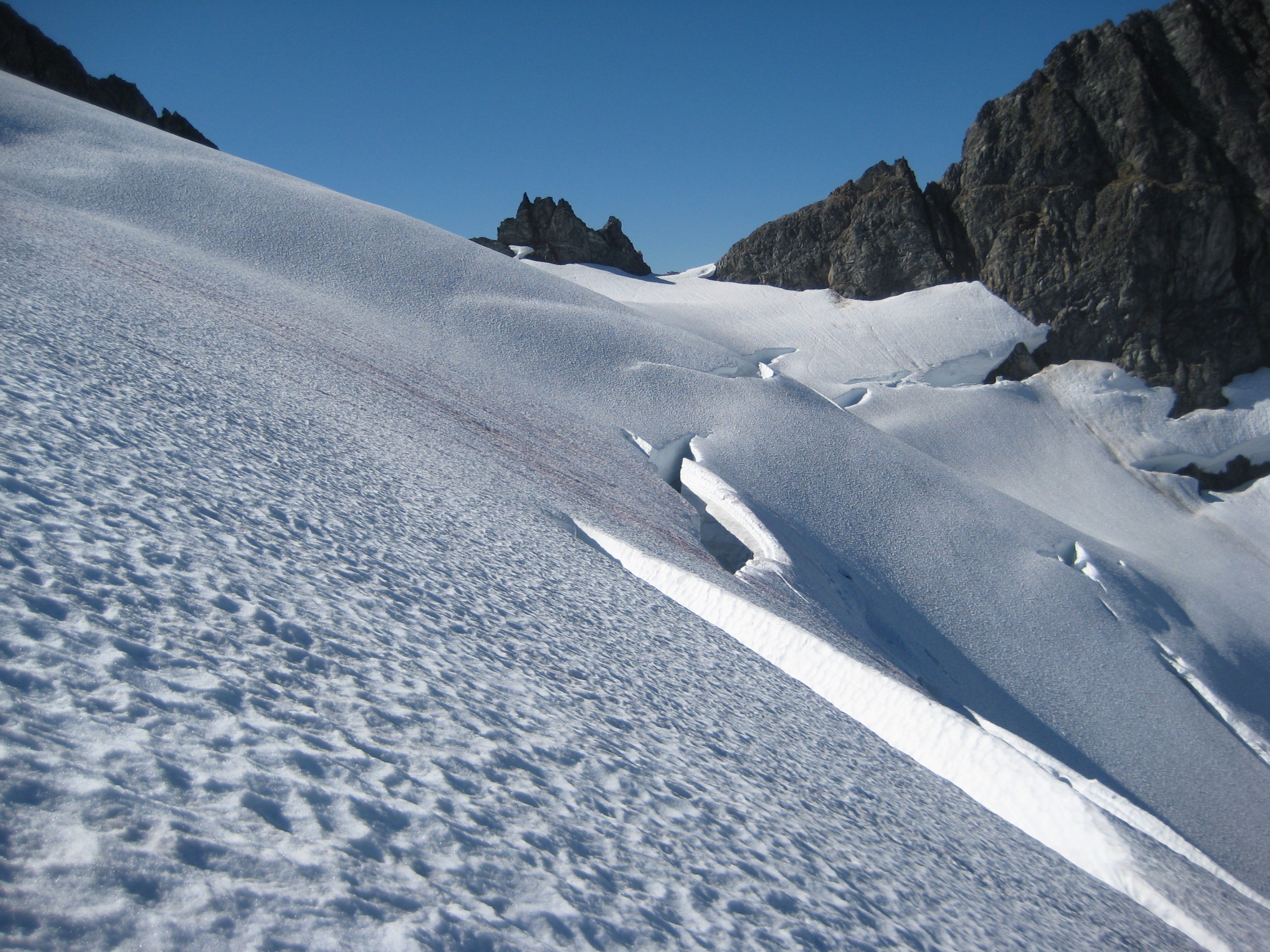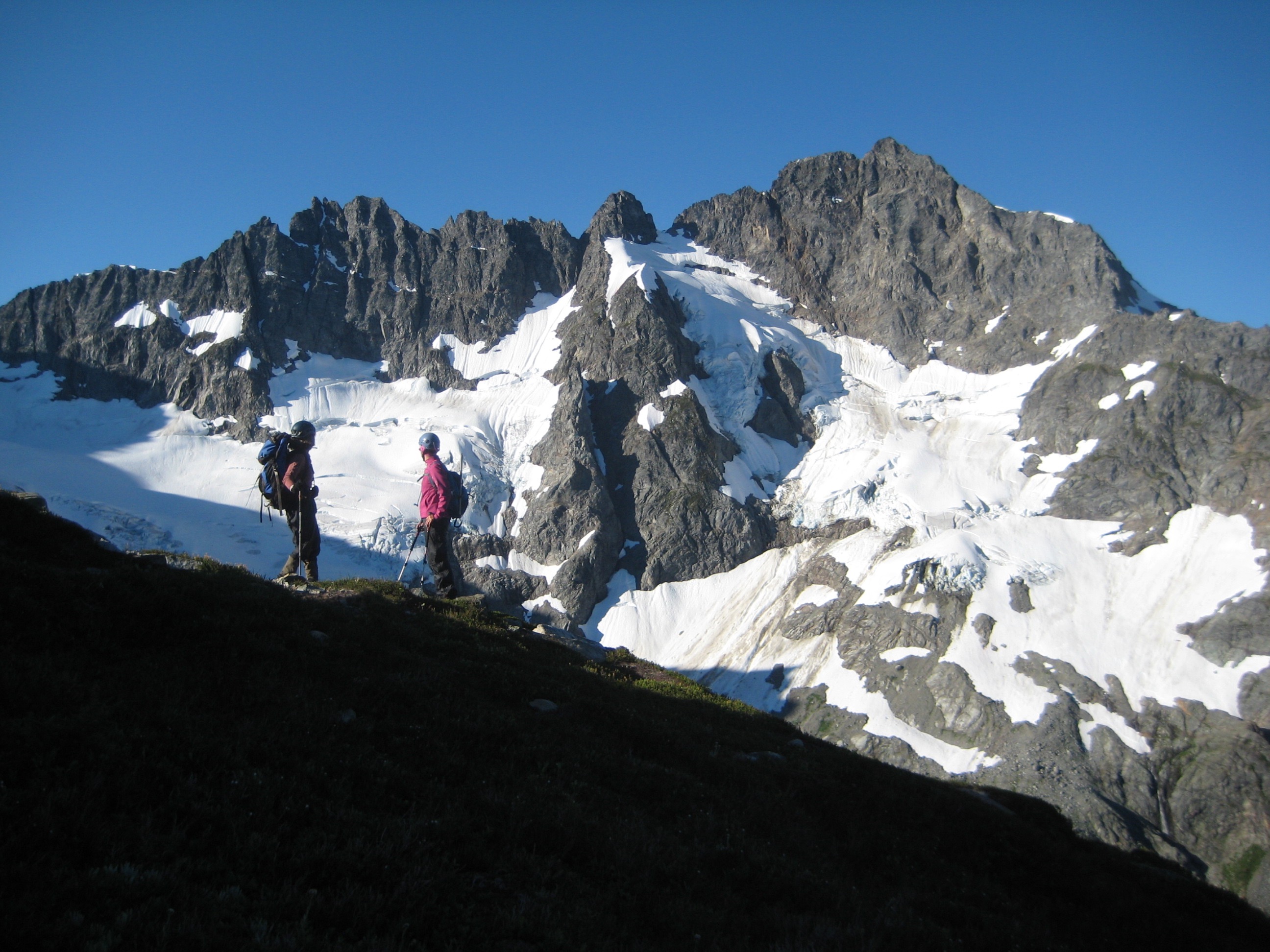 Sidetrip: Red Ledges & Middle Cascade Glacier & Spider–Formidable Col & South Formidable Saddle (trail hike & rock scramble & snow climb)
