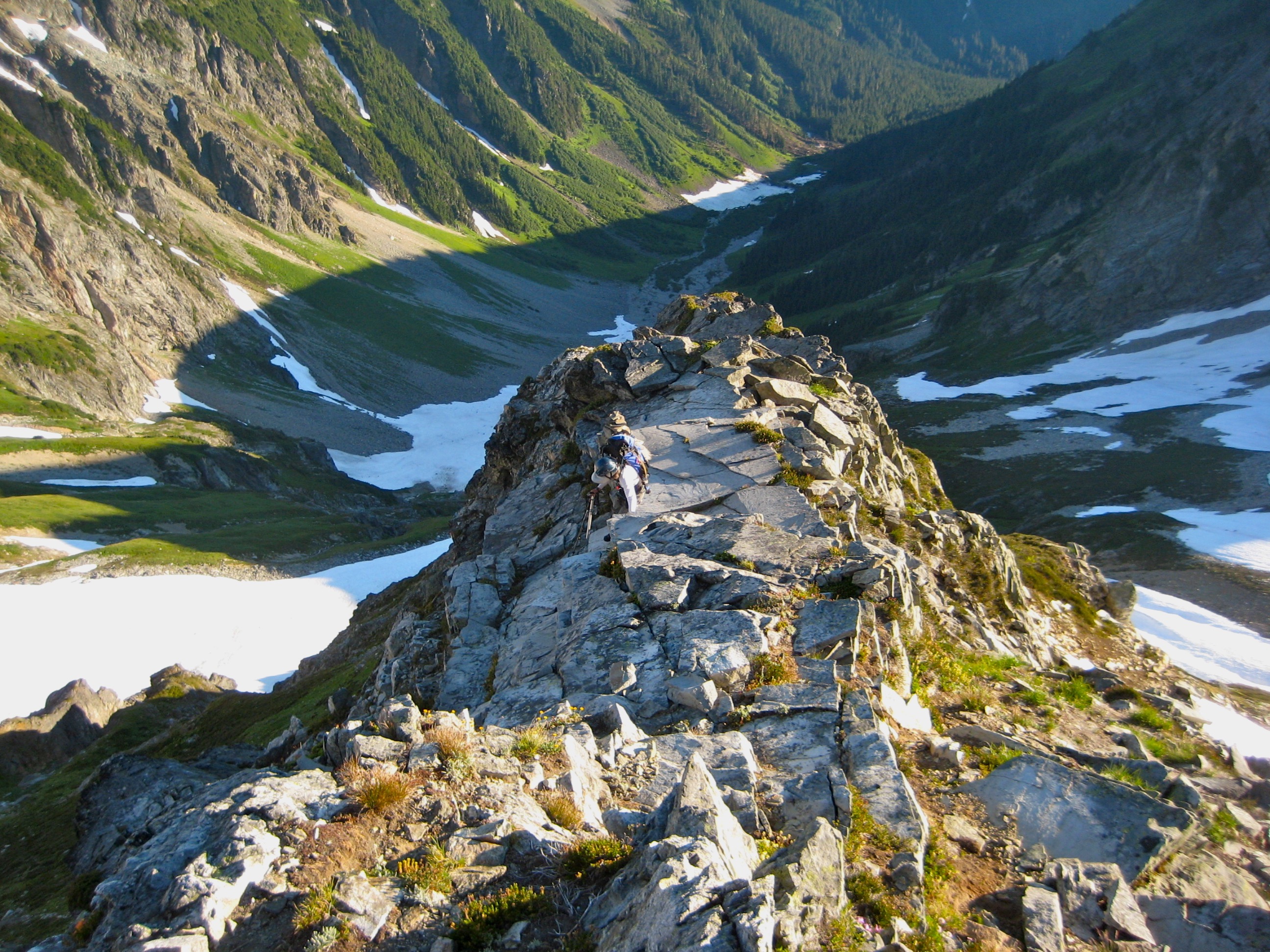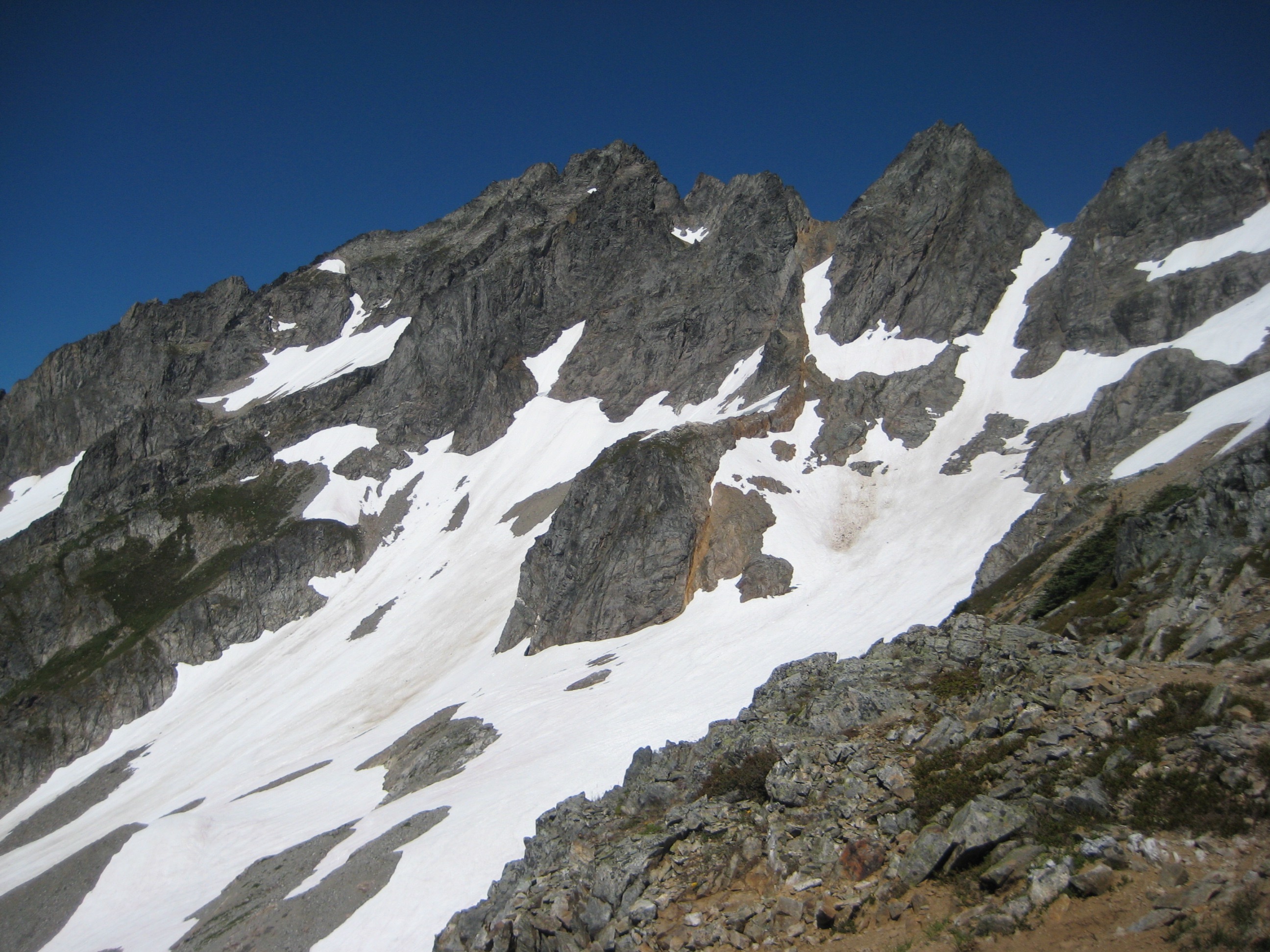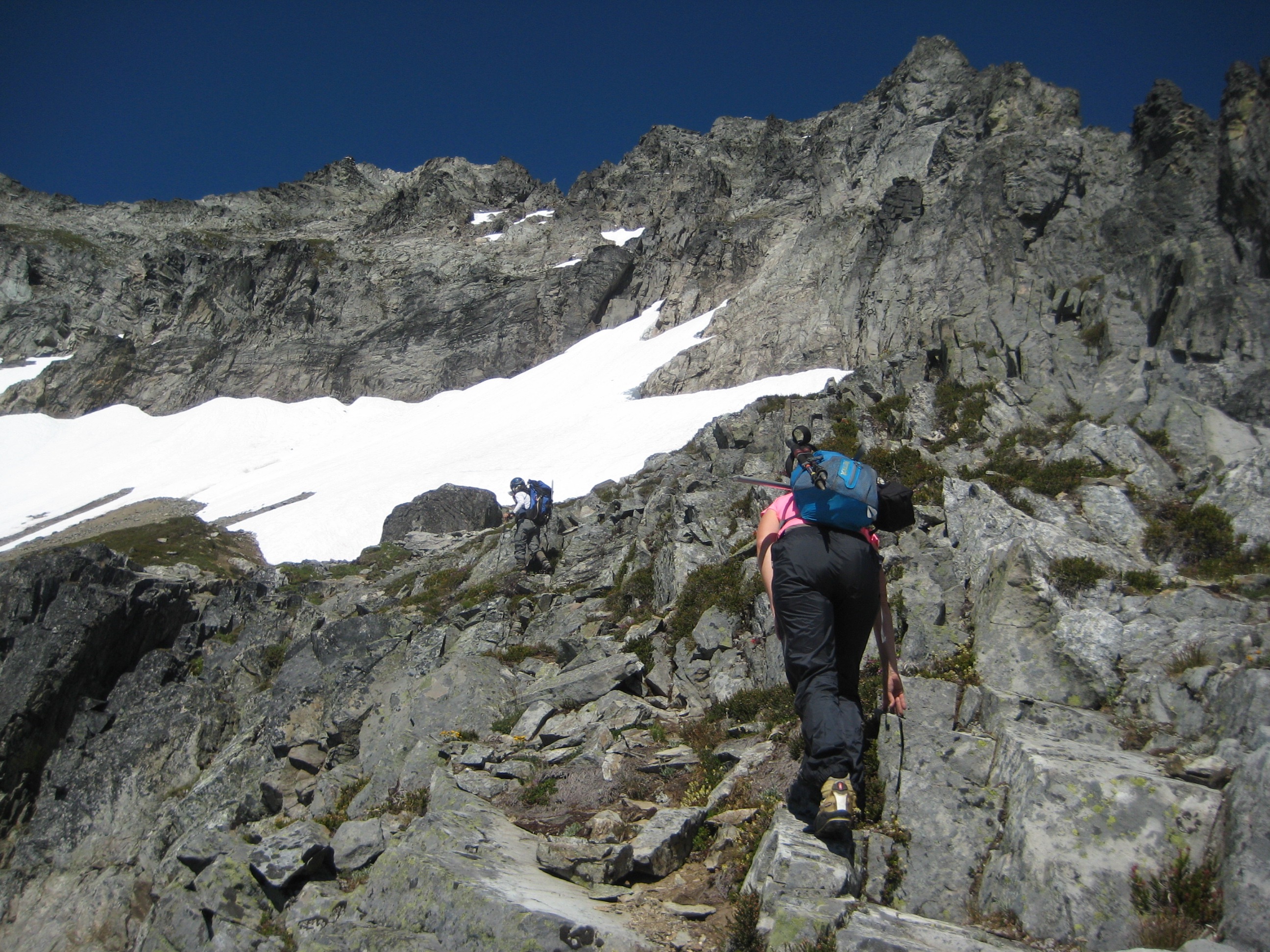 Sidetrip: Red Ledges & Middle Cascade Glacier & Spider–Formidable Col & South Formidable Saddle (trail hike & rock scramble & snow climb)