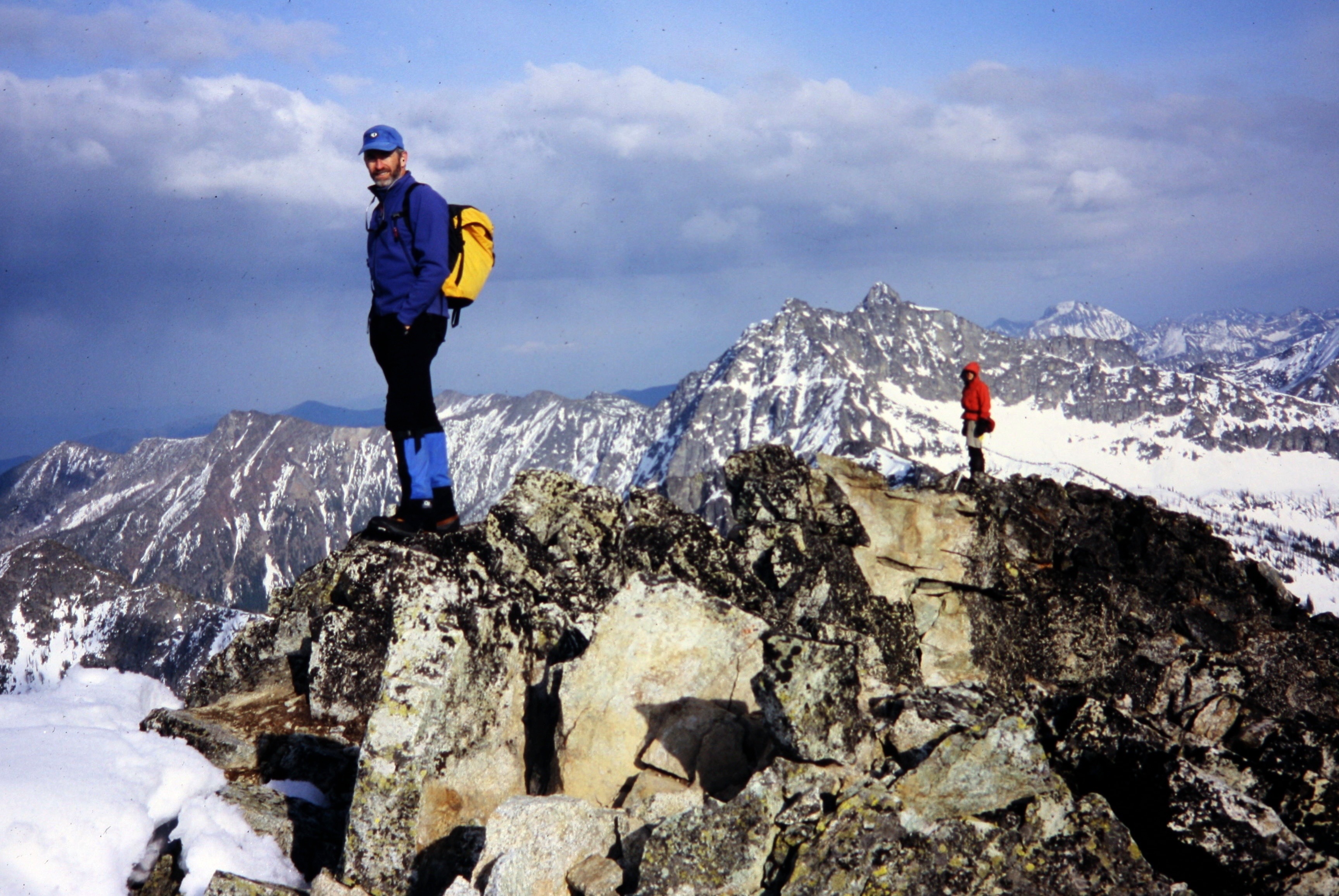 The narrow summit ridge dropped off breathtakingly on three sides and offered splendid views ranging from Mt. Buckner in the northwest to Gardner Mountain in the northeast.