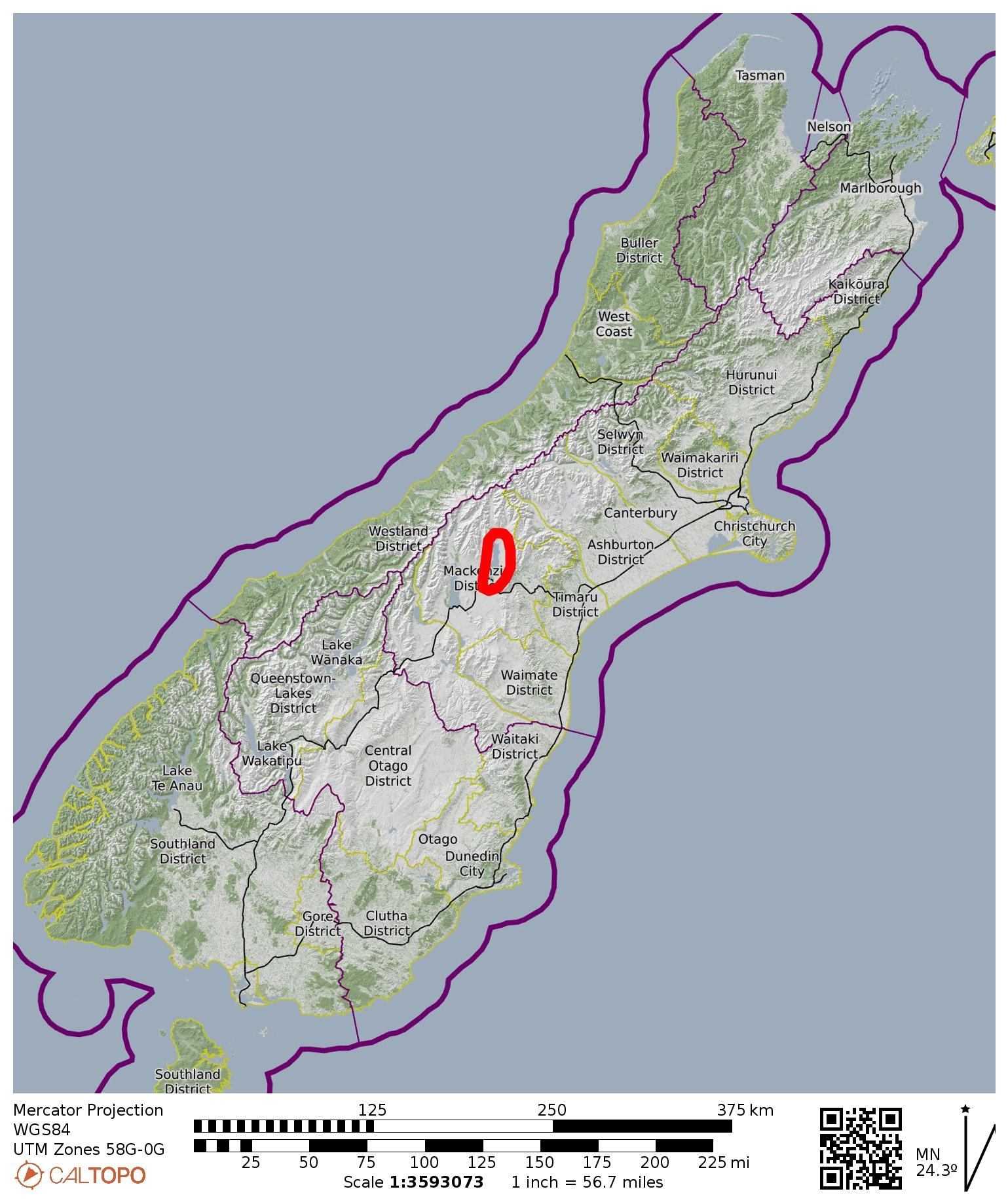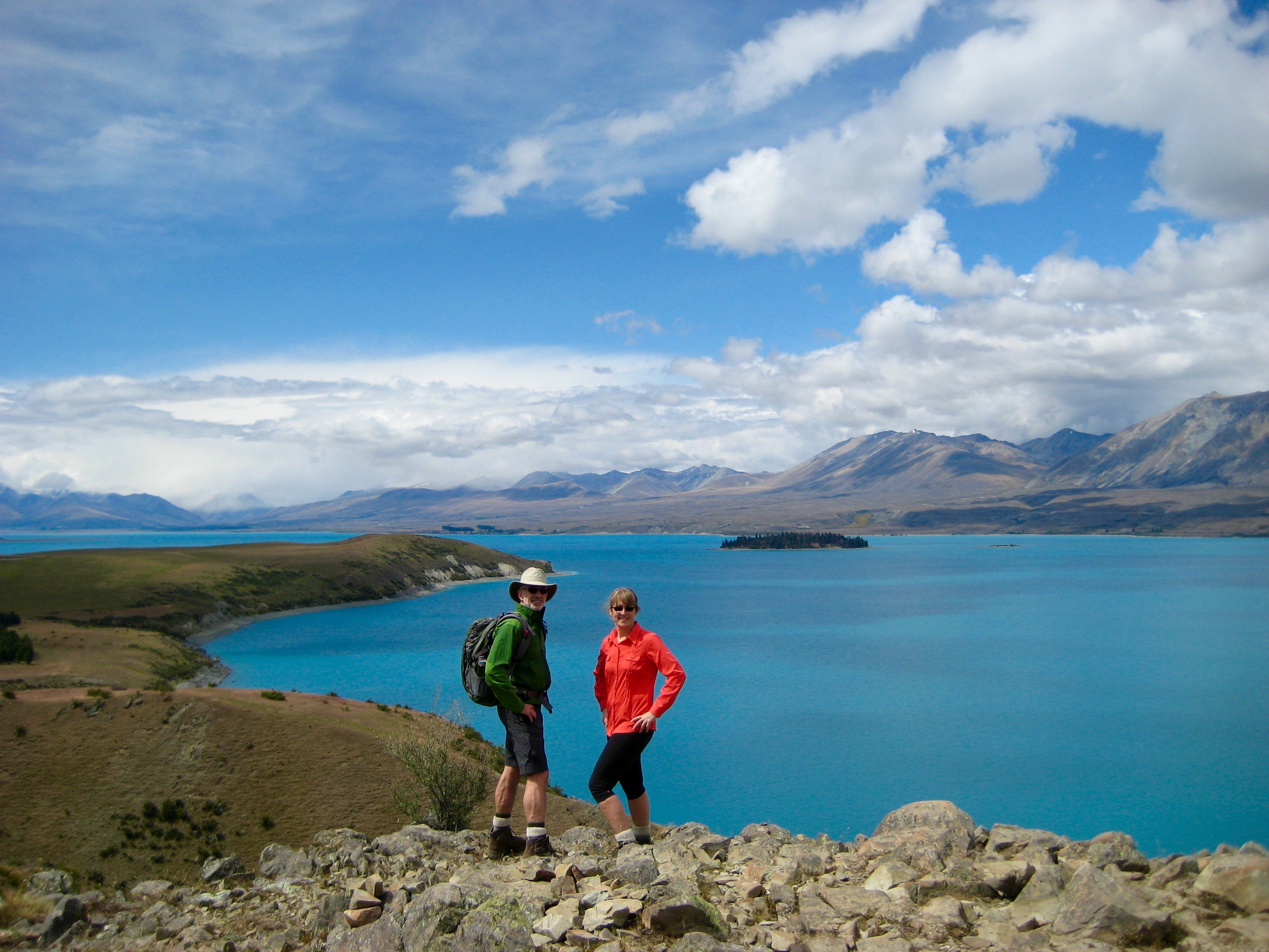 Eileen, Brooke, Callum, and I started our New Zealand adventure vacation with a loop hike over the top of Mt. John in the Lake Tekapo Recreation Area. This area lies near the geographic center of the South Island.