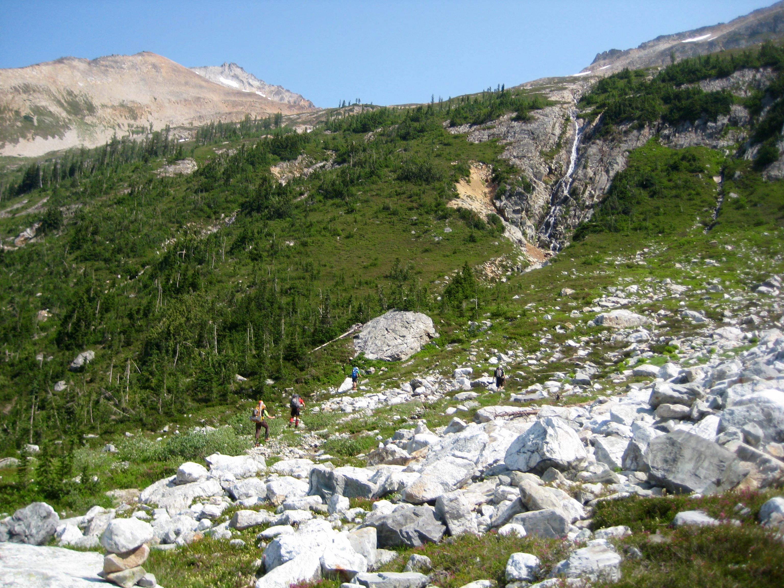 Once packed up, we began our 2-mile traverse back down to Park Creek Pass. The combination of blazing sun, hot air, annoying gnats, and aggressive blackflies made this an unpleasant afternoon task.
