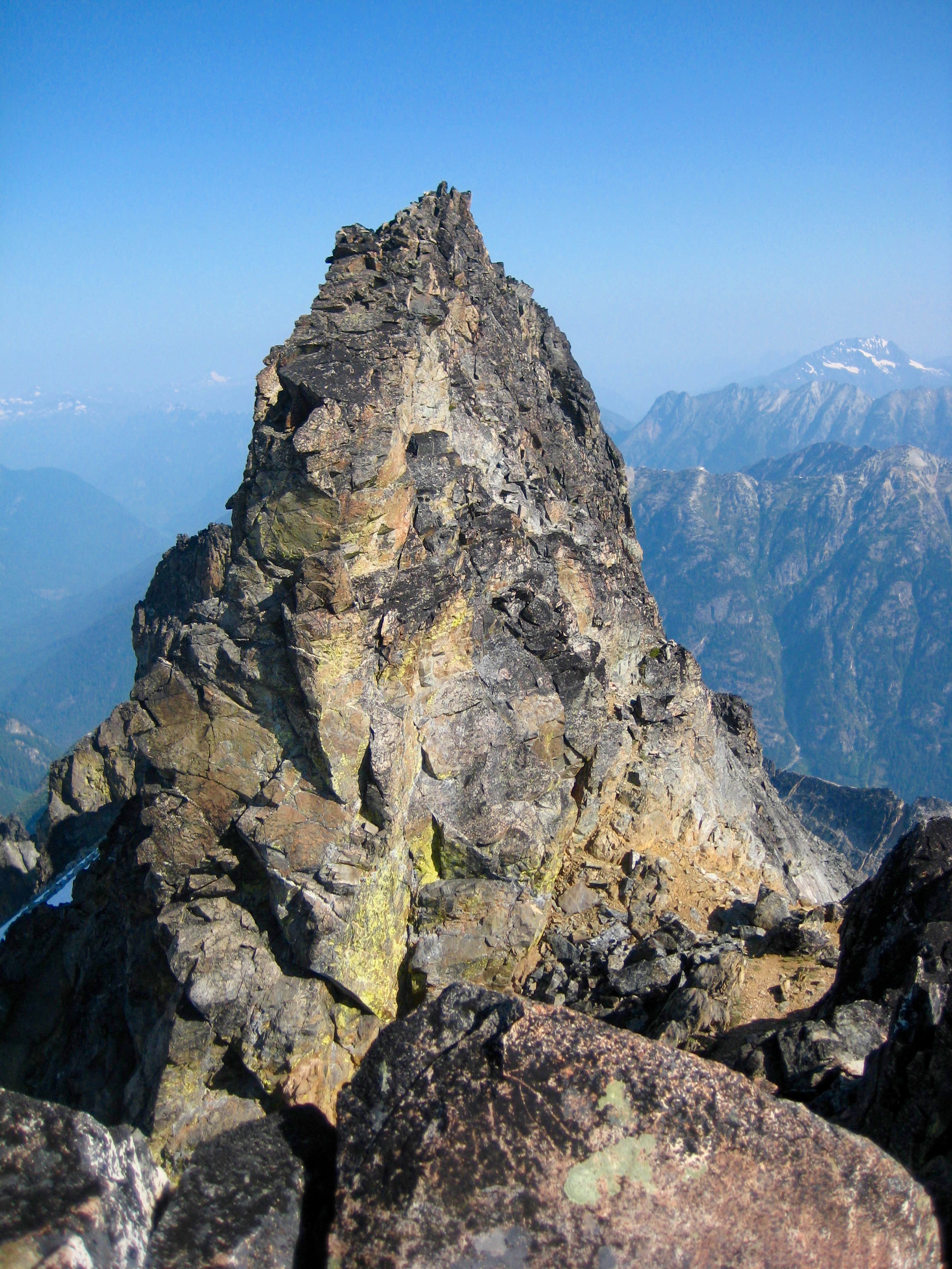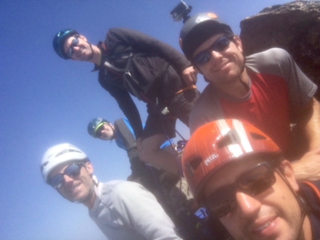 One long Class 3-4 rock pitch ended at the tiny summit, which we all reached just after 10:00am (3.4 hours + 1200 feet from high camp).