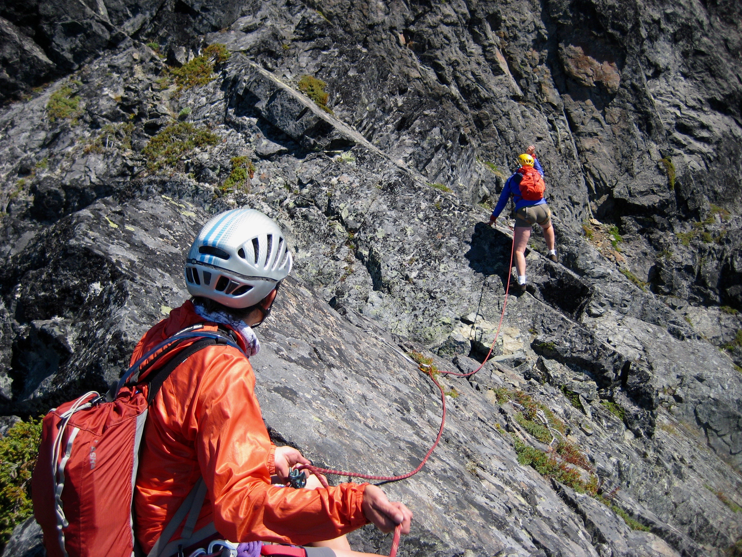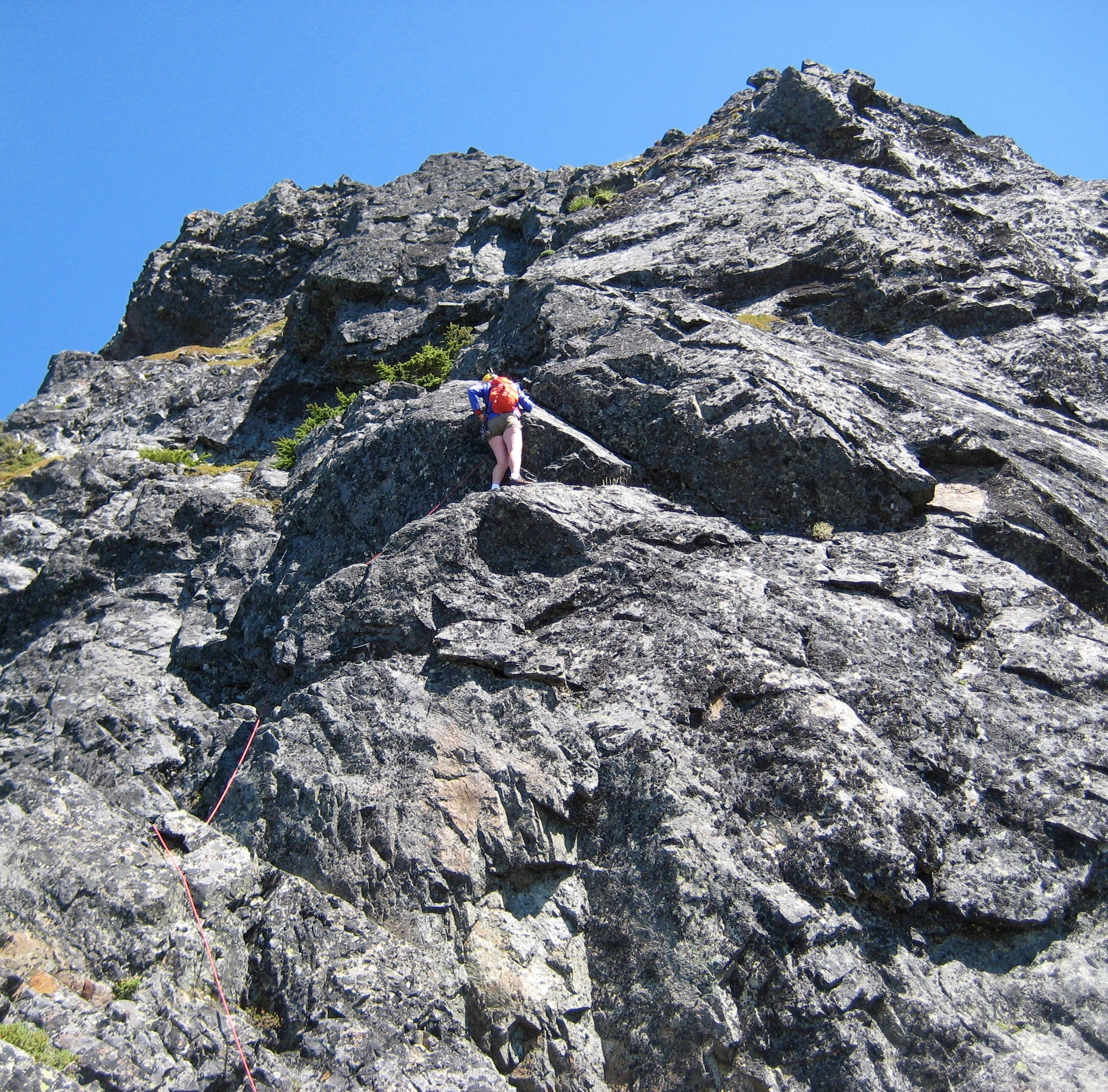 rock climbers on steep rocky pitch on Mt Thomson in the Snoqualmie Mountains