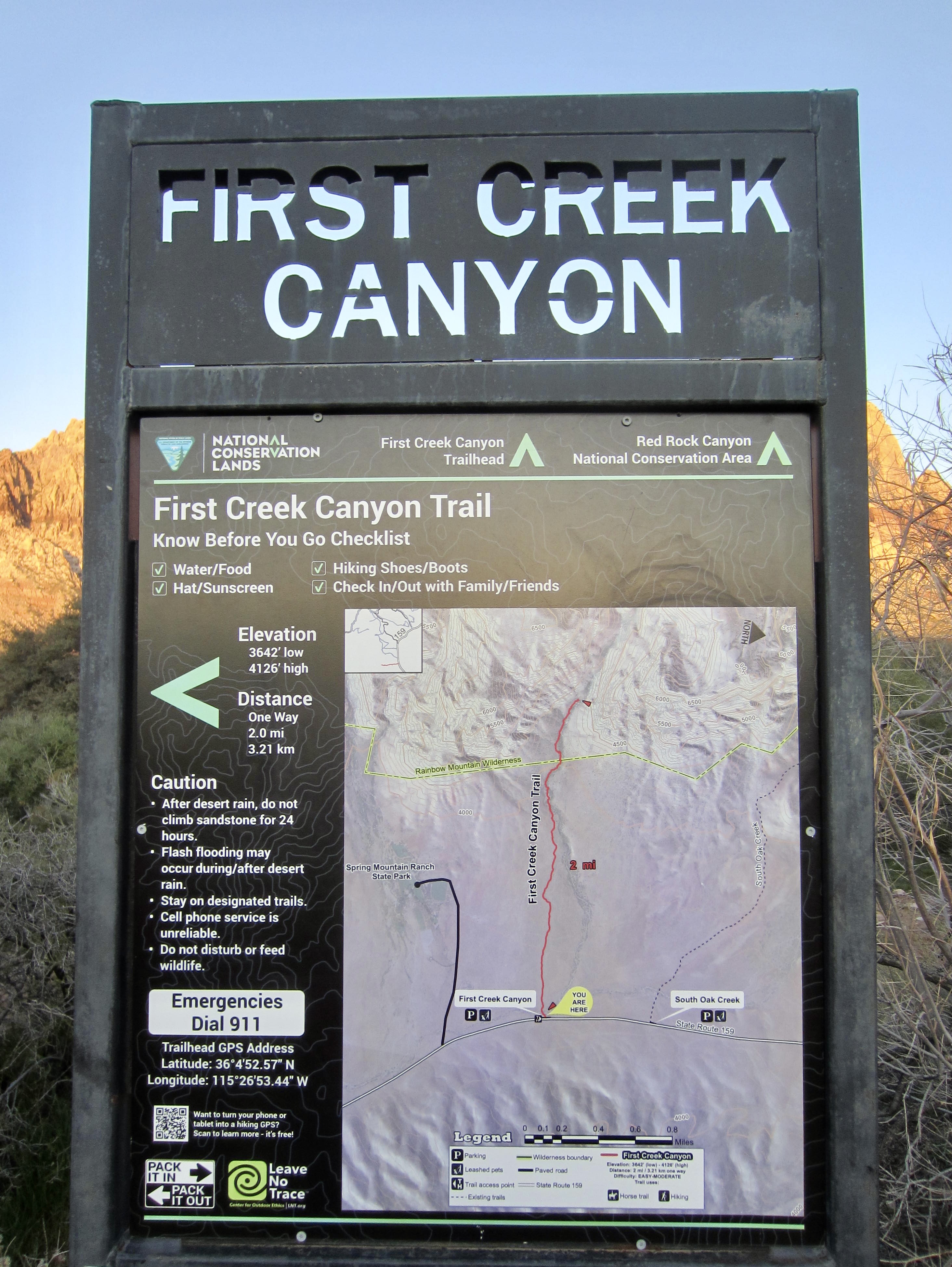 Starting & Ending Point: First Creek Canyon Trailhead on Highway 159 (Elev. 3650 feet)