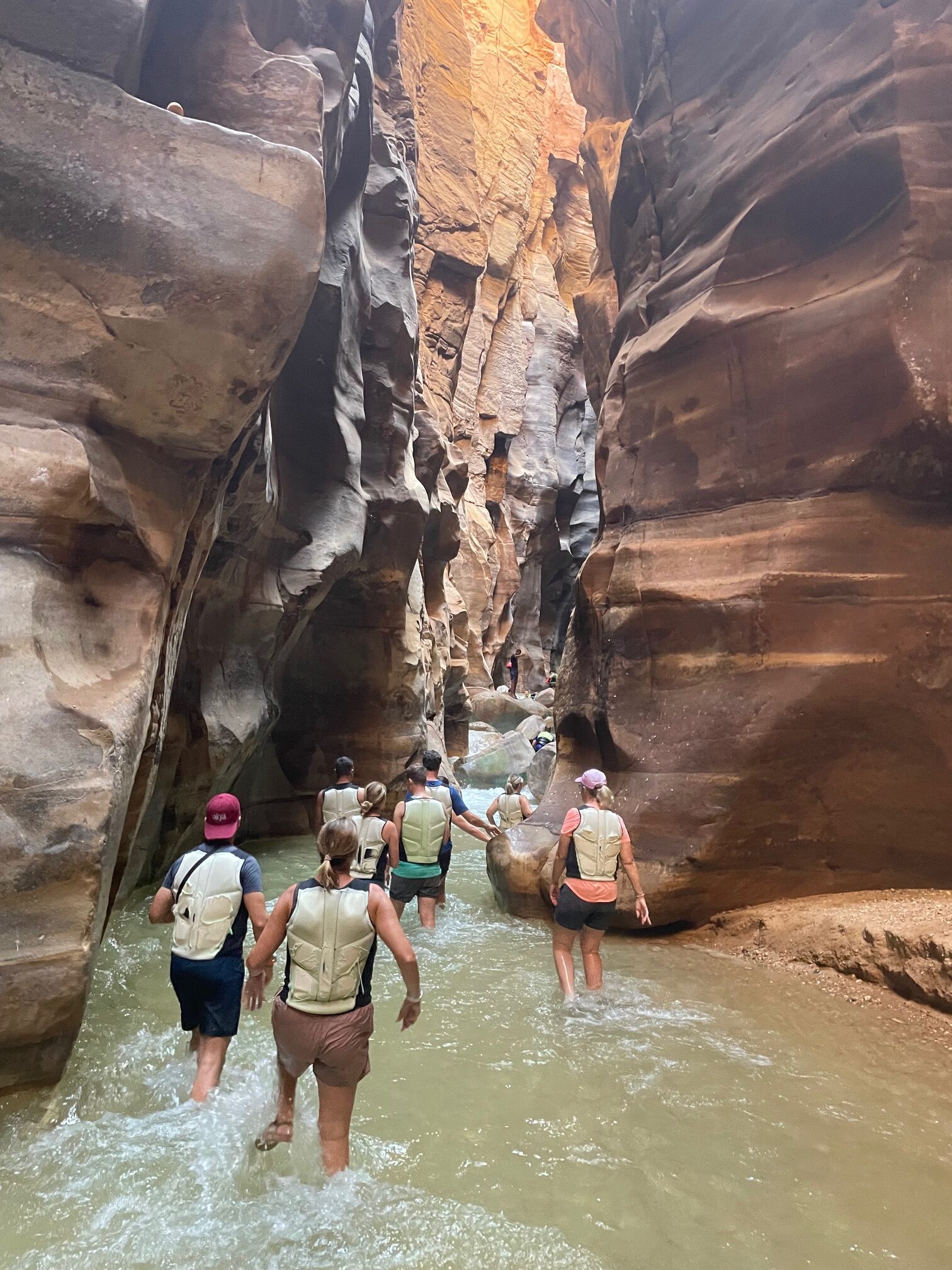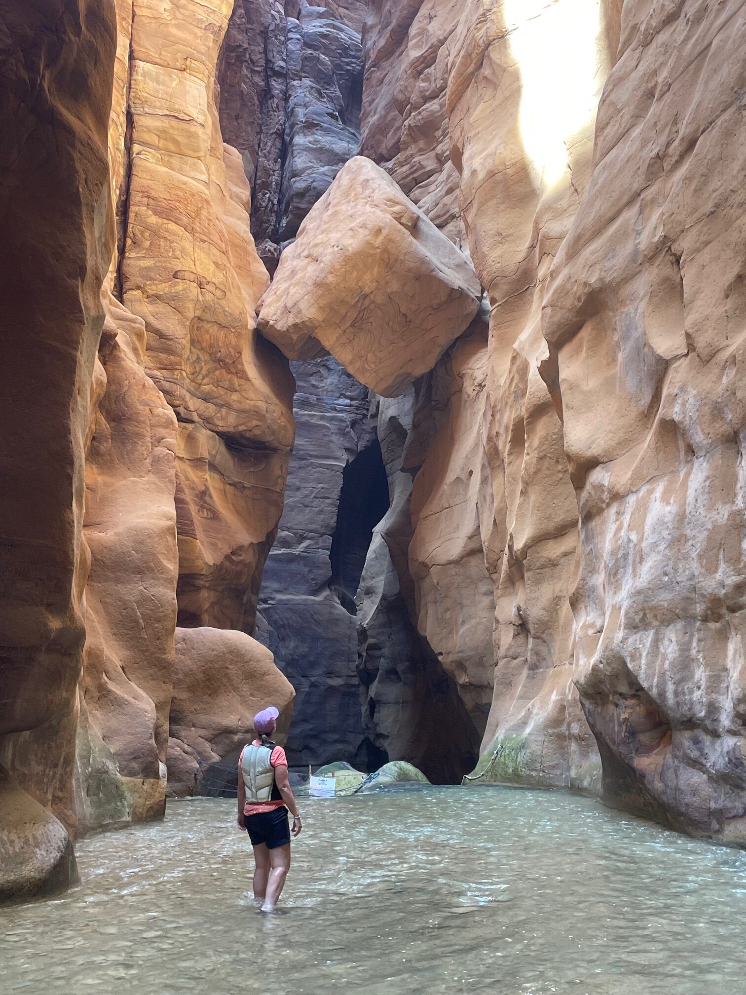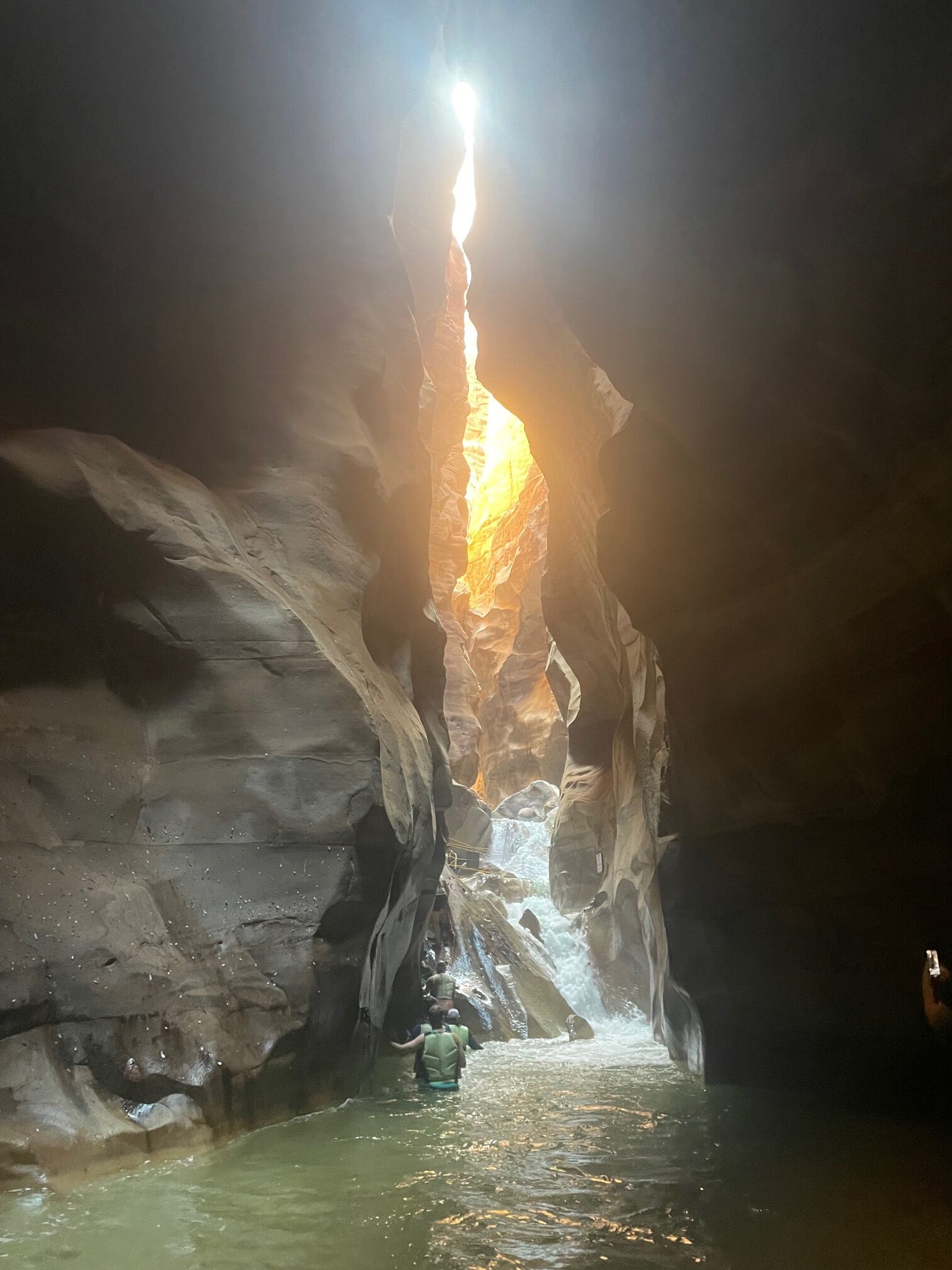 Our trek began as a carefree wade up a shallow creek, but the water became deeper and the current became swifter as we progressed into the canyon. Thankfully, the water was pleasantly warm.
