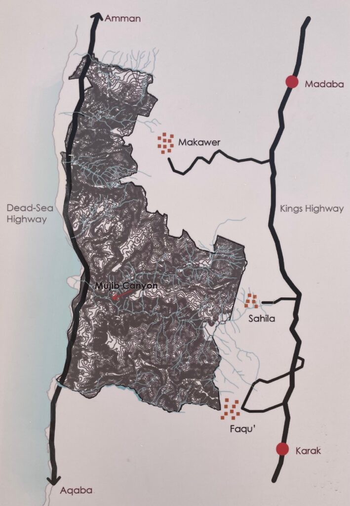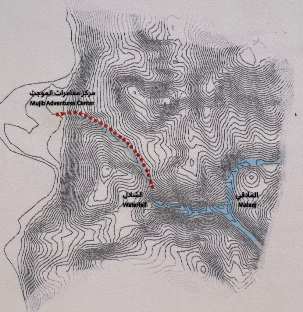 Starting & Ending Point: Mujib Adventures Center on Dead Sea Highway (Elev. -1280 feet / -390 meters)