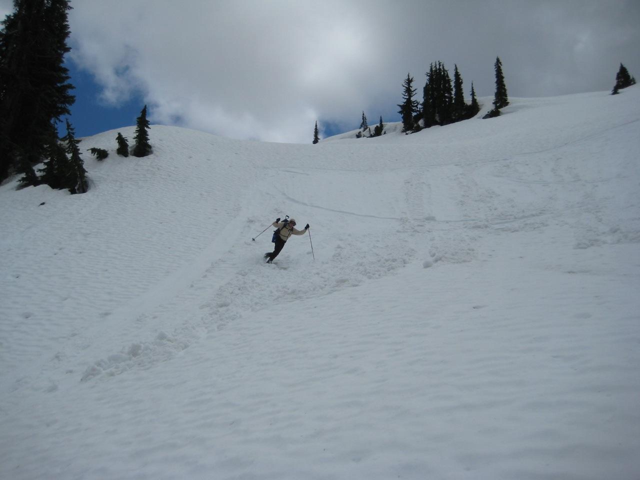 - Chris skiing down from Dewey Basin
