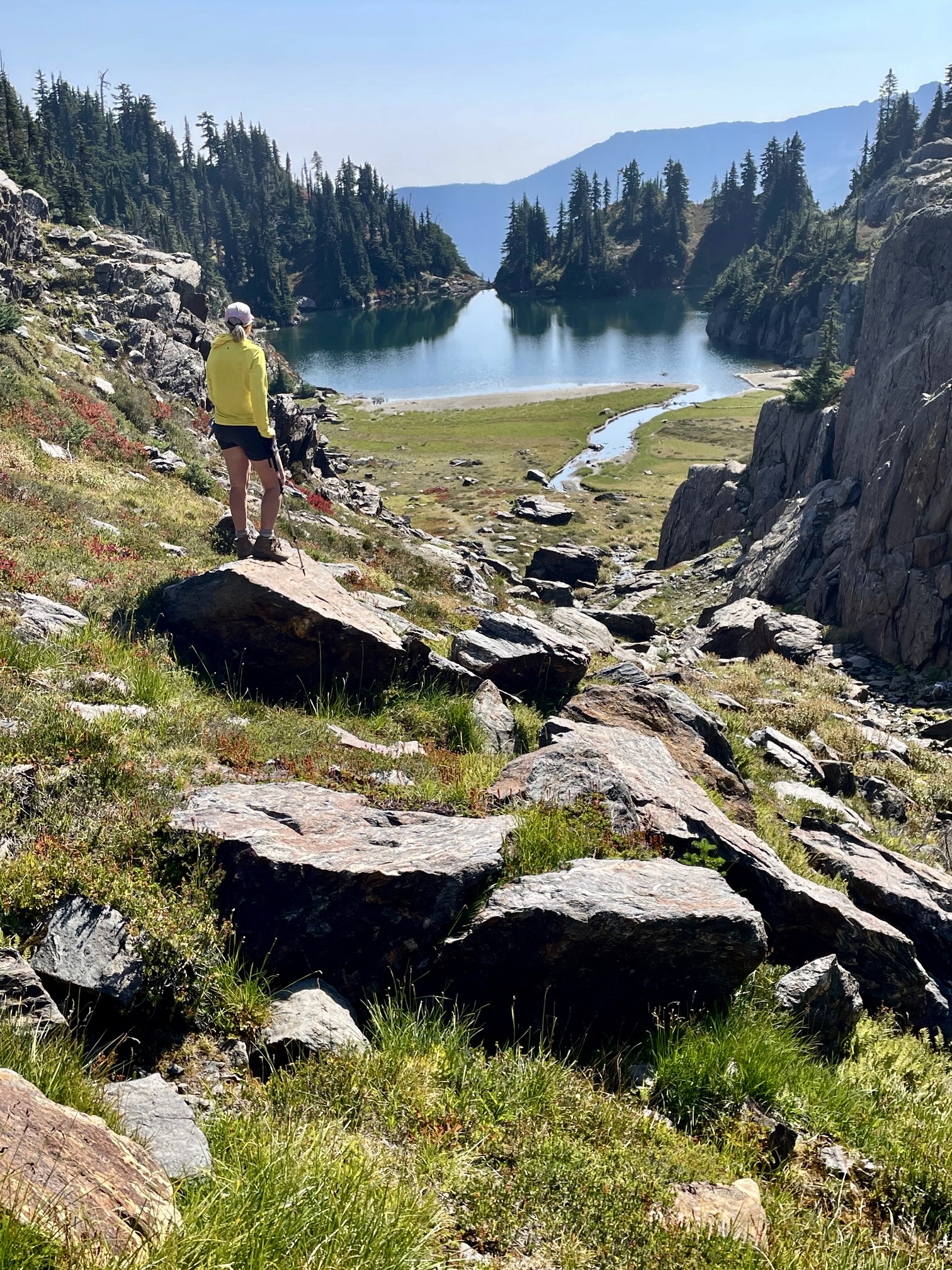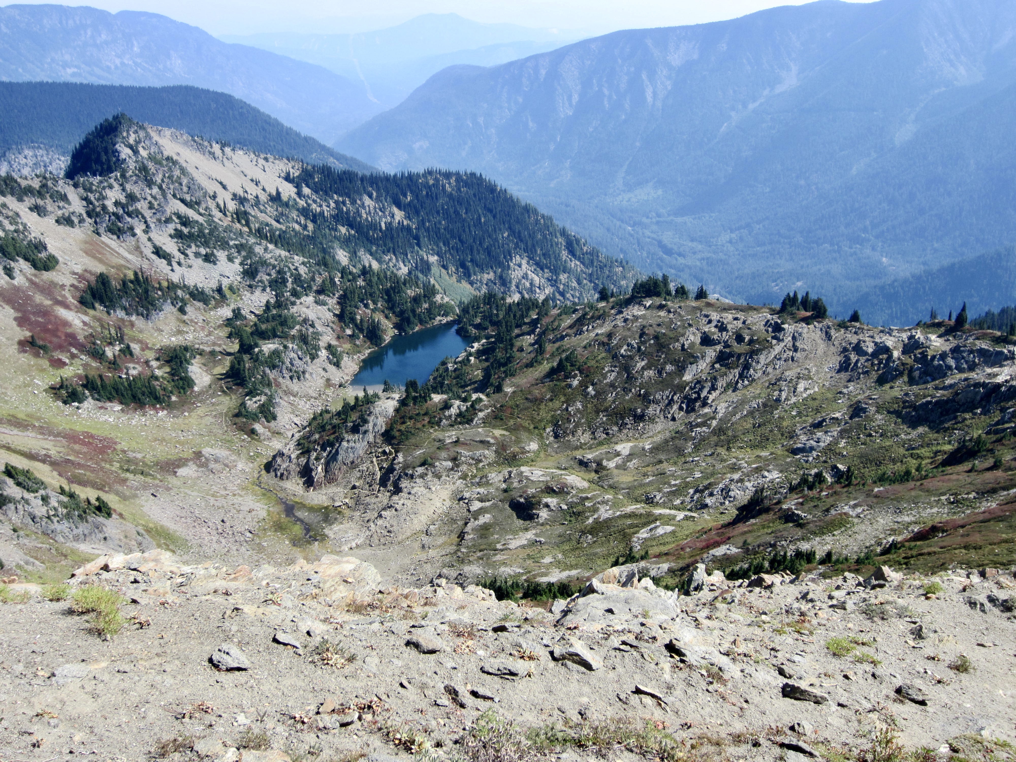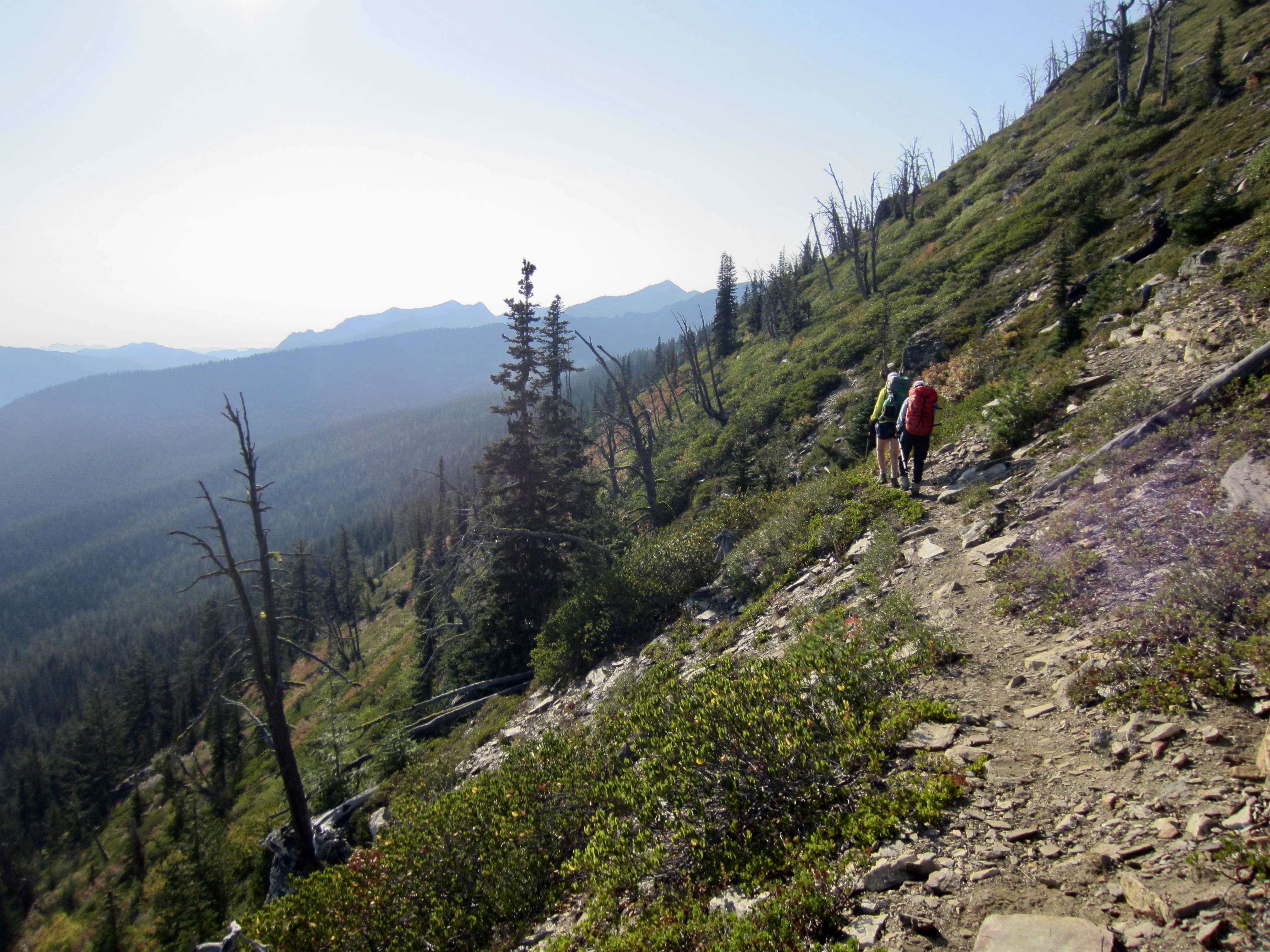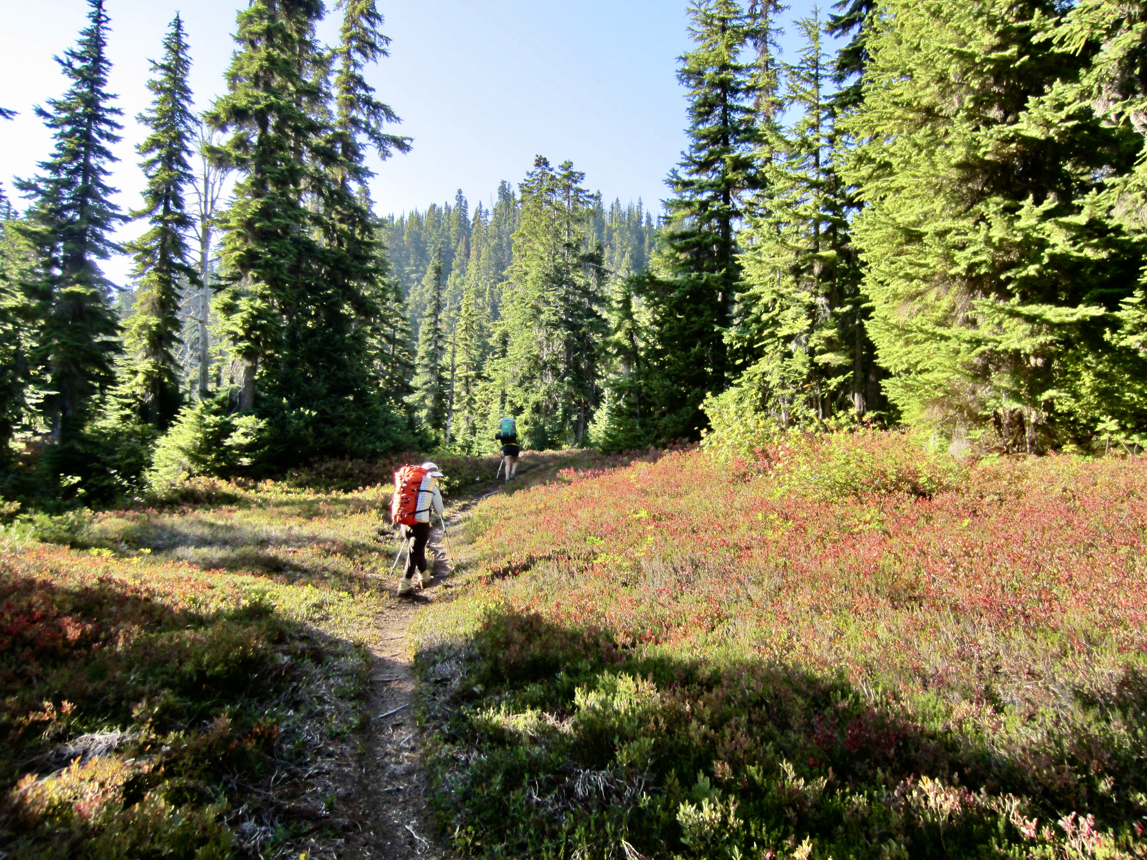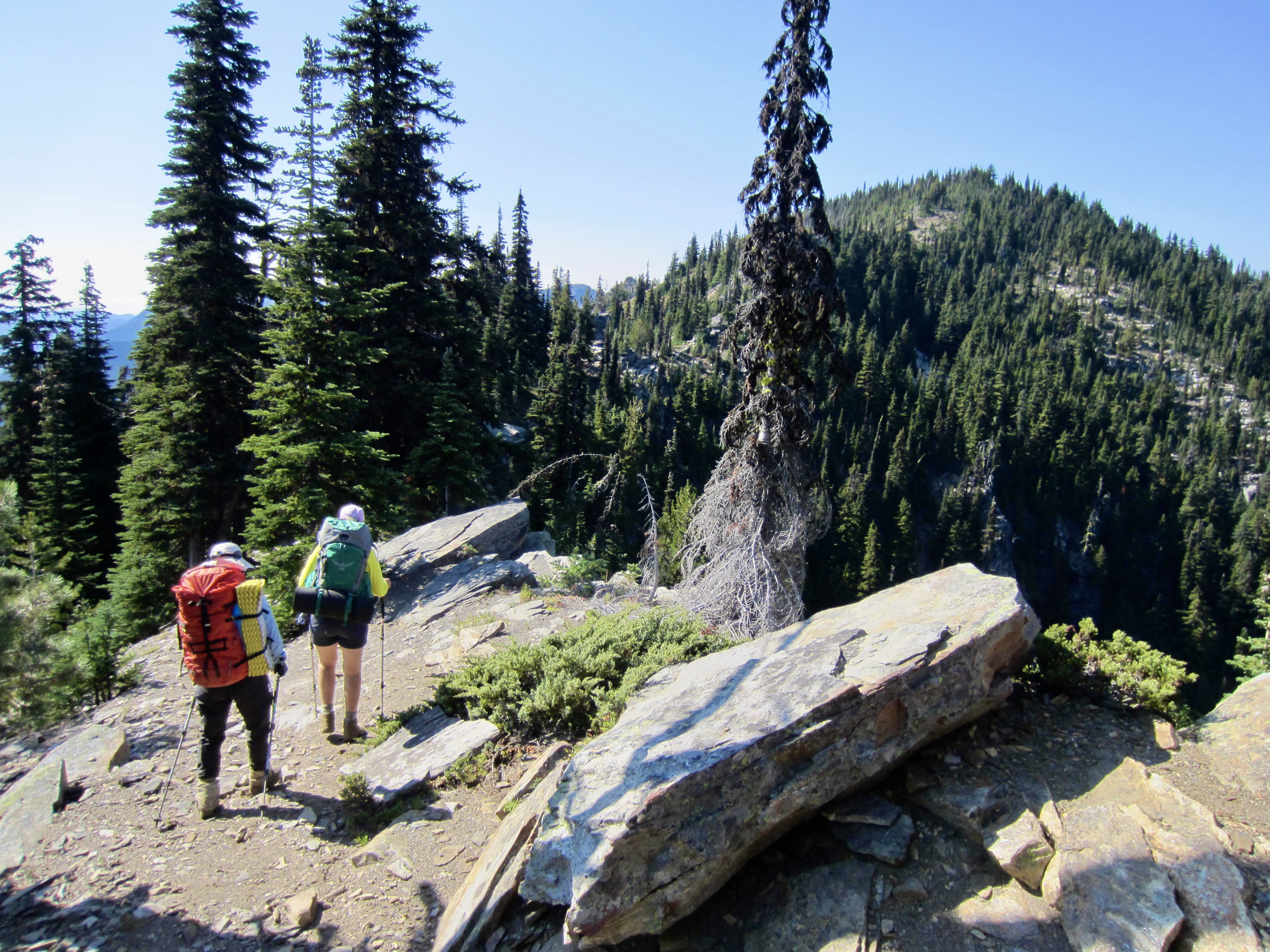 Following an unseasonably warm night, we were back on the trail at 7:00am. Our entire morning involved a short descent to a junction, then a series of four 600-foot ascents to various creeks or lakes or saddles.