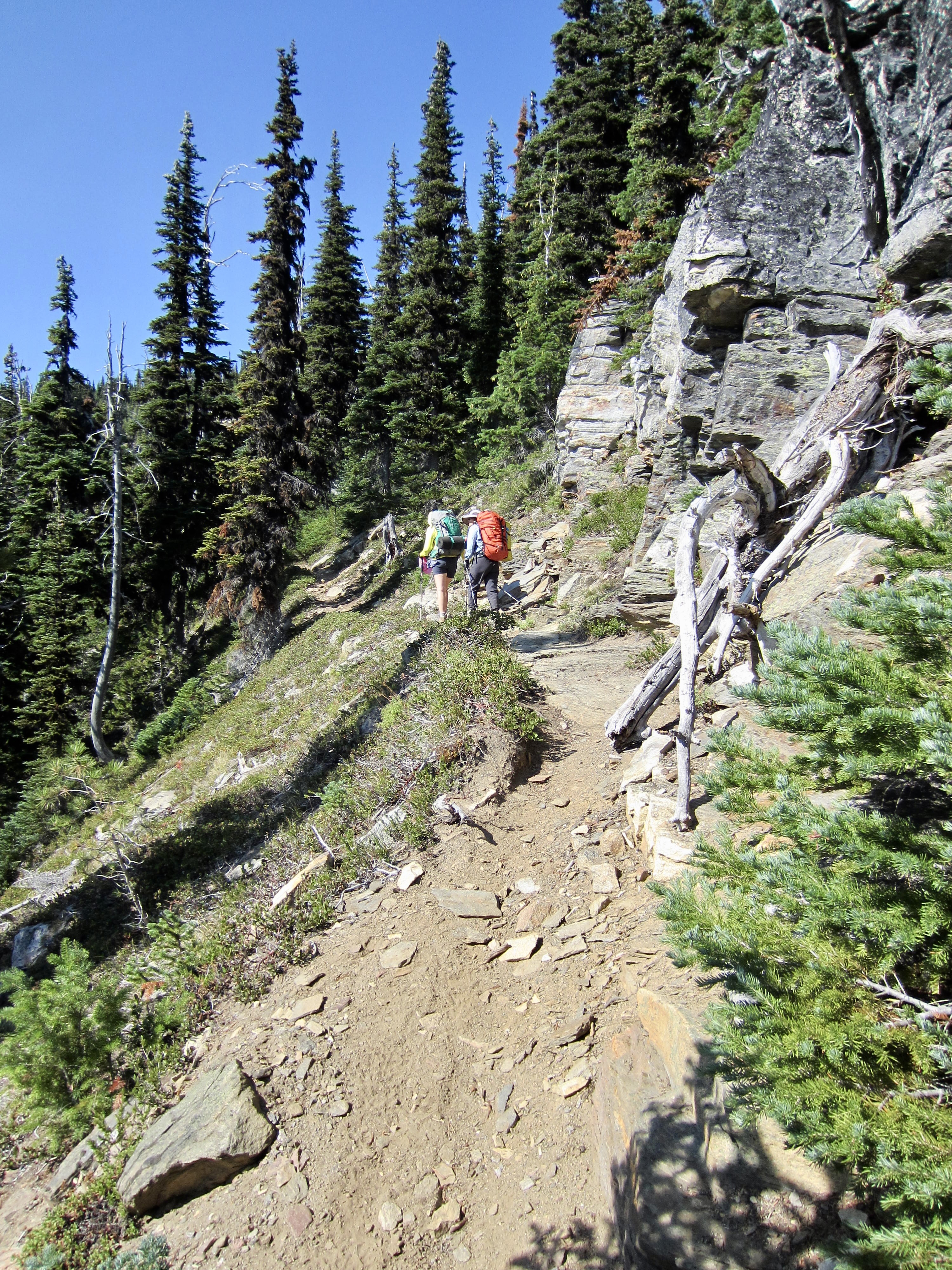 After dropping off a vehicle at Rainy Pass on Smith Brook Road, we drove over to the Round Mountain Trailhead on Butcher Creek Road and started hiking in late morning. Our pace was unusually slow due to a variety of nagging injuries, but our schedule was equally relaxed on this warm Friday.
