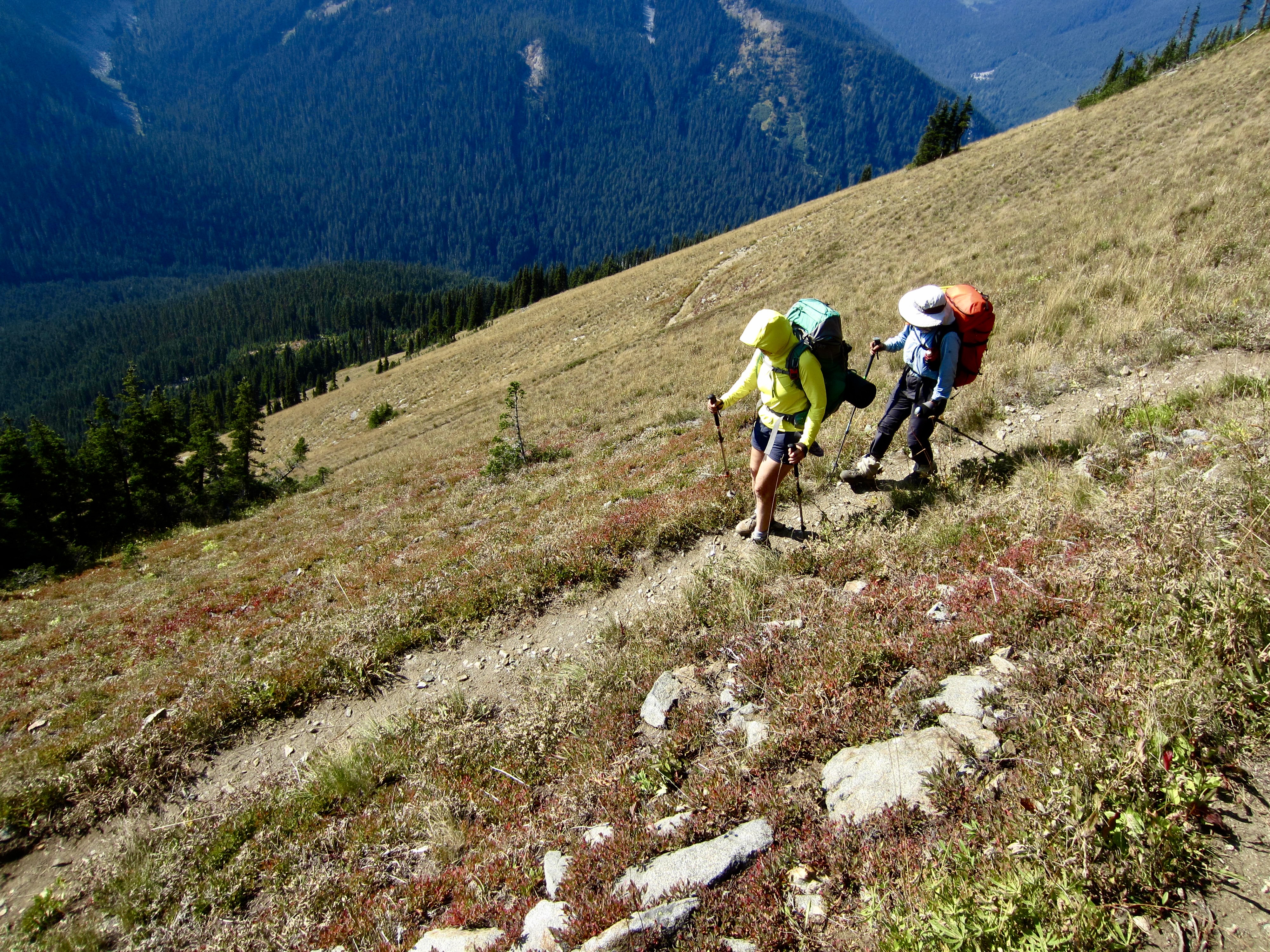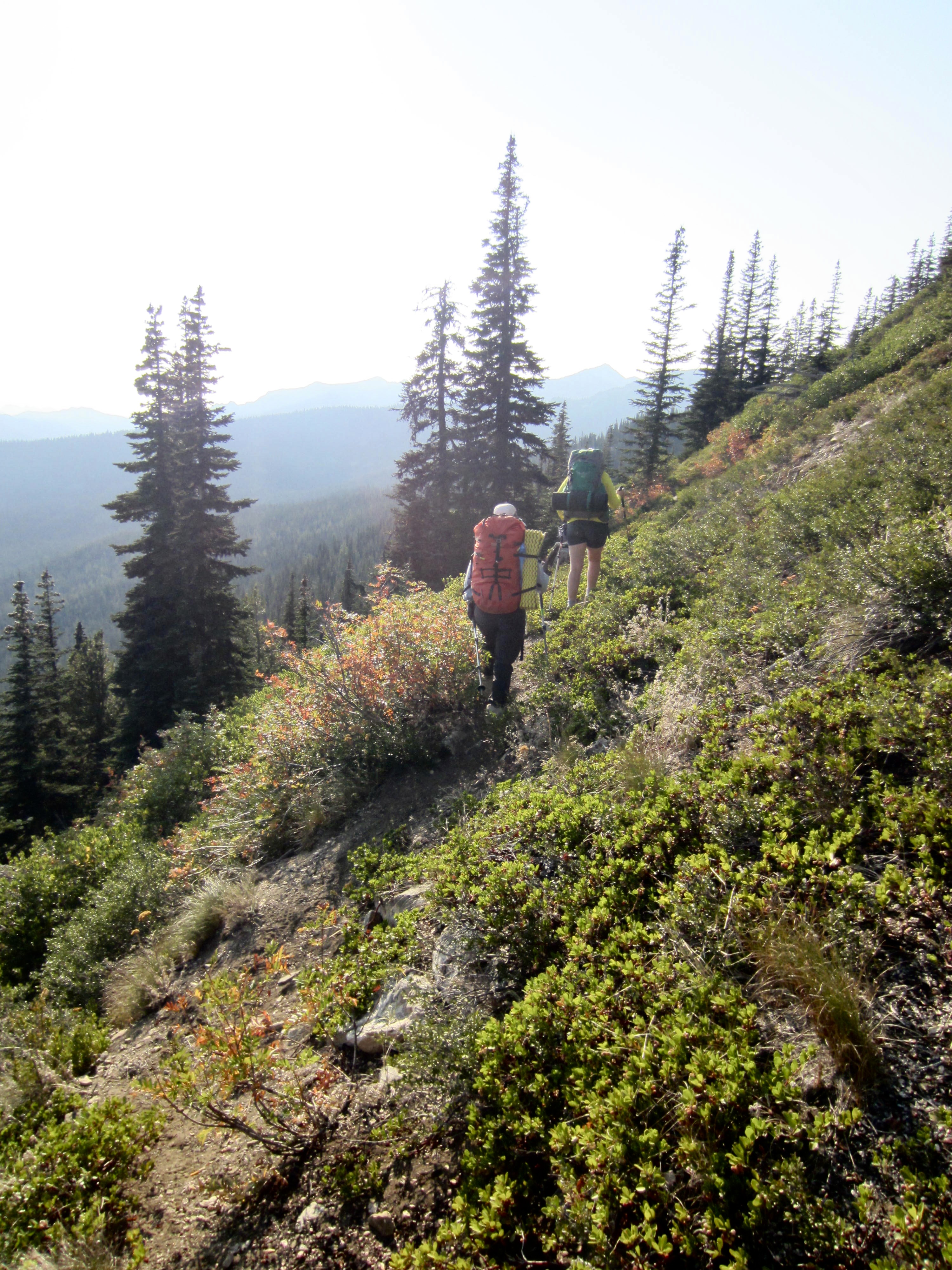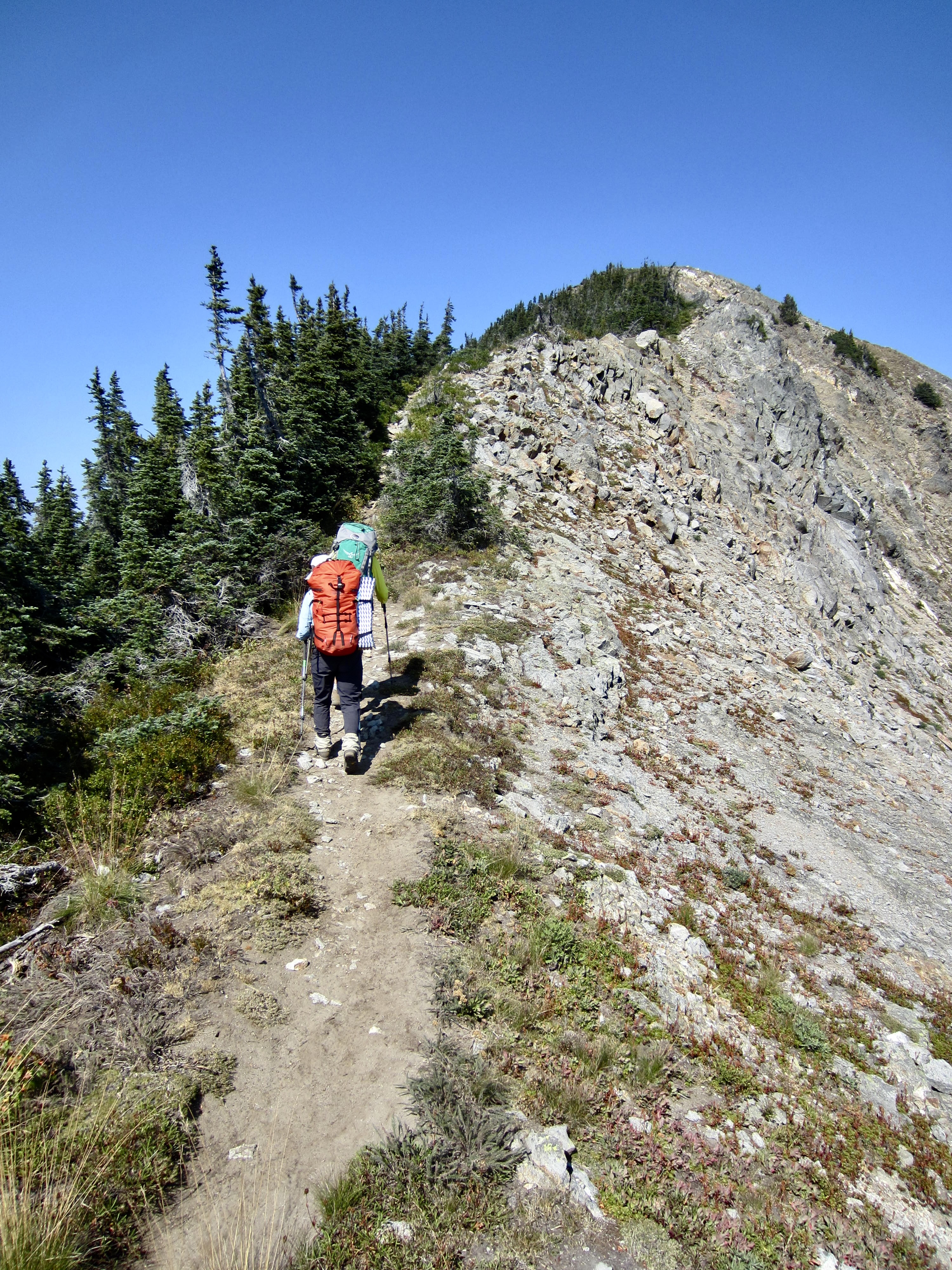 We continued hiking westward on the well-constructed and well-maintained trail, which wanders up and down along the crest. One last short ascent followed by a 900-foot descent delivered to the West Nason Ridge Trailhead at Rainy Pass (12.2 hours + 12.8 miles + 4550 feet from camp), ending an excellent two-day traverse. And no, we didn’t forget to drive down the road to pick up Eileen!
