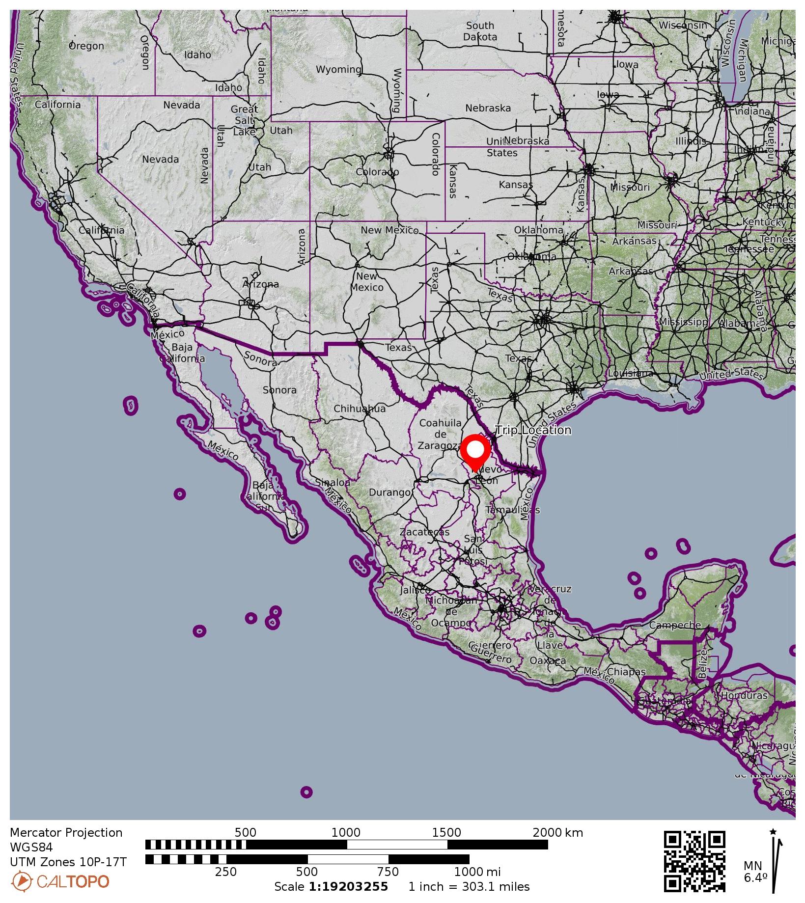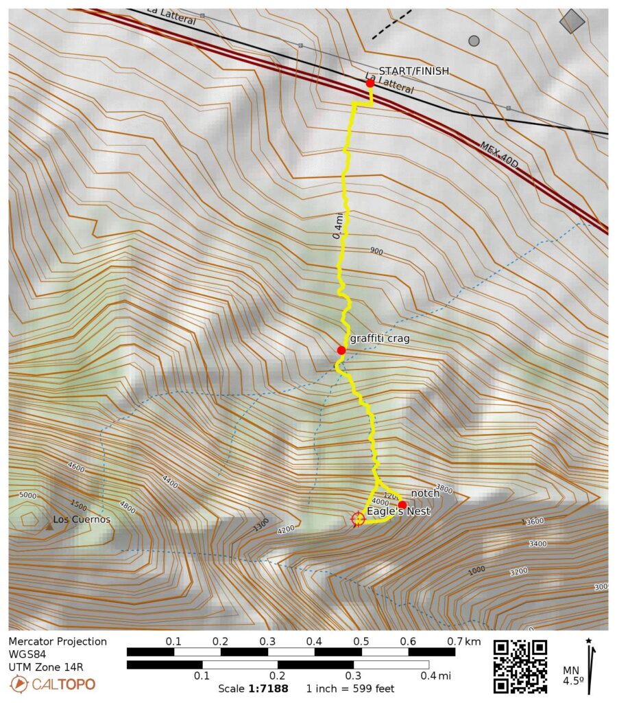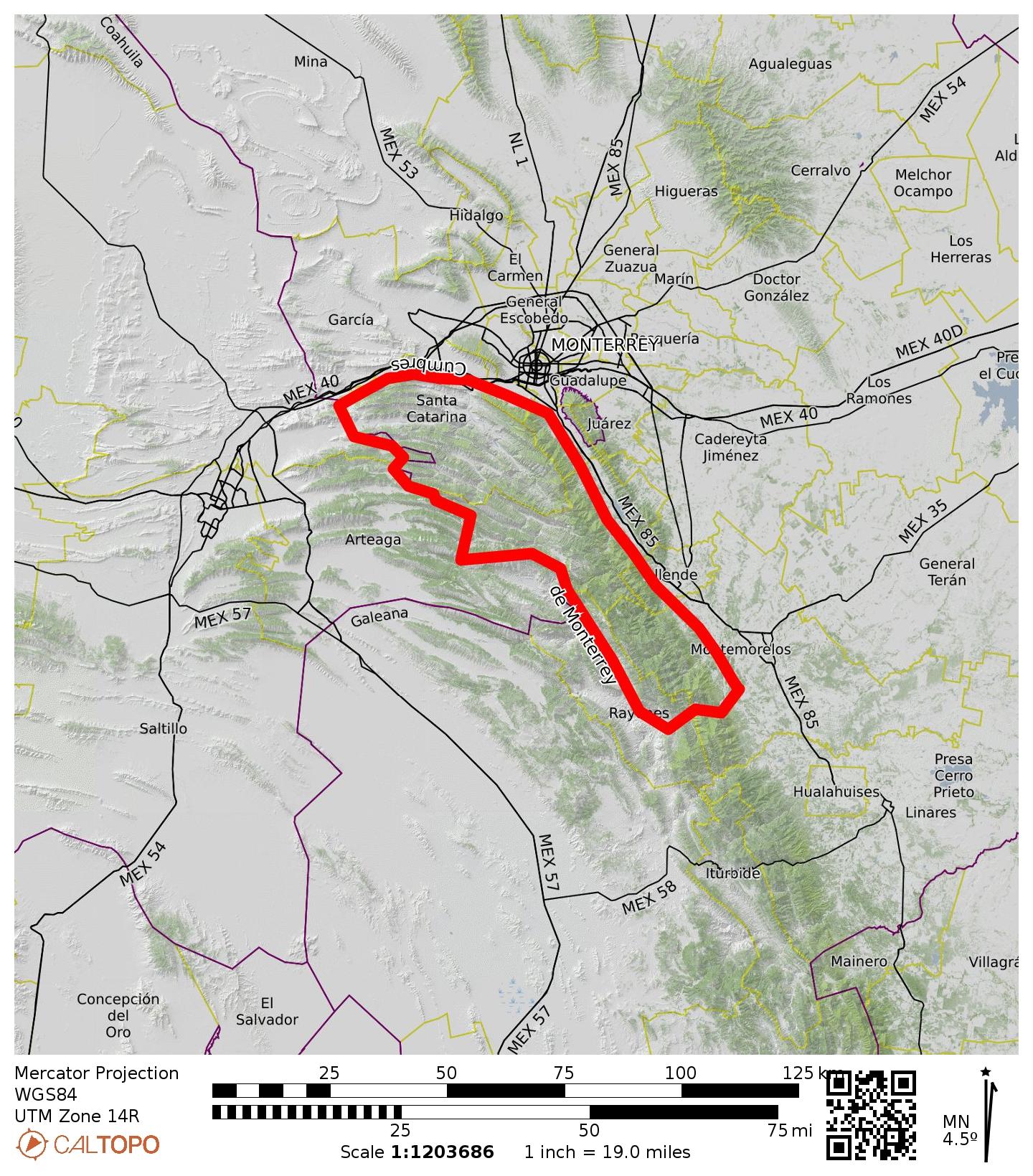 Starting & Ending Point: La Latteral pullout adjacent to Saltillo–Monterrey Tollway 40D underpass (Elev. 2650 feet / 810 meters)