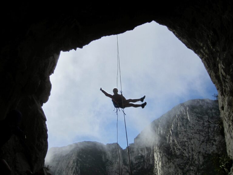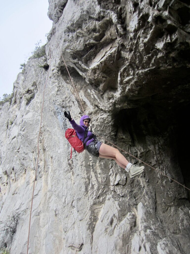 Our group took a long break at the East Ridge Notch while David, our lead guide, went ahead to set up the first rappel. During this time, we could look across the steep limestone face and see a gaping cave. Was that the Eagles’ Nest, I wondered, and if so, how on earth would we get there?