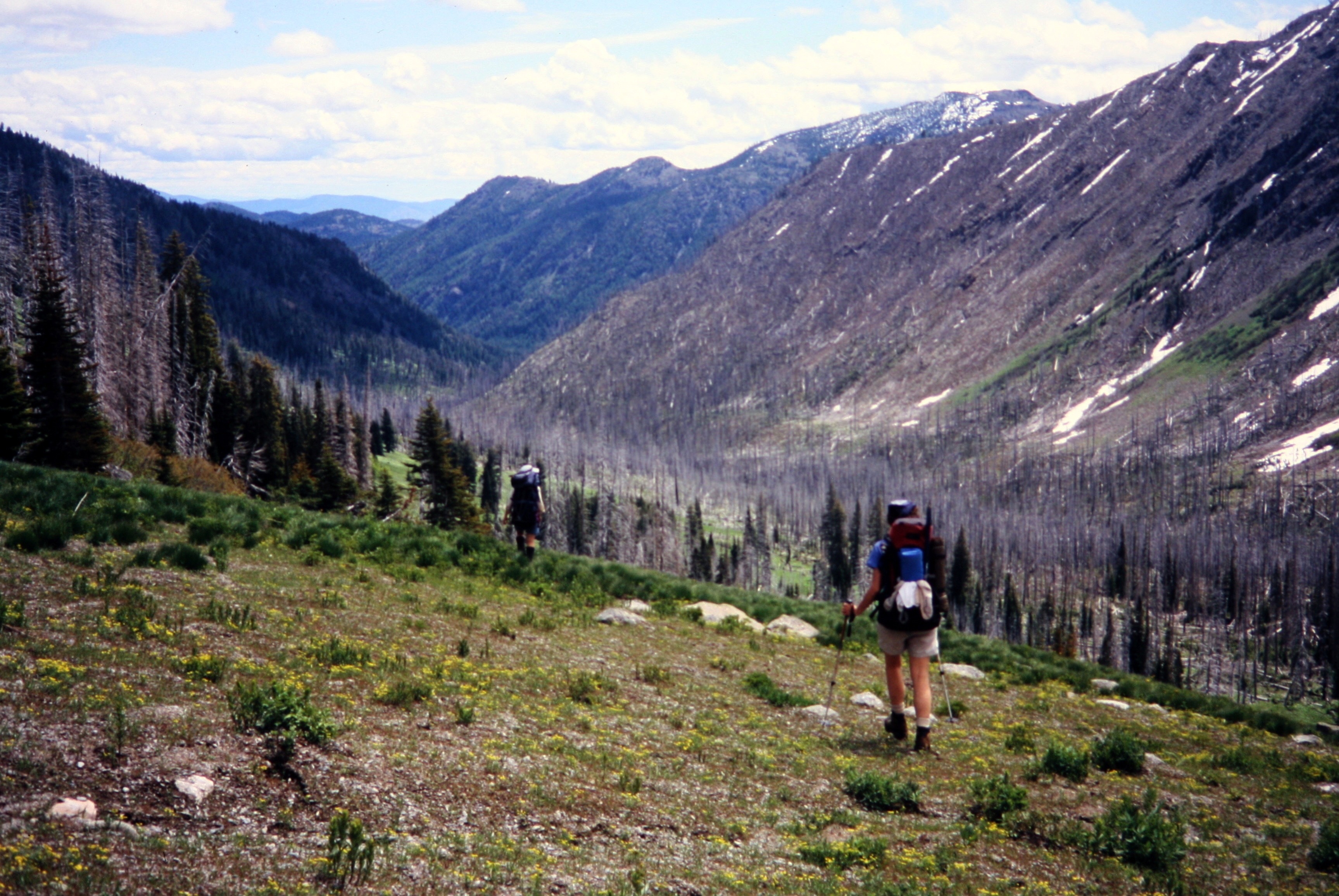 Conditions during our entire 12-mile hike out were nothing less than perfect: warm sun, cool air, springy breeze, no bugs. We were even treated to a most interesting audio presentation while passing through Gardner Meadows, where the wind blowing through the myriad silver snags sounded like the unearthly screams of 10,000 demons!